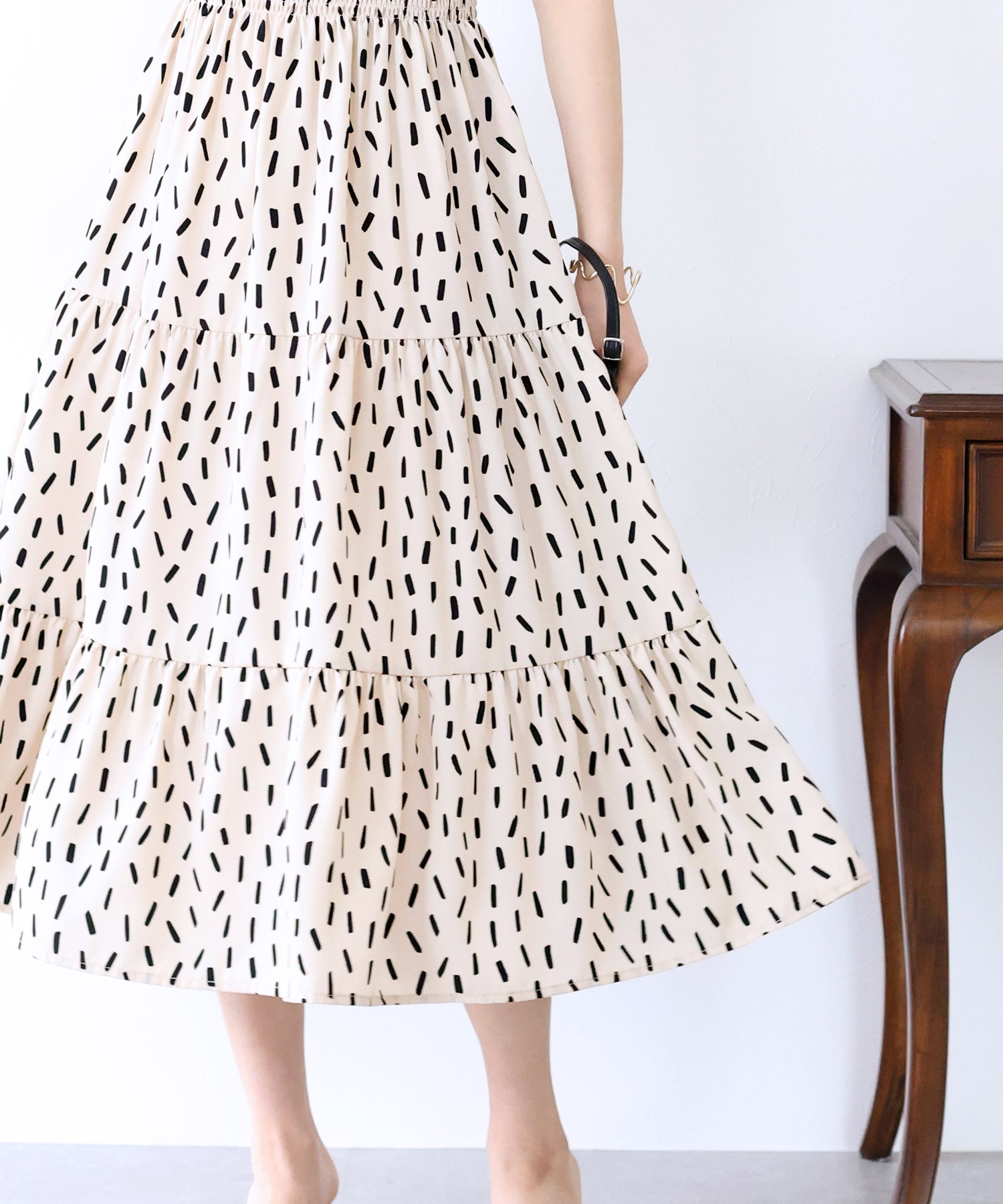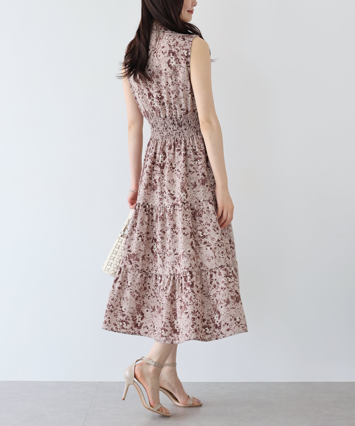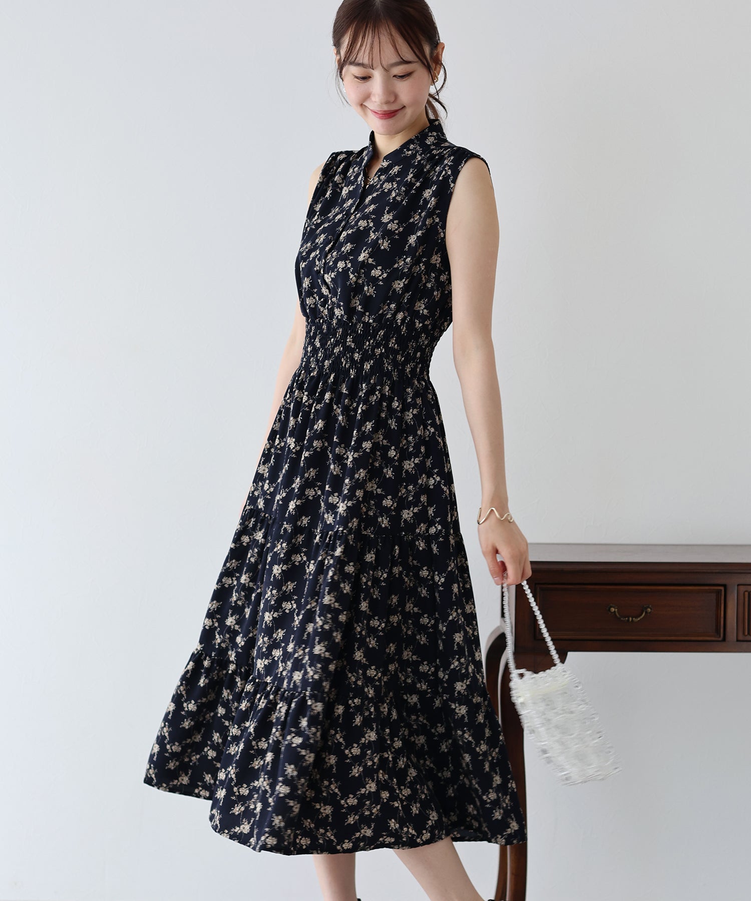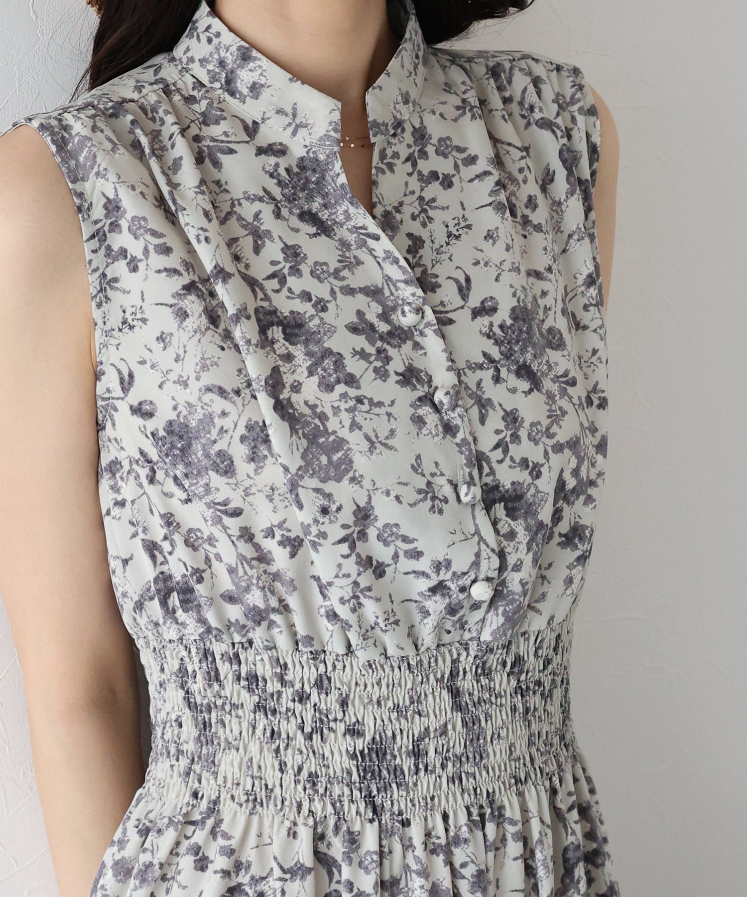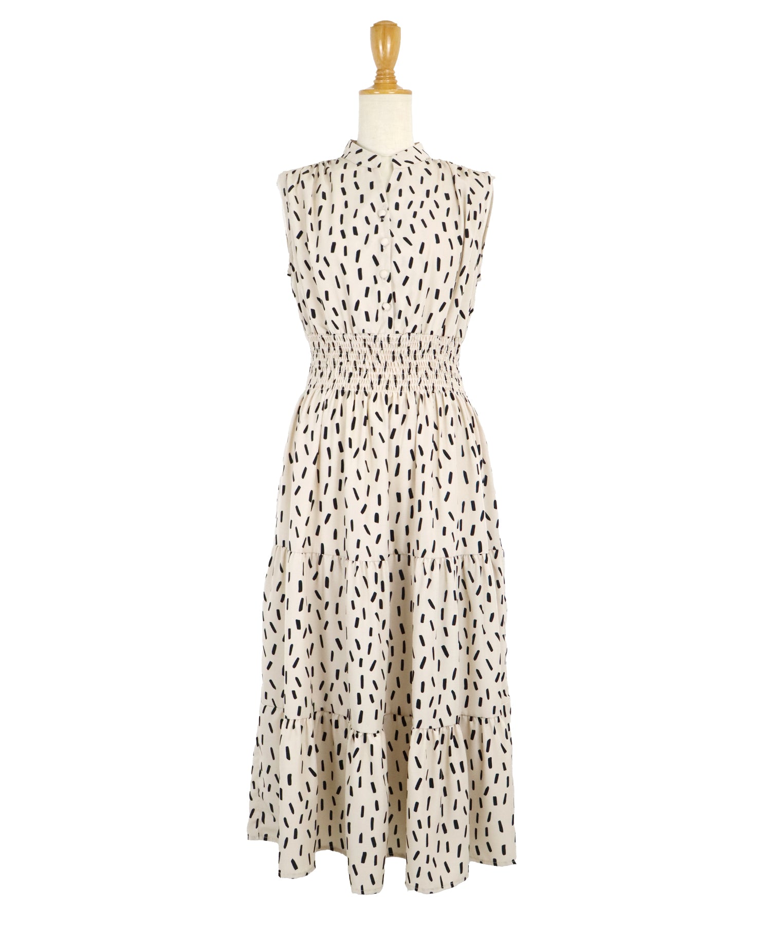 ?POINT 洗練された雰囲気が漂う、大人のデイリー総柄ワンピース。 ネックはスキッパーデザインで顔周りをすっきりと見せてくれます。 足首までのロング丈で、一枚着ればおでかけできるお手軽さも嬉しいアイテムです。