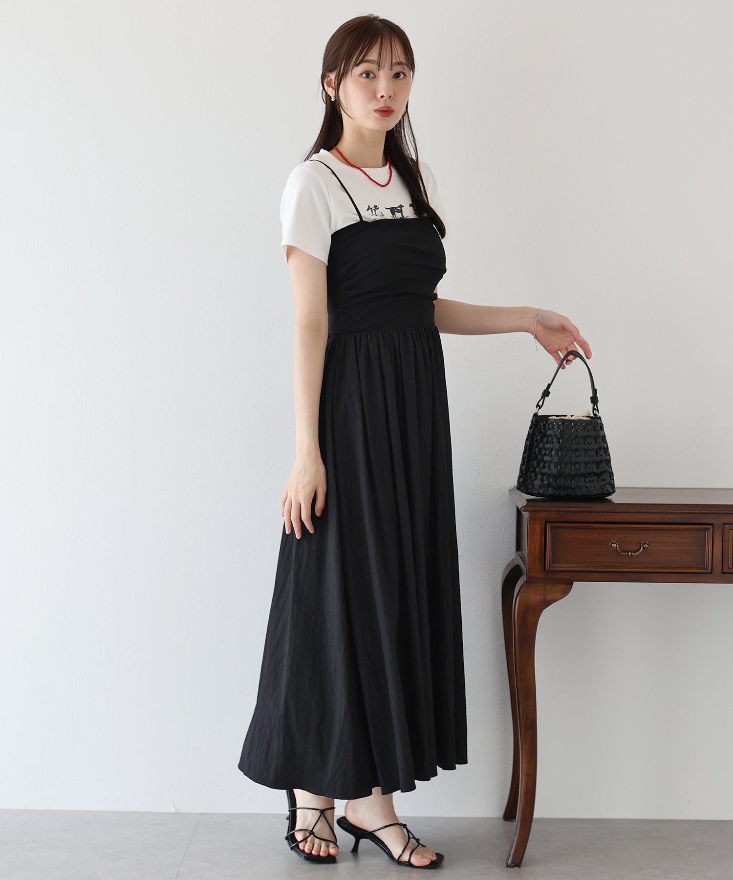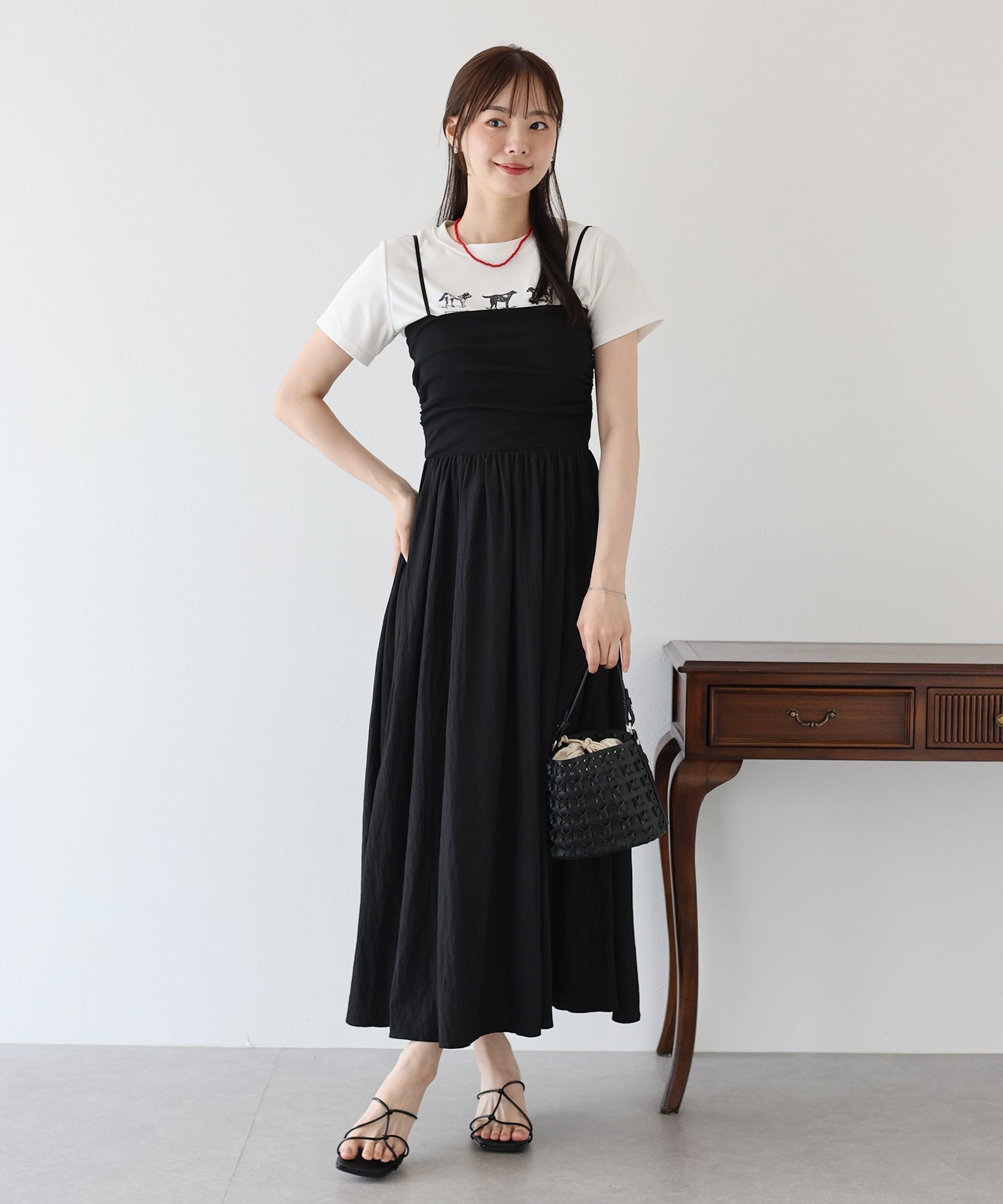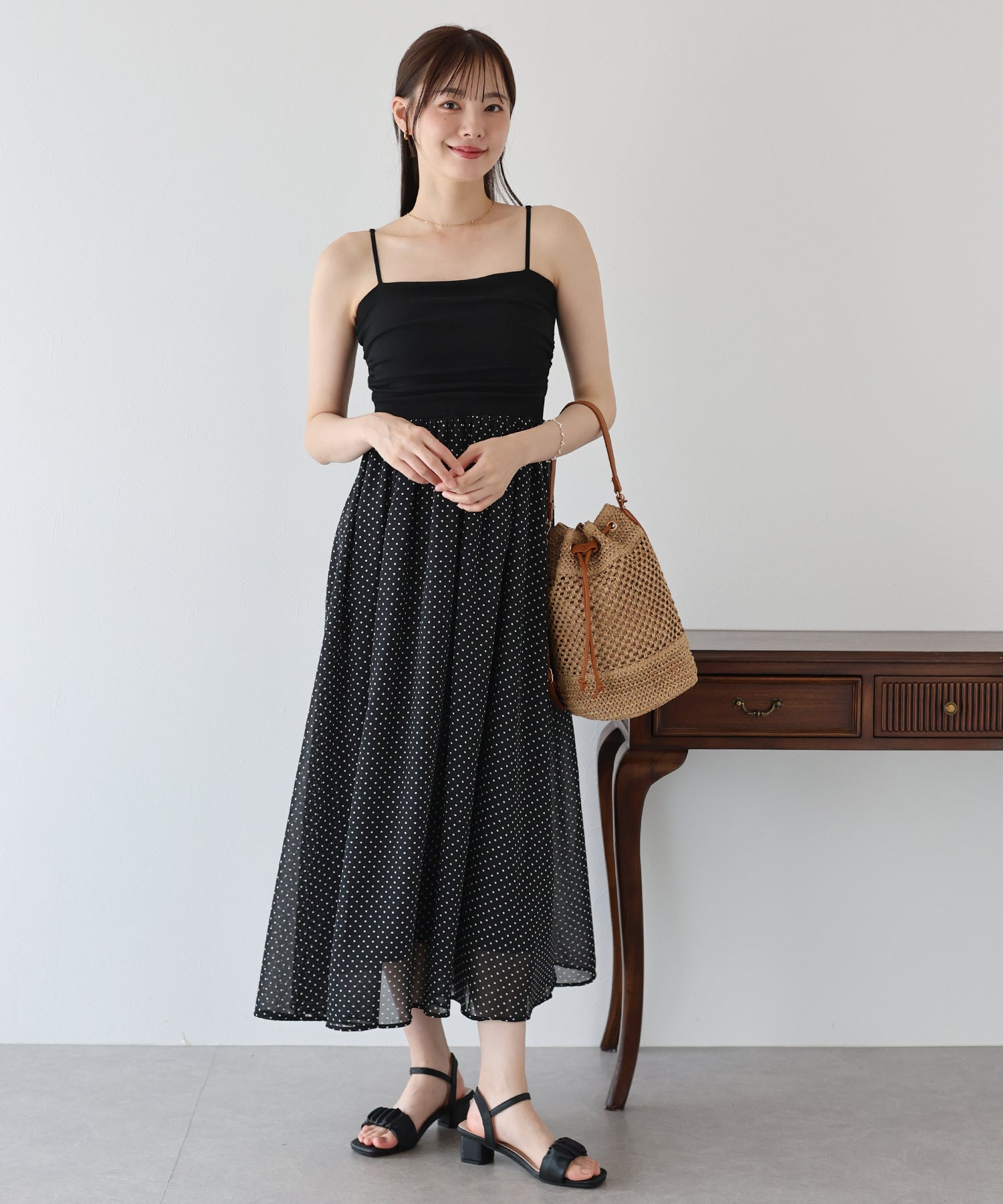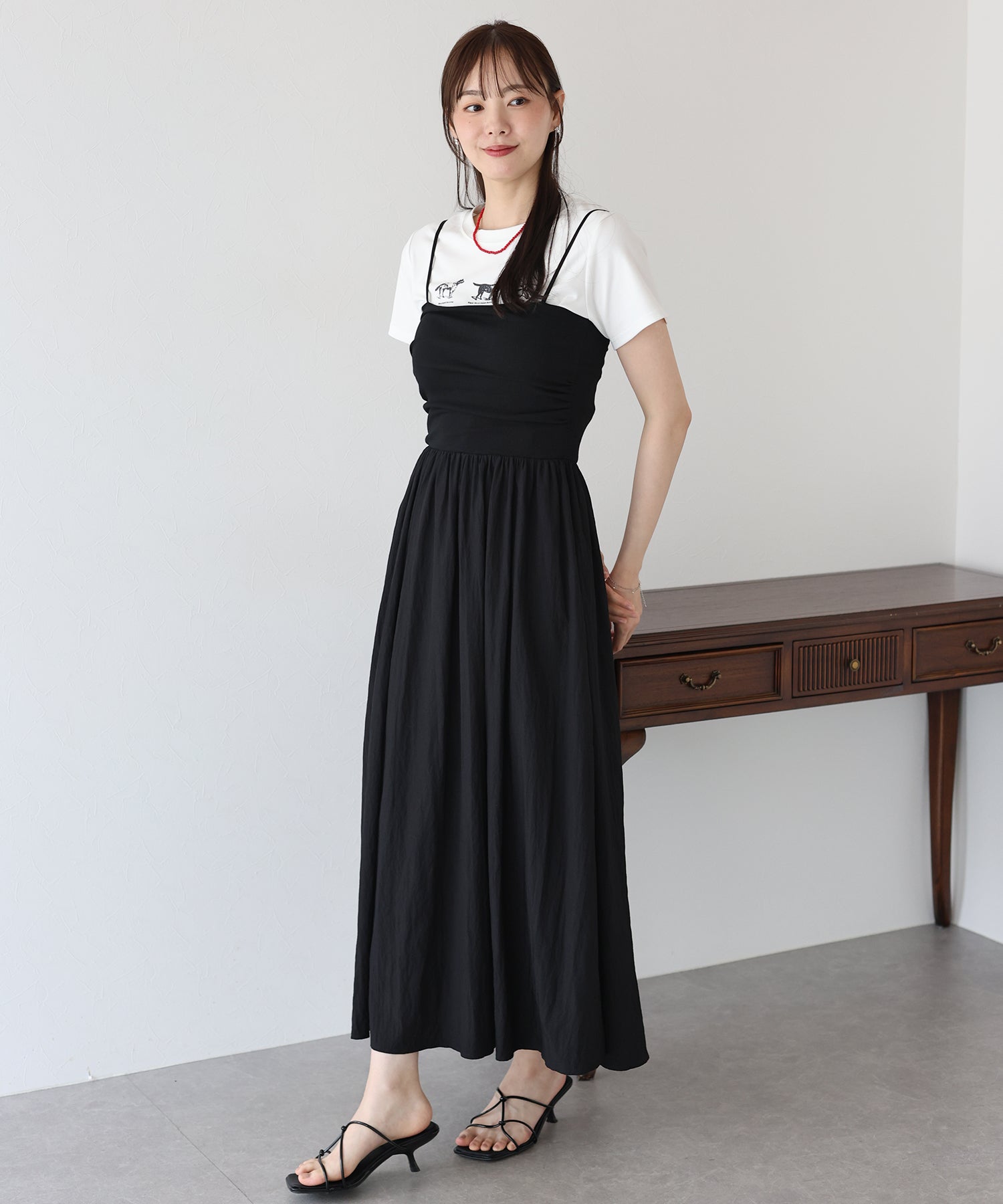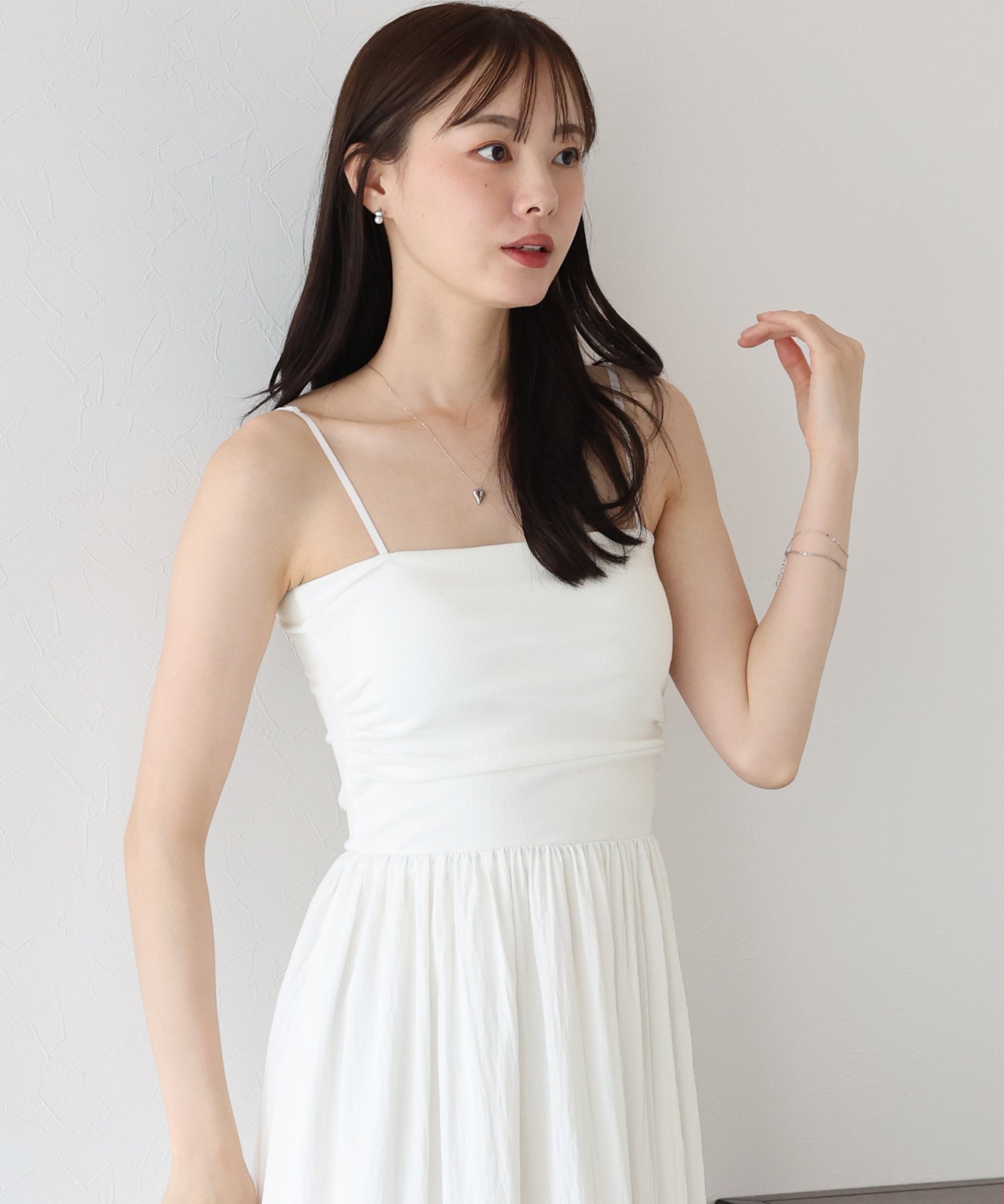 取り入れるだけでこなれ感を演出できるキャミワンピース ?POINT 女性らしいディテールが魅力のカップ付きキャミワンピース。 前身頃のドレープデザインが立体感を生み、上品&華やかな印象に。 身頃には伸縮性の高い素材を使用し、ストレスフリーな着心地を叶えます。 カップが一体型の仕様で安心感のある着用が可能。 身体にフィットしズレにくく、一枚でさらっと着こなせるのも嬉しいポイント。