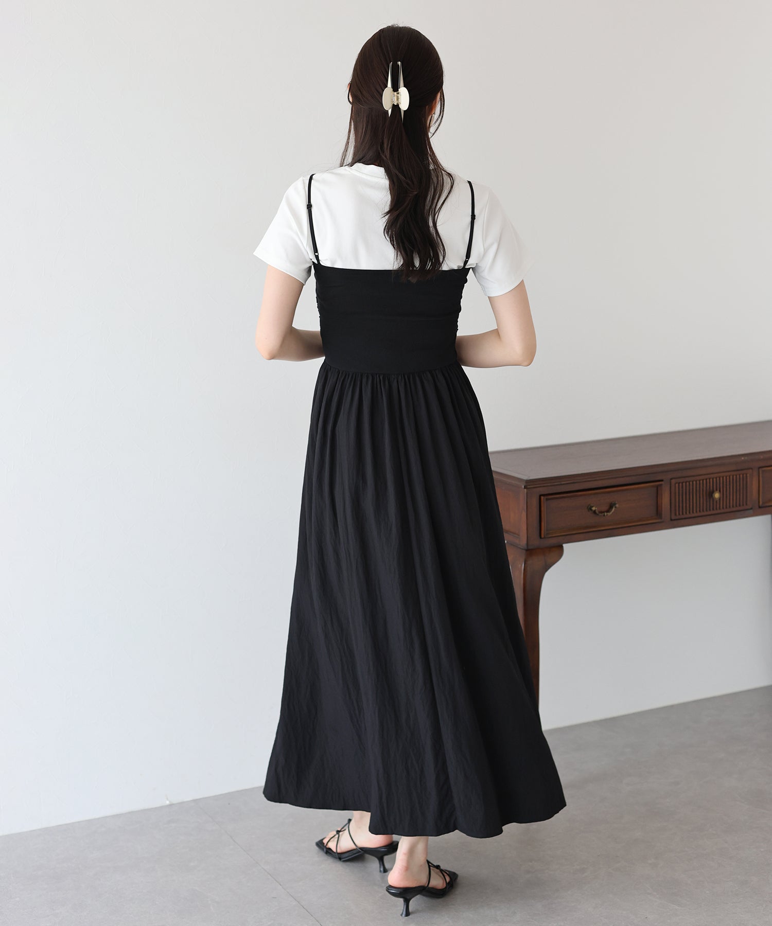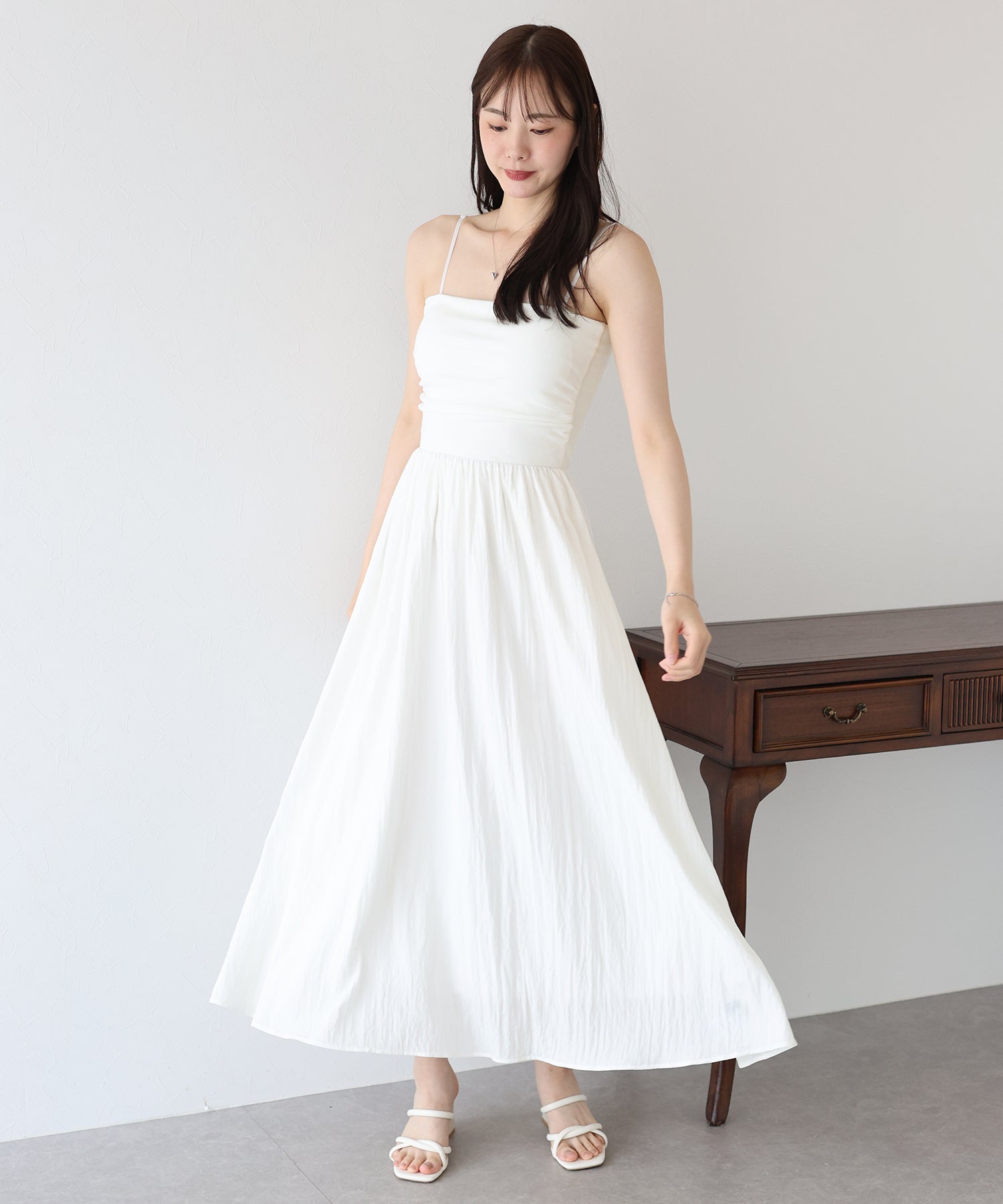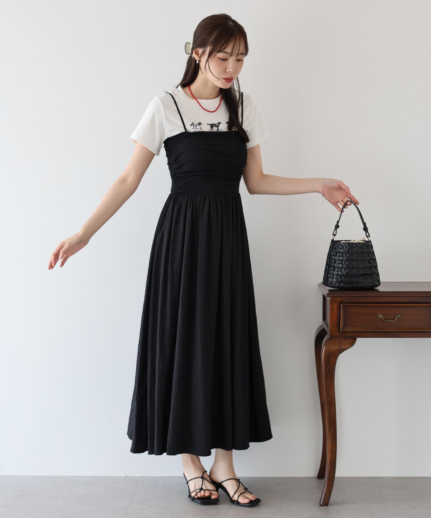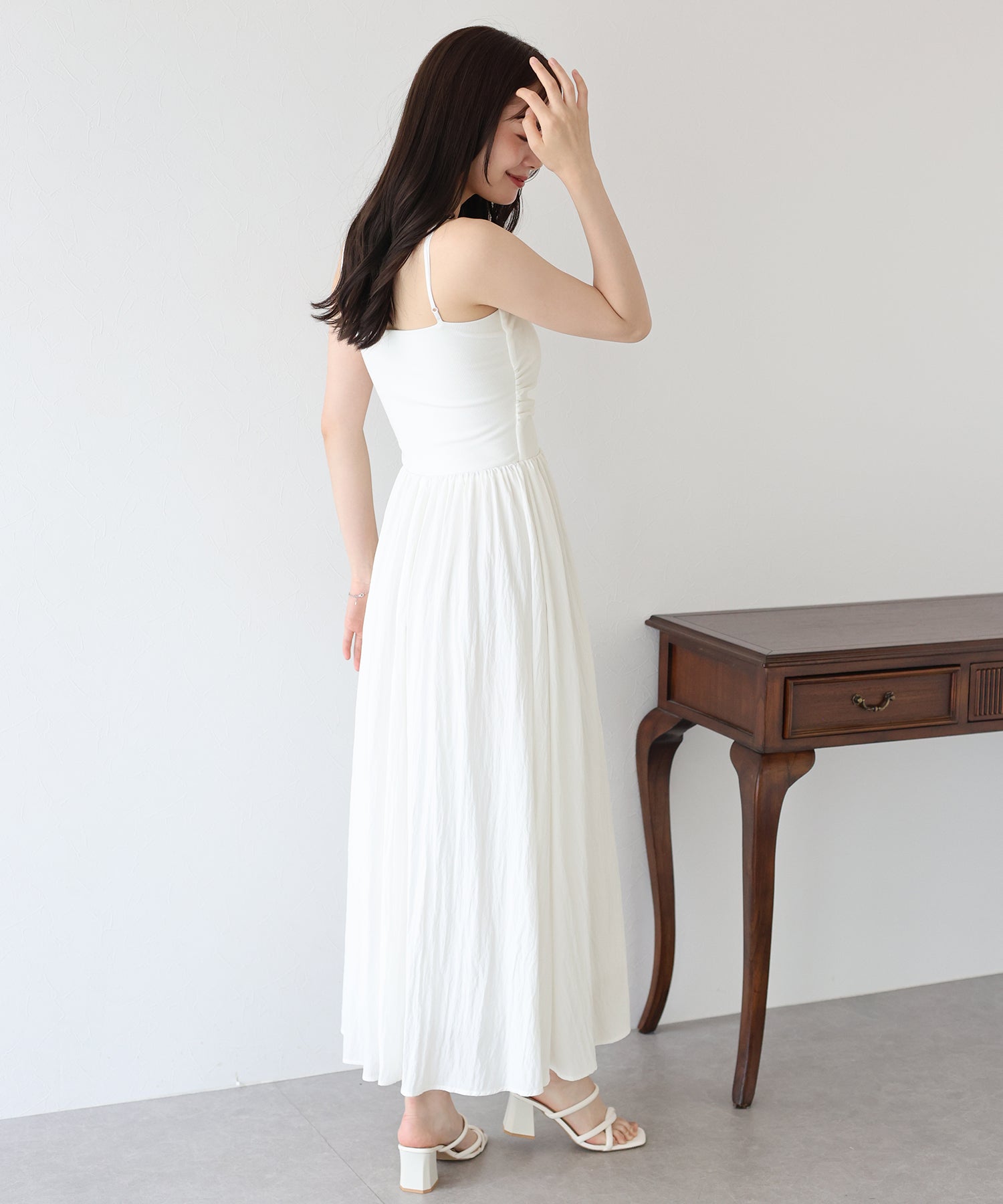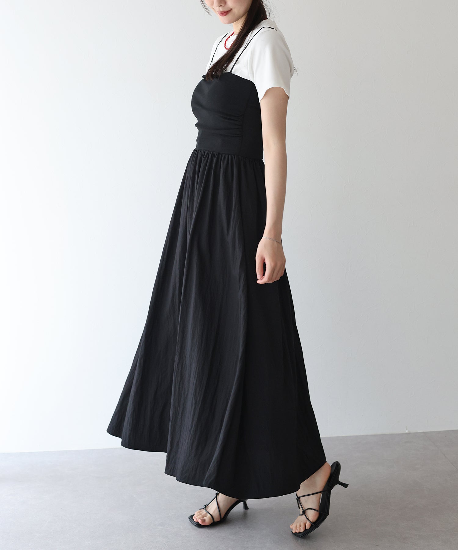 取り入れるだけでこなれ感を演出できるキャミワンピース ?POINT 女性らしいディテールが魅力のカップ付きキャミワンピース。 前身頃のドレープデザインが立体感を生み、上品&華やかな印象に。 身頃には伸縮性の高い素材を使用し、ストレスフリーな着心地を叶えます。 カップが一体型の仕様で安心感のある着用が可能。 身体にフィットしズレにくく、一枚でさらっと着こなせるのも嬉しいポイント。