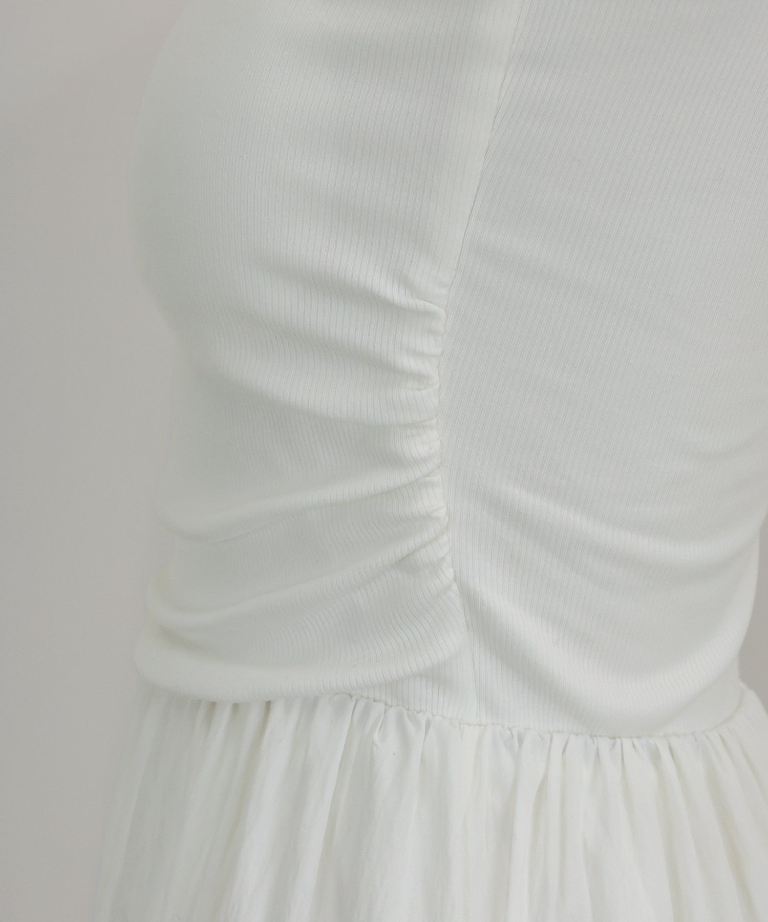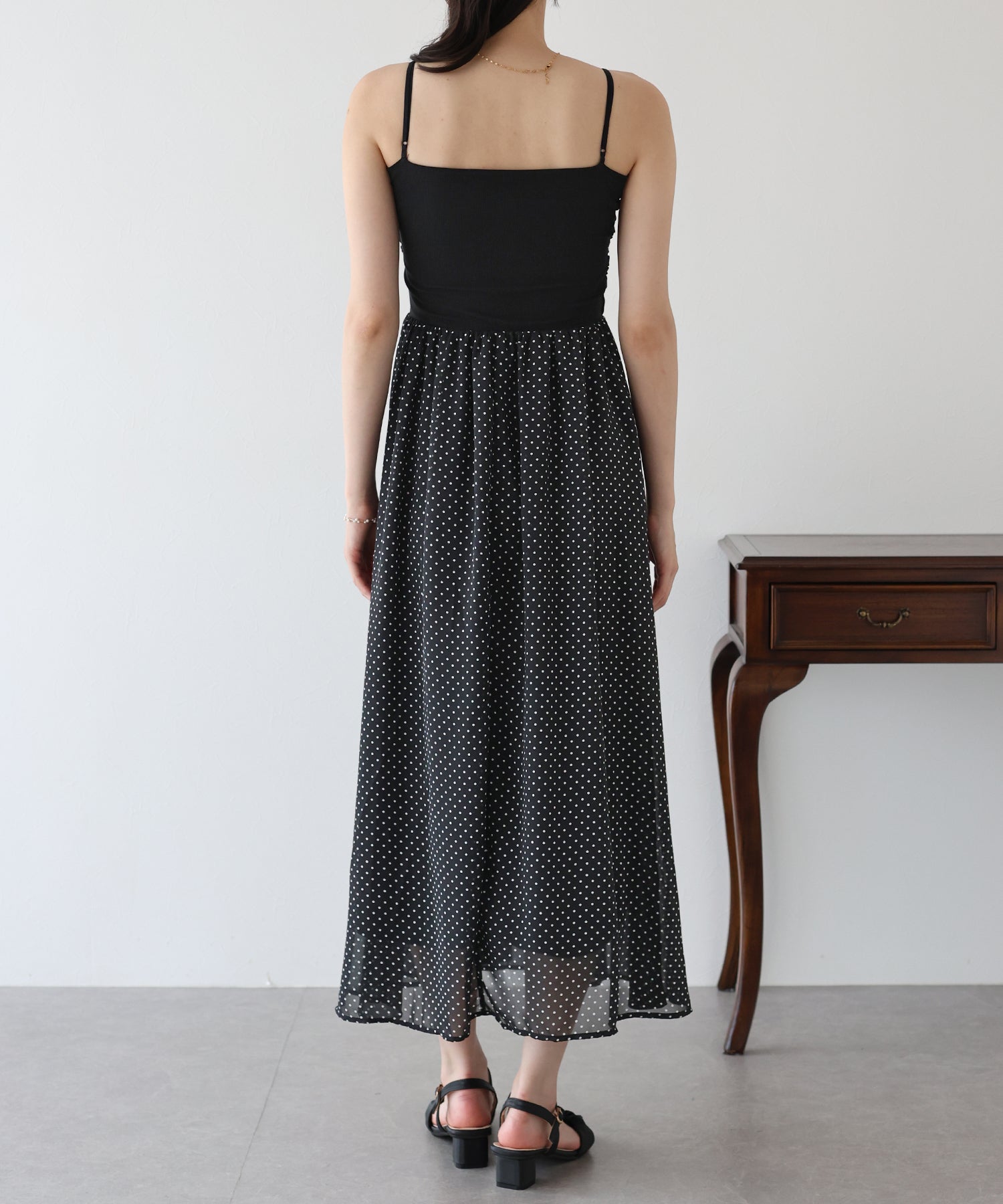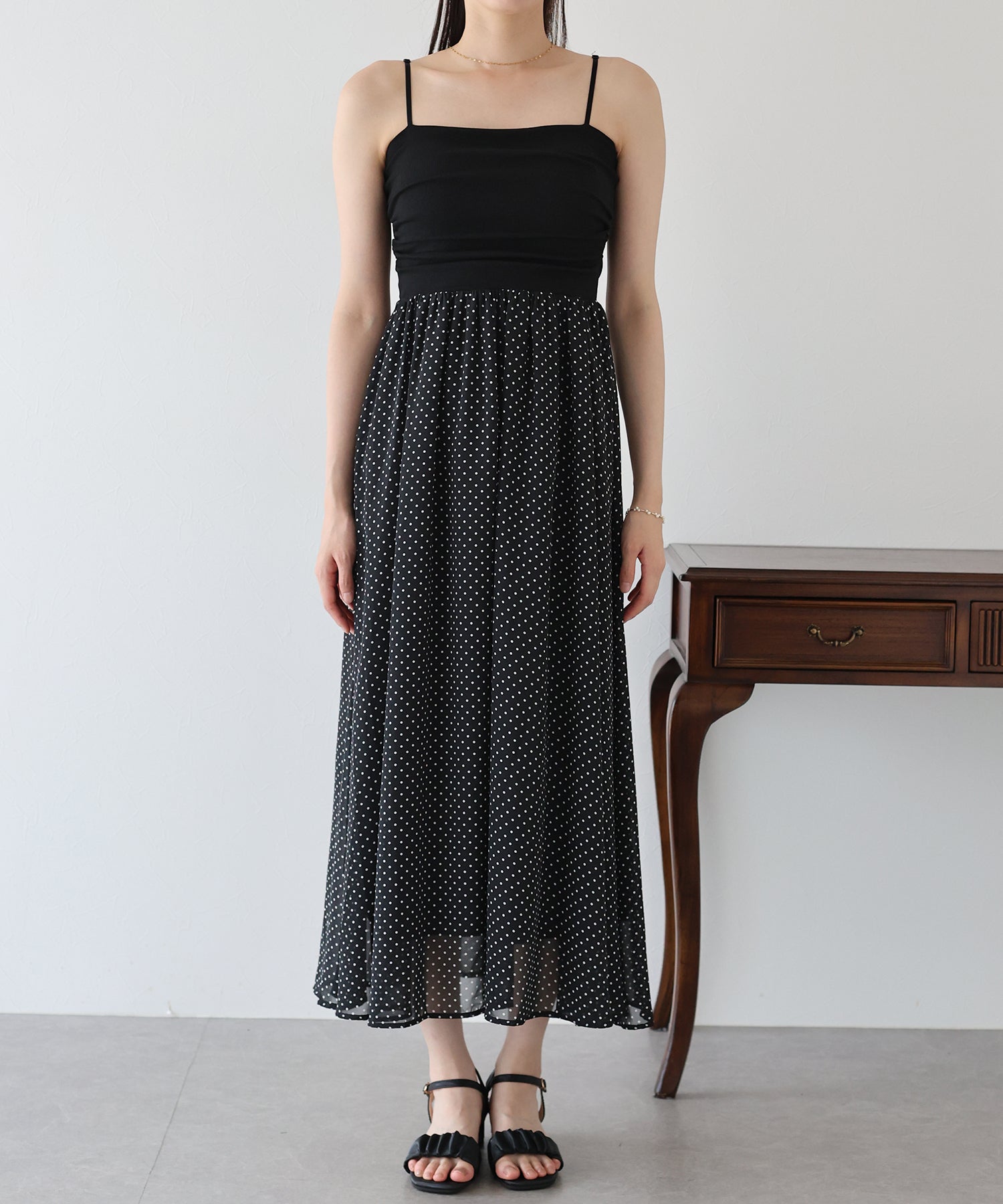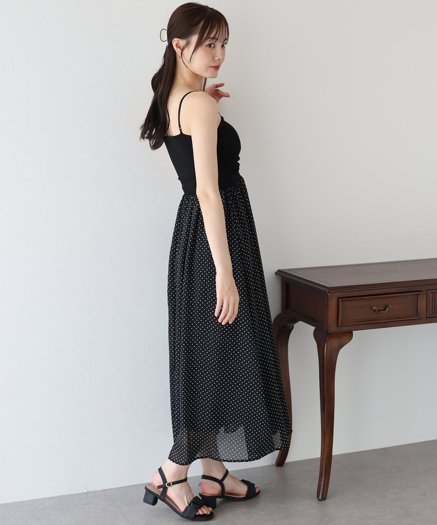 | 生地 | 身頃:伸縮性の高いカットソー生地 スカート: 【ホワイト?ブラック】ナチュラルなしわ感のある無地レーヨン混素材 【ブラック系】足元に透け感のあるドット柄生地 |