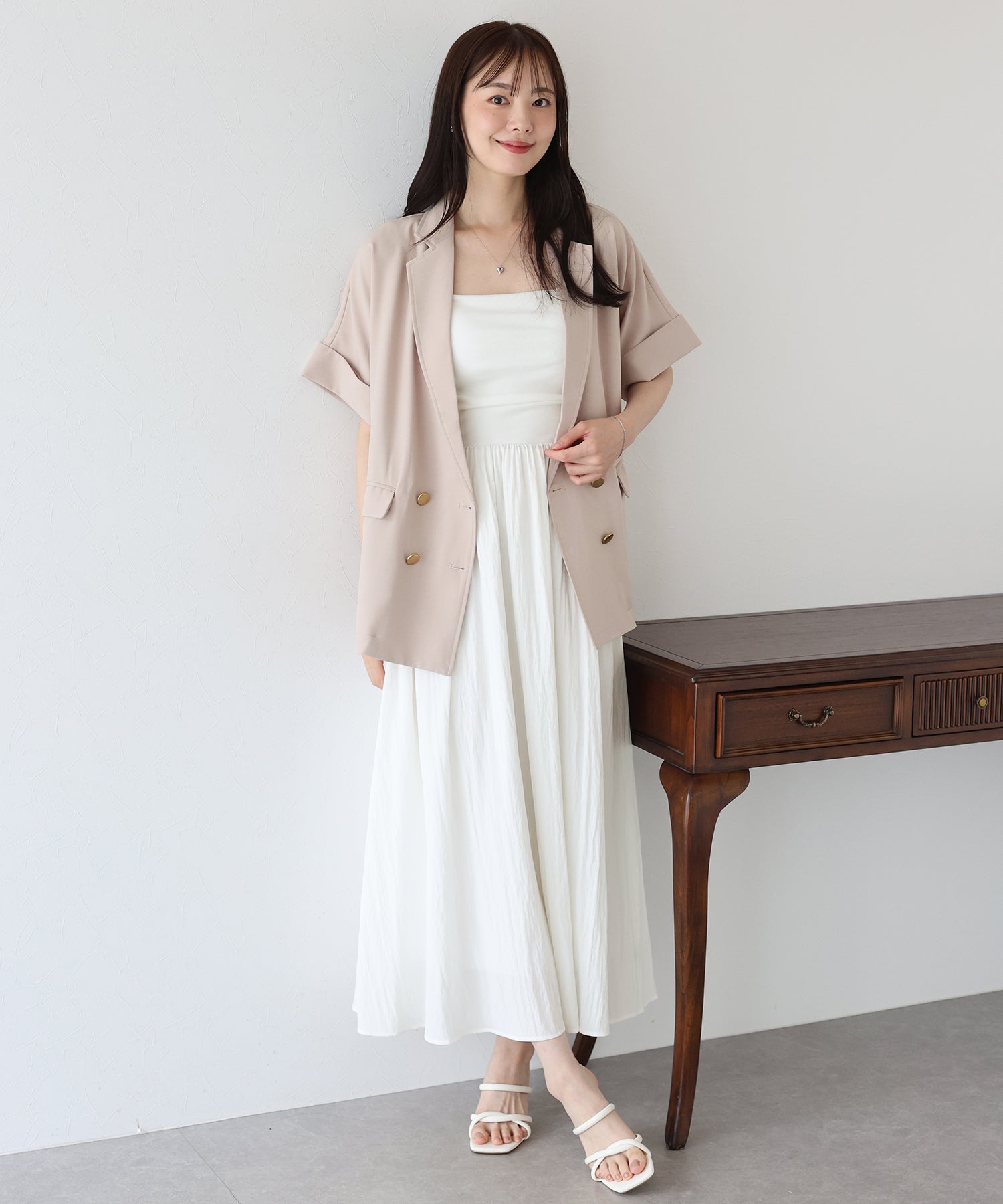?STYLING カップ付きなので、一枚で安心して着用でき、夏らしいシーズンライクなスタイルに仕上がります。 シャツを羽織って涼し気でさわやかなスタイルに、 ジャケット合わせできちんと感のある上品なコーデに仕上げるのもおすすめです。 Tシャツなどをインナーにしたレイヤードコーデにも◎ これ一枚で、スタイリングを格上げできるおすすめのアイテムです。