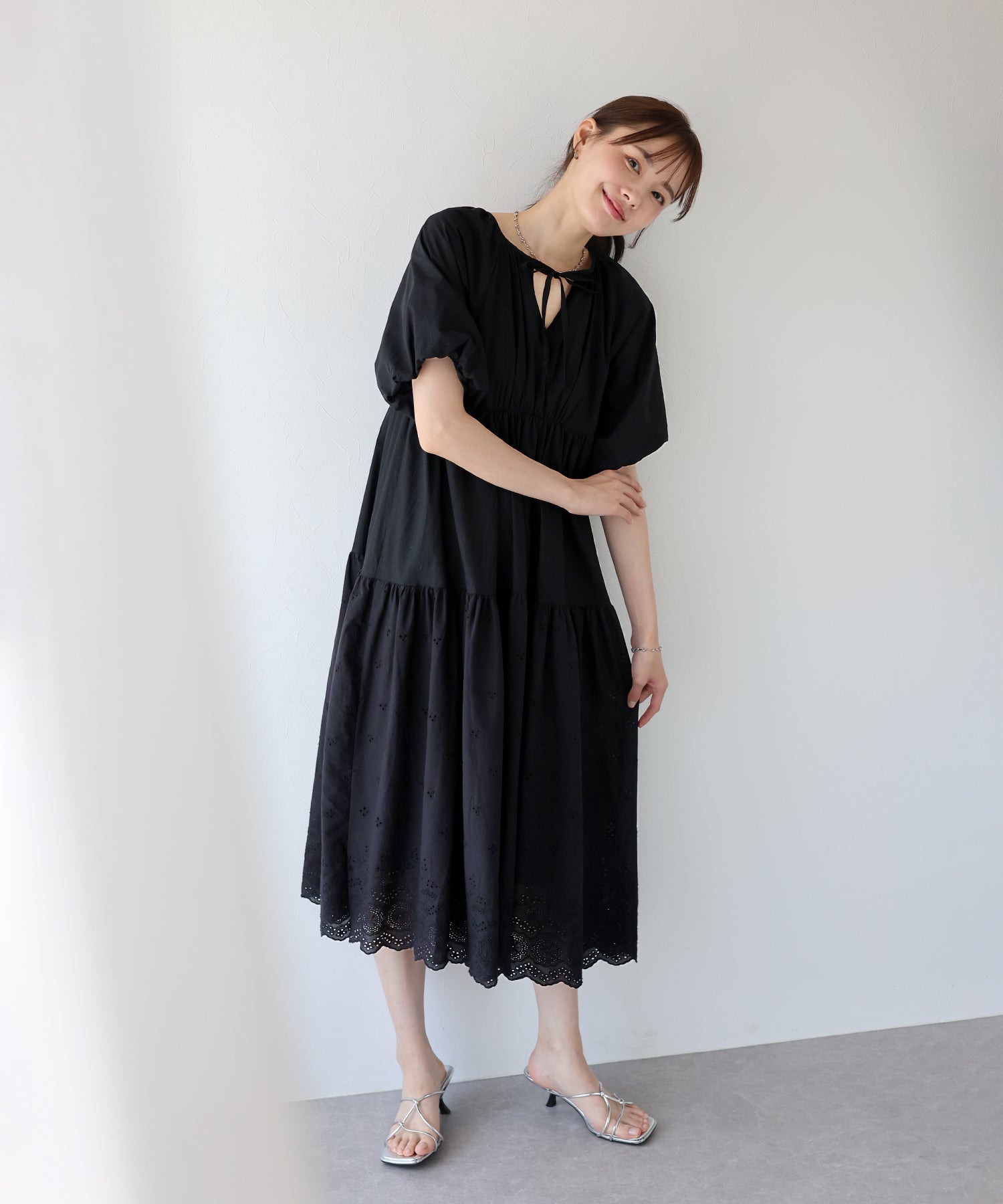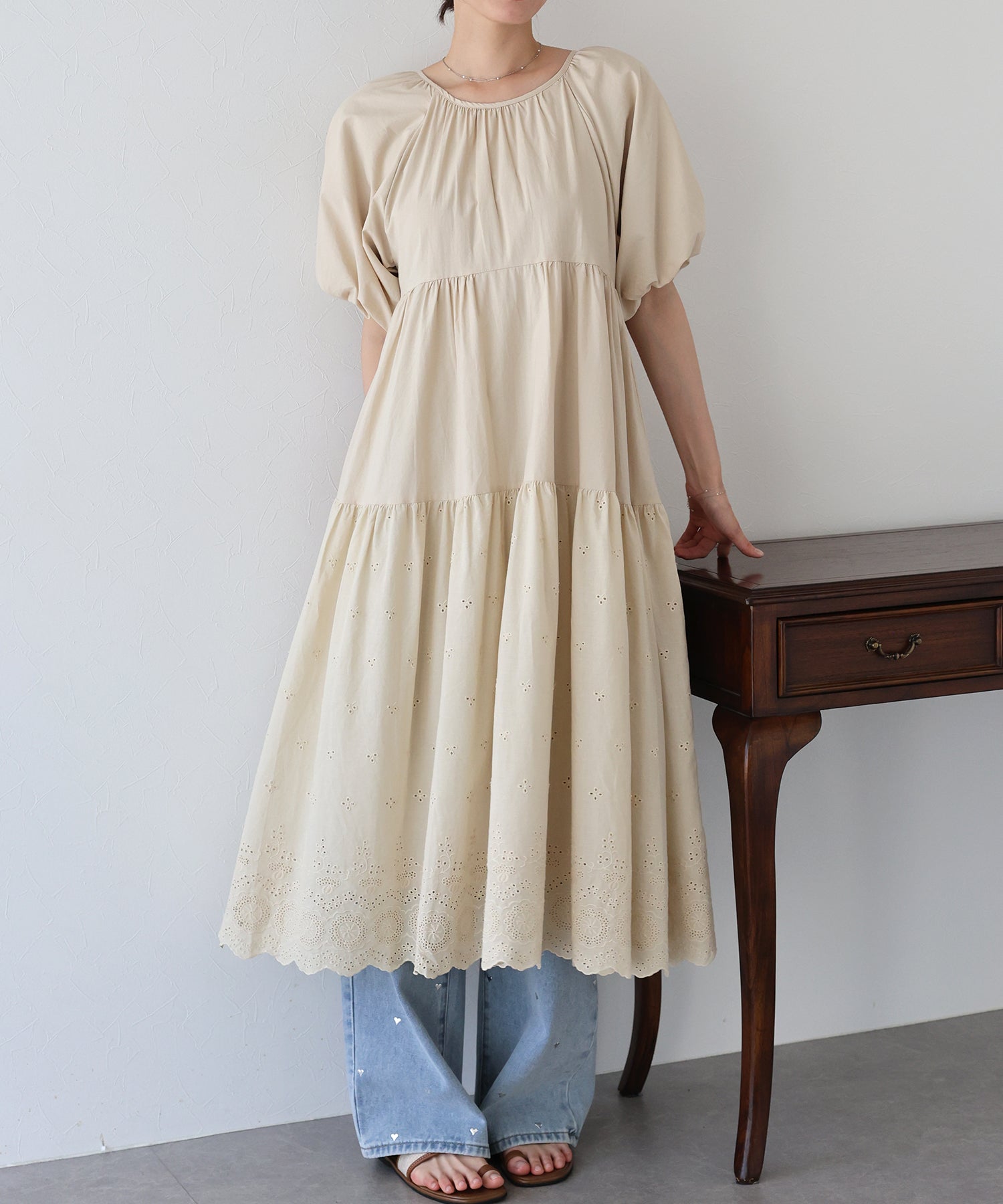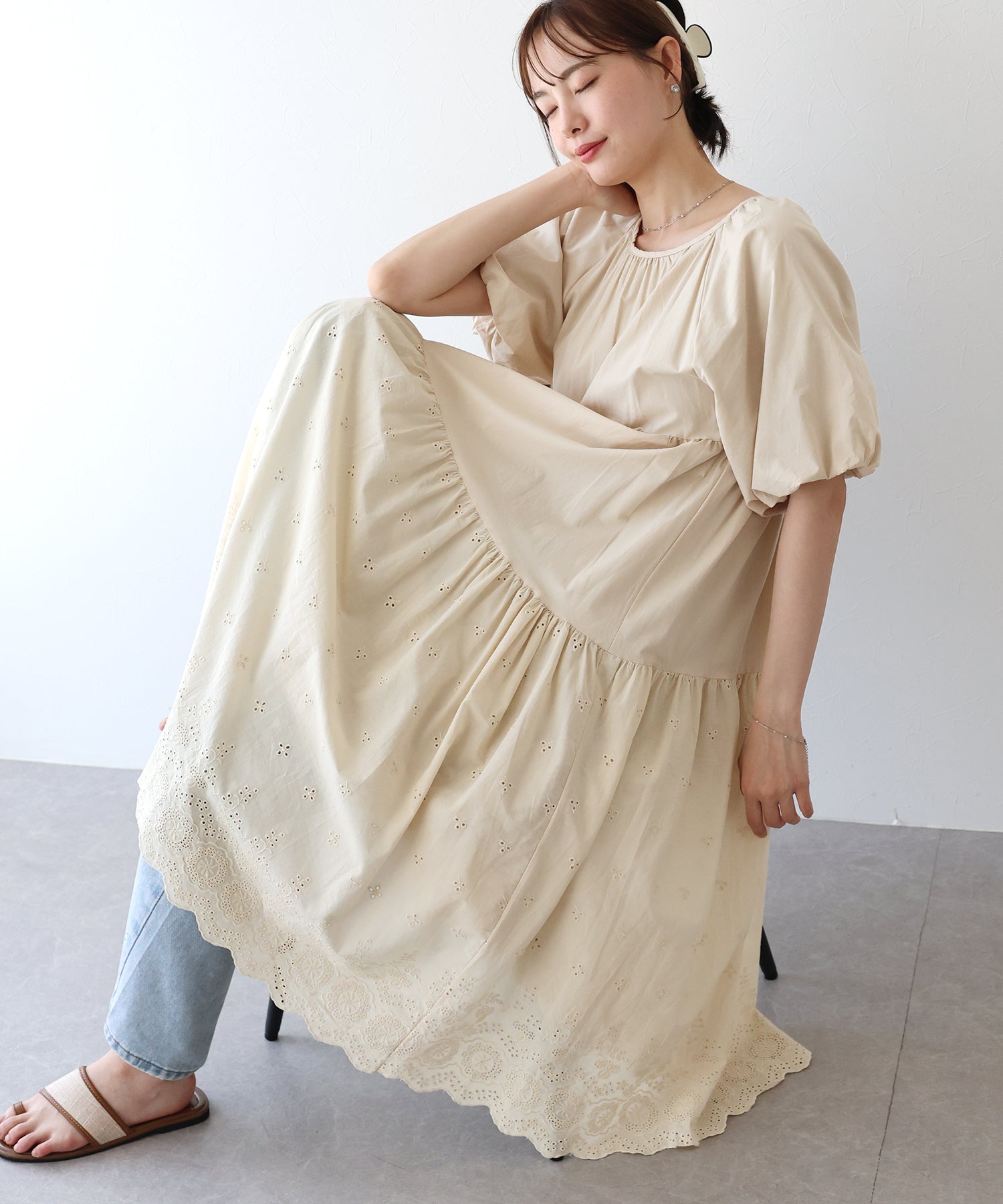 - 【TIME SALE】バルーン袖コットンレースワンピース