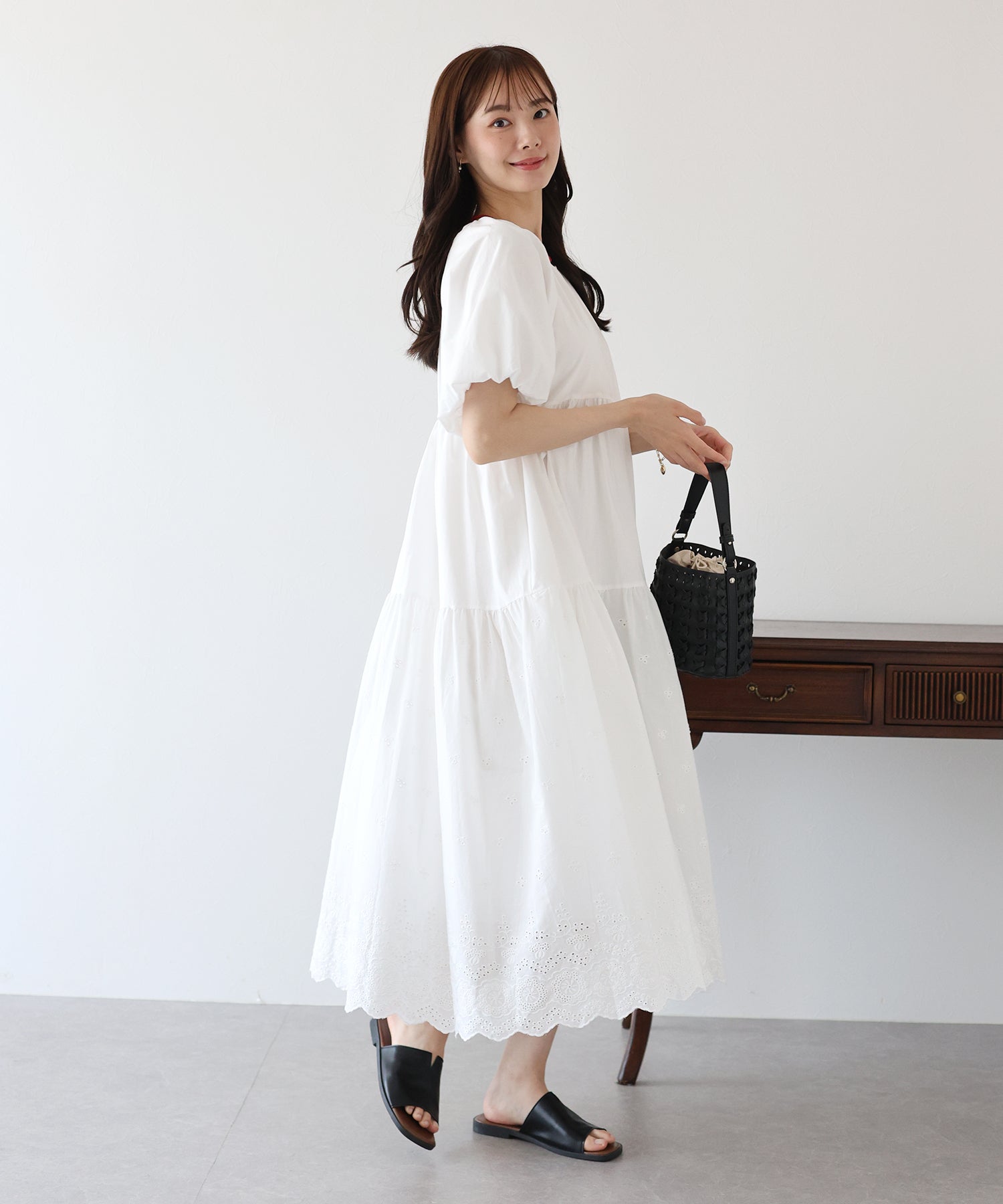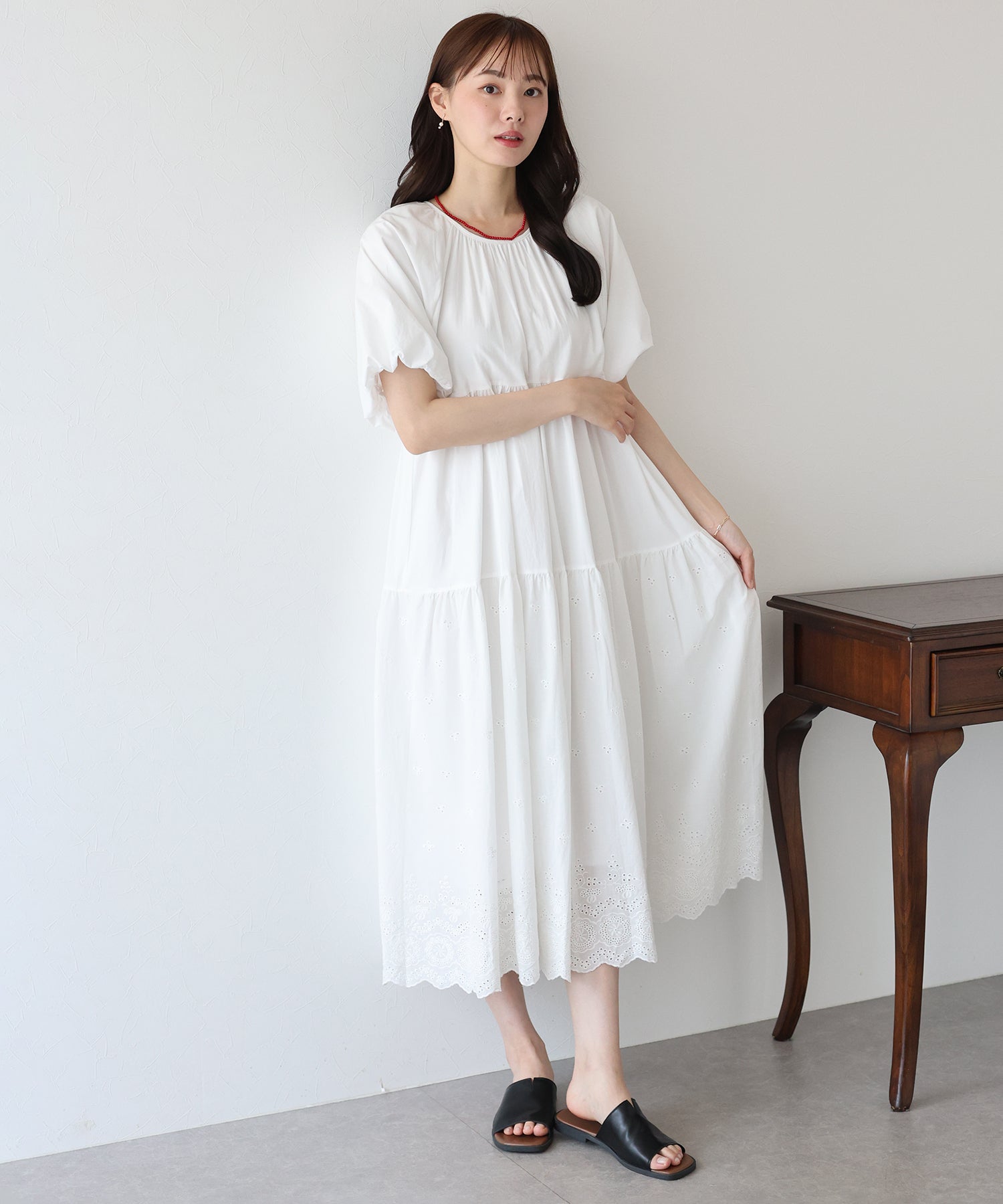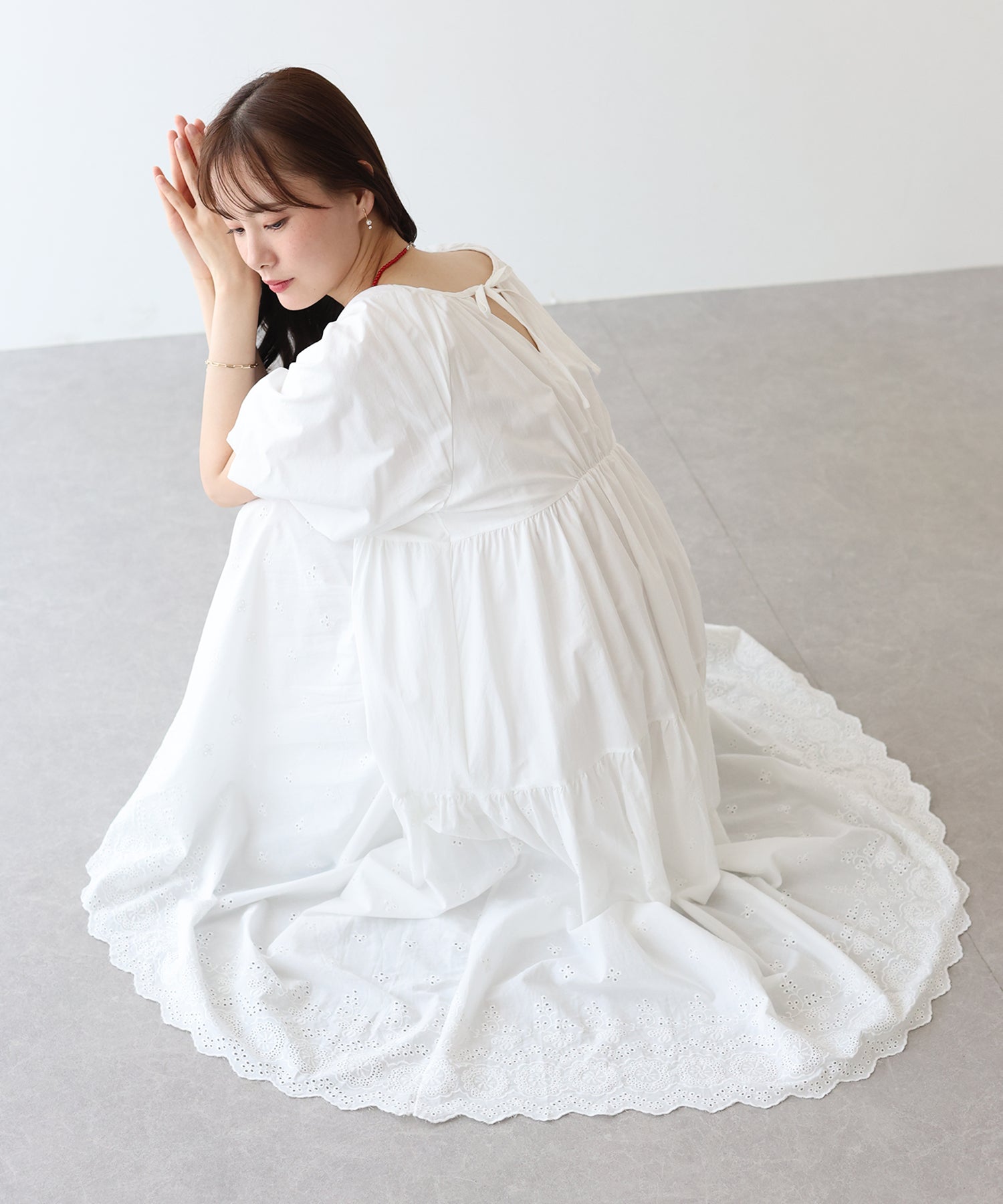 - 【TIME SALE】バルーン袖コットンレースワンピース