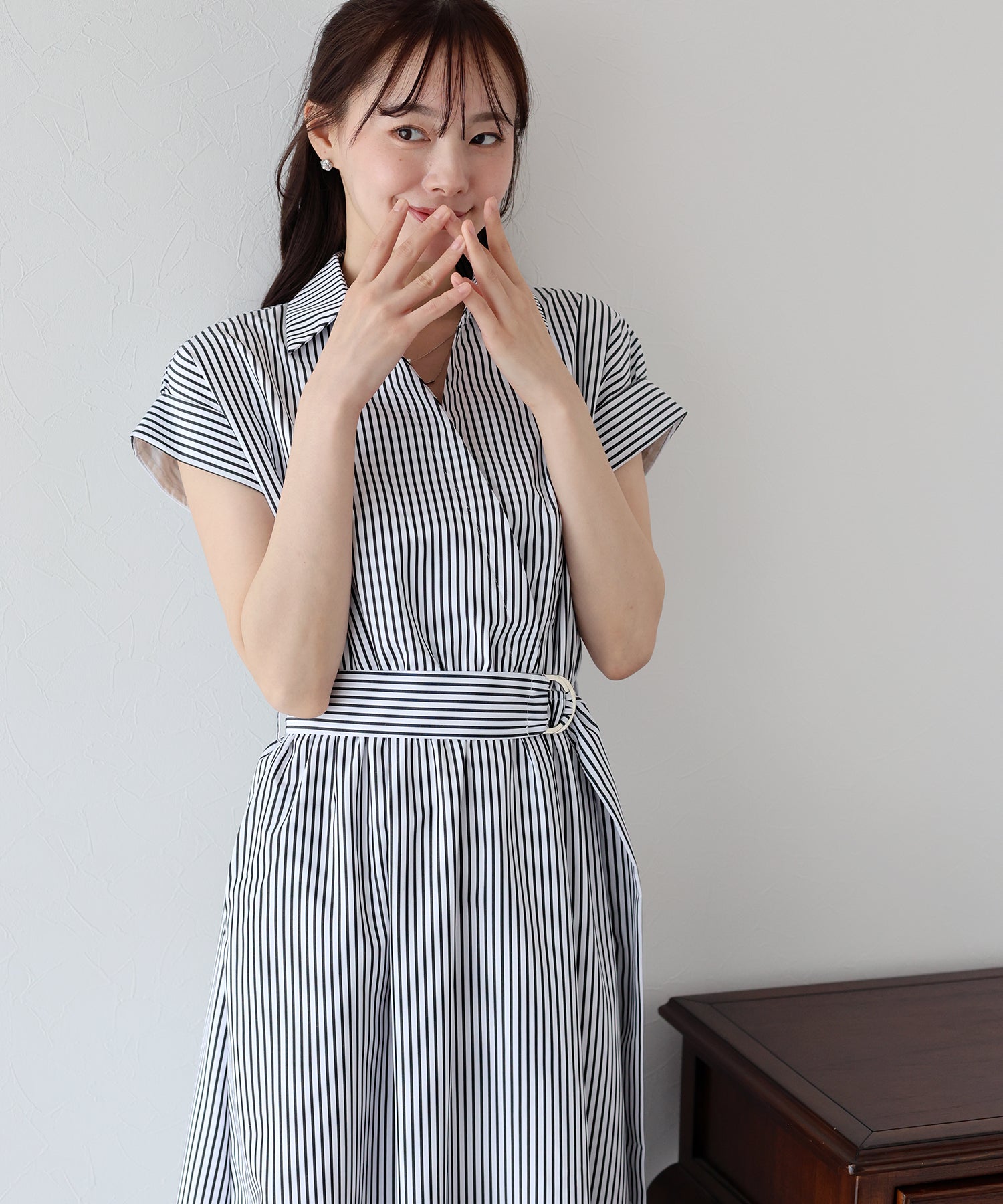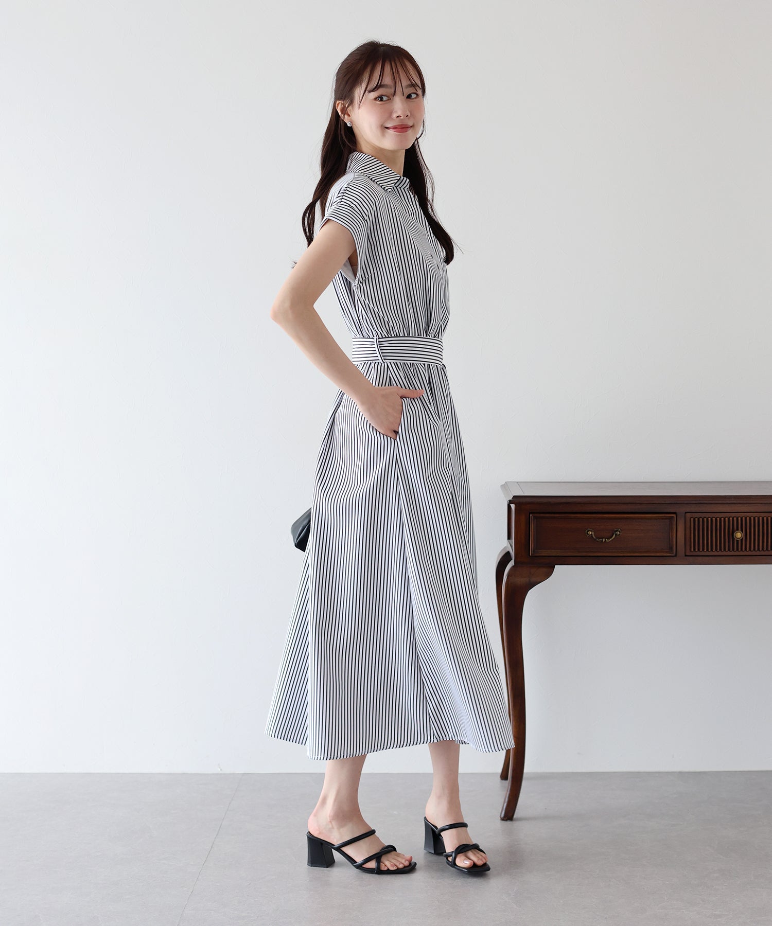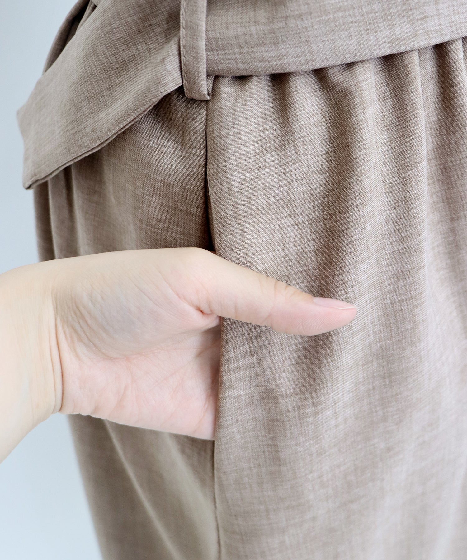 ウエストの位置をやや高めにデザインし、付属のベルトでウエストマークするとスタイルアップ効果も期待できます◎