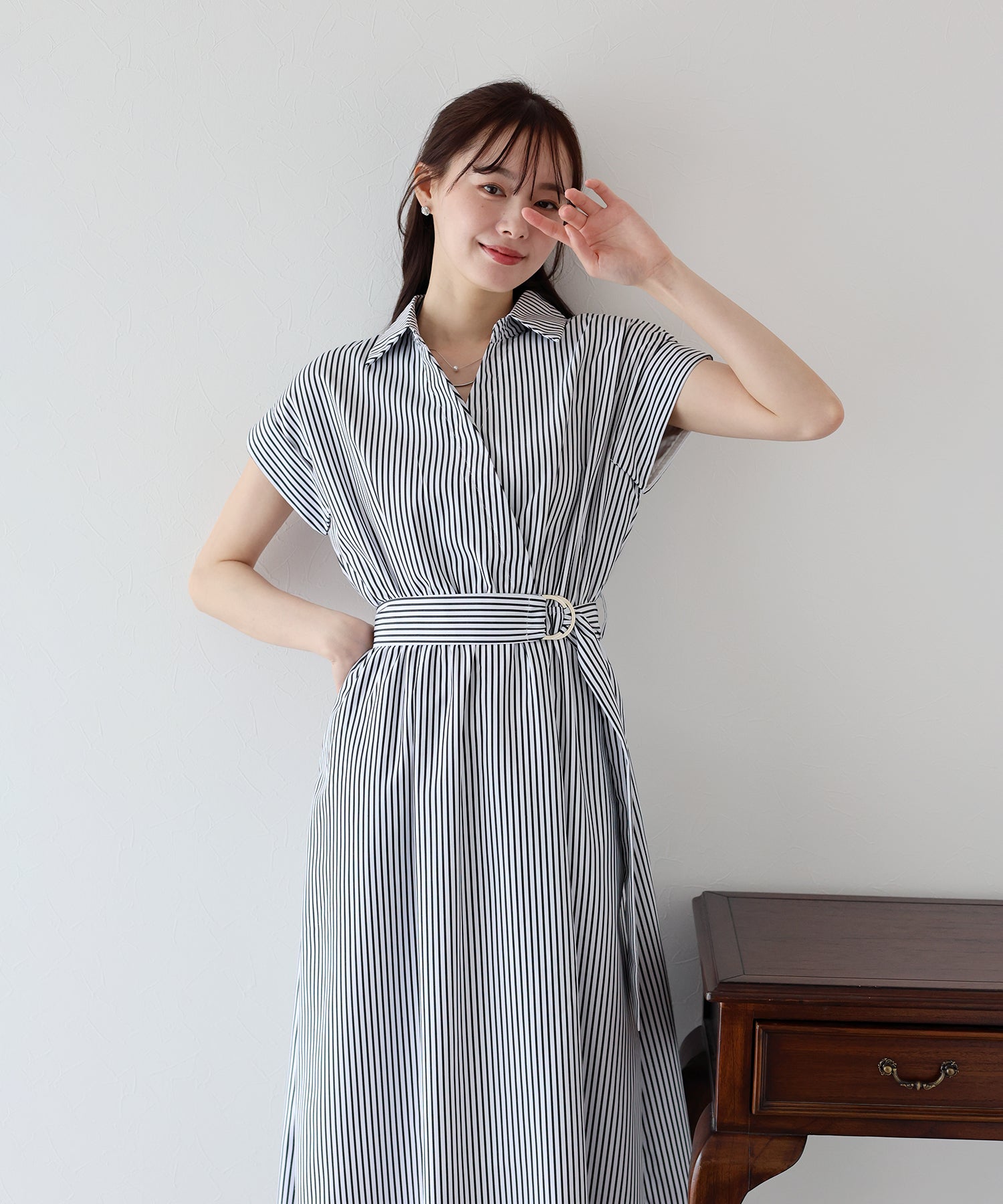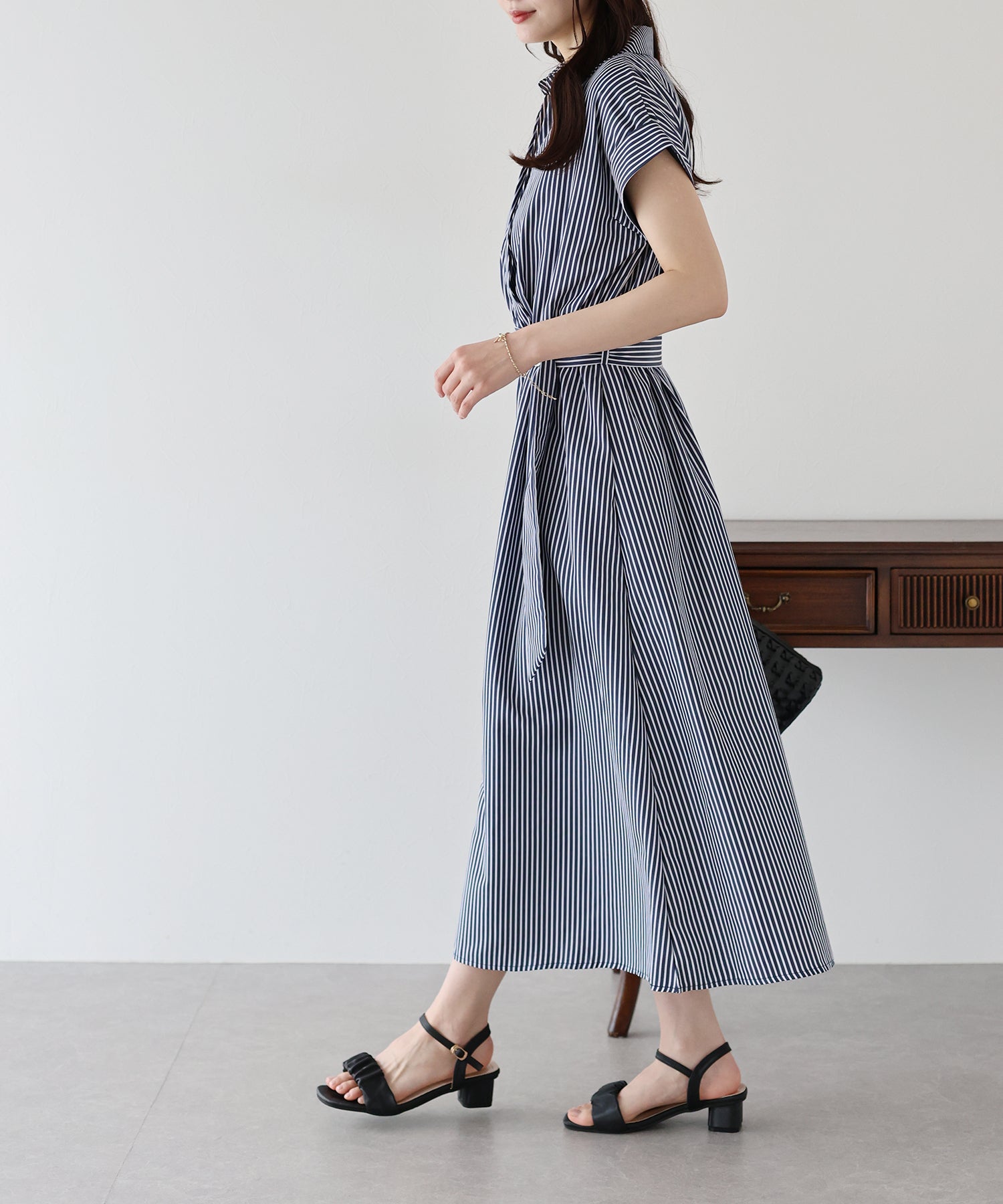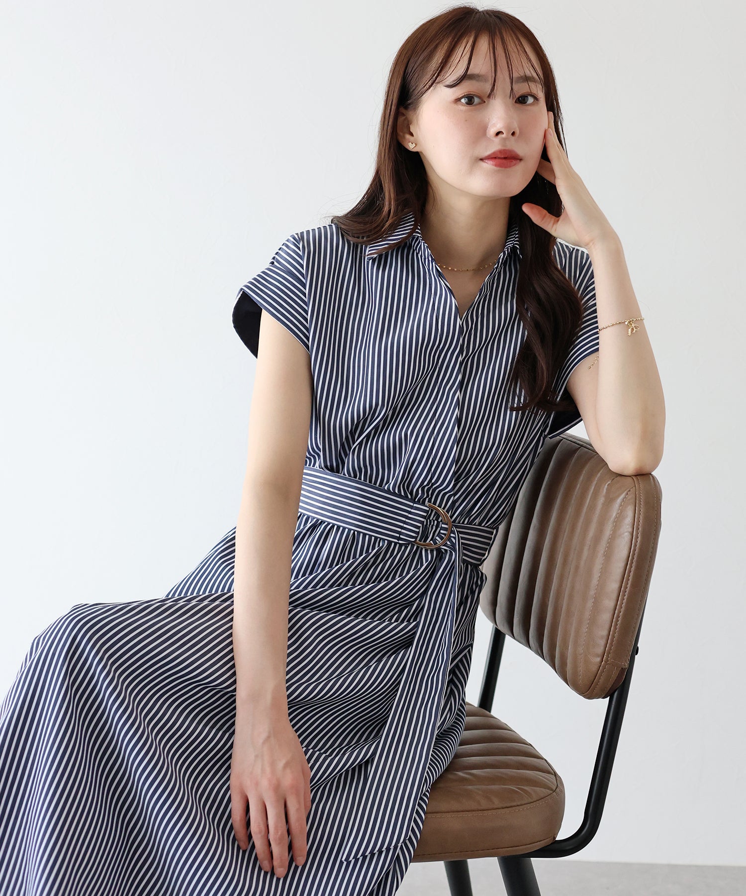 ウエストの位置をやや高めにデザインし、付属のベルトでウエストマークするとスタイルアップ効果も期待できます◎