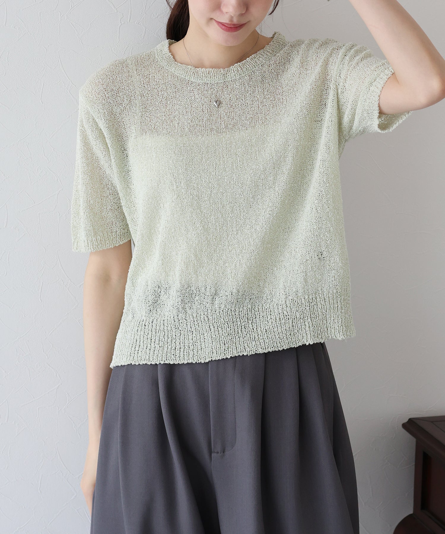 シーズンライクな透け感のある涼しげな半袖シアーニット