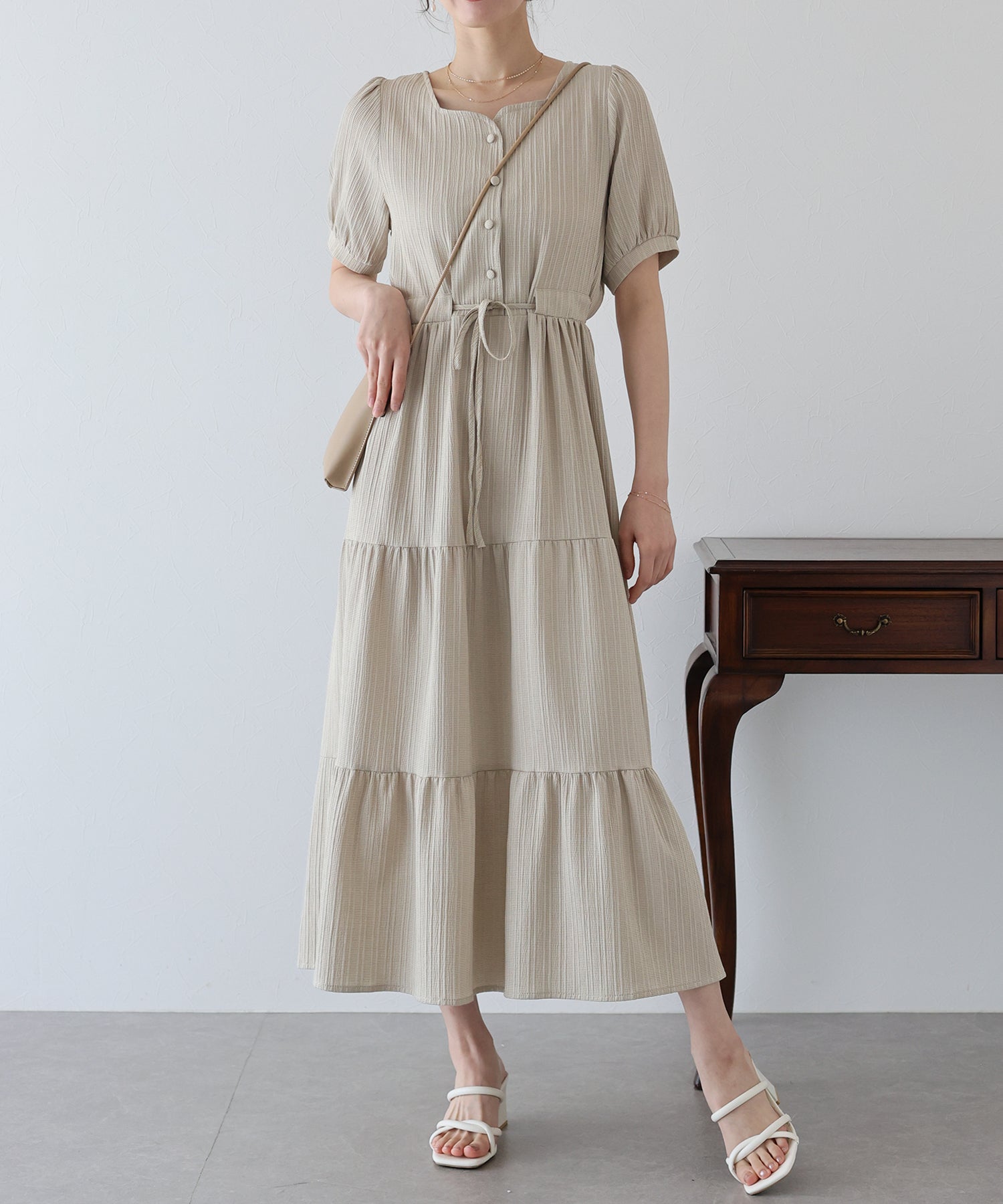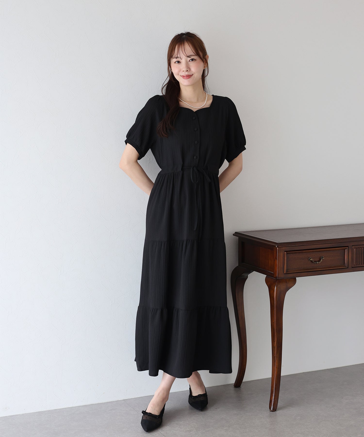 ティアードスカートデザインで下半身の体型カバーまでできるのも嬉しいポイント!