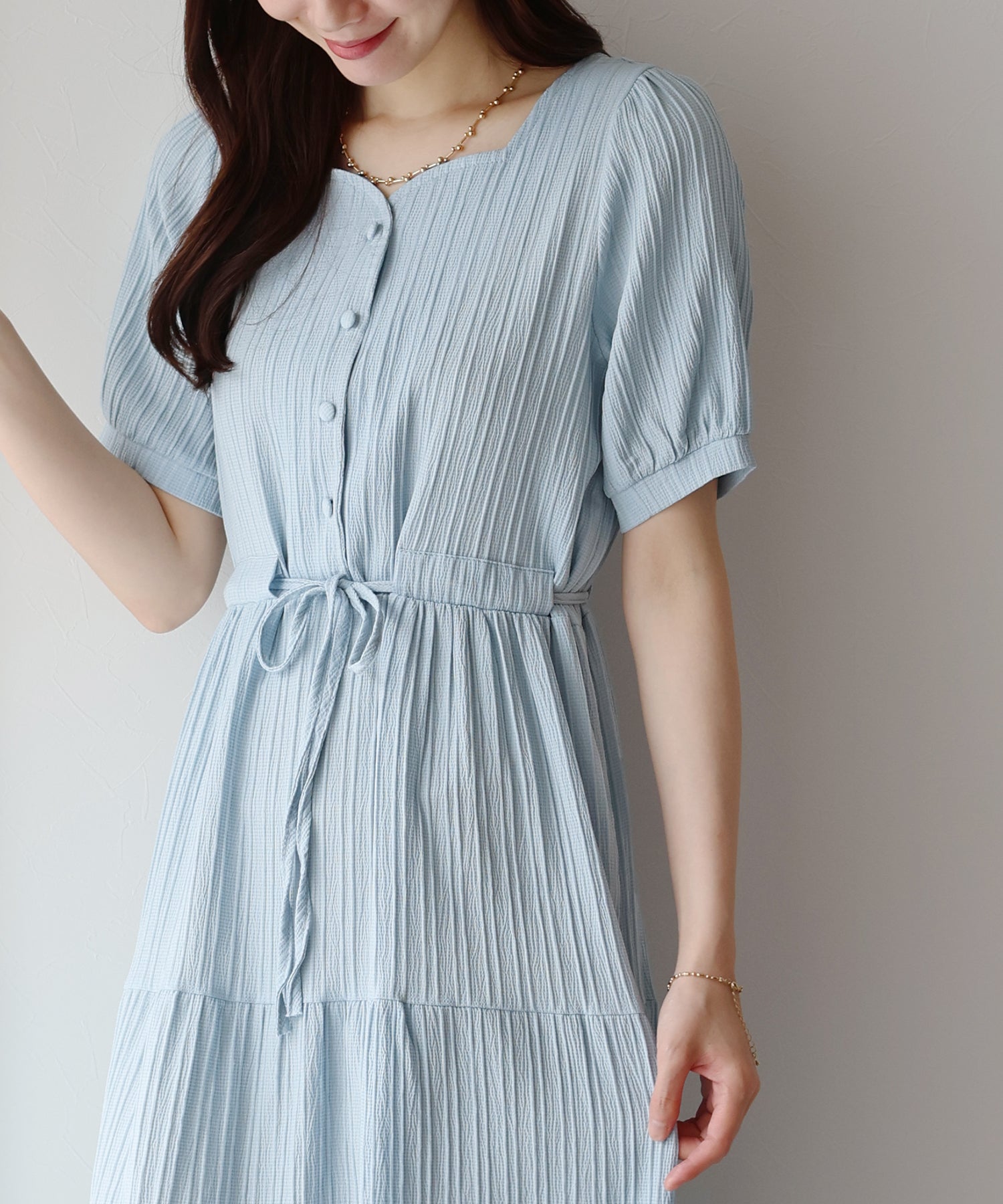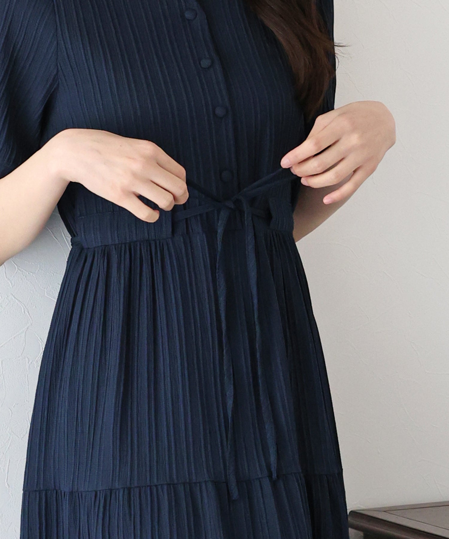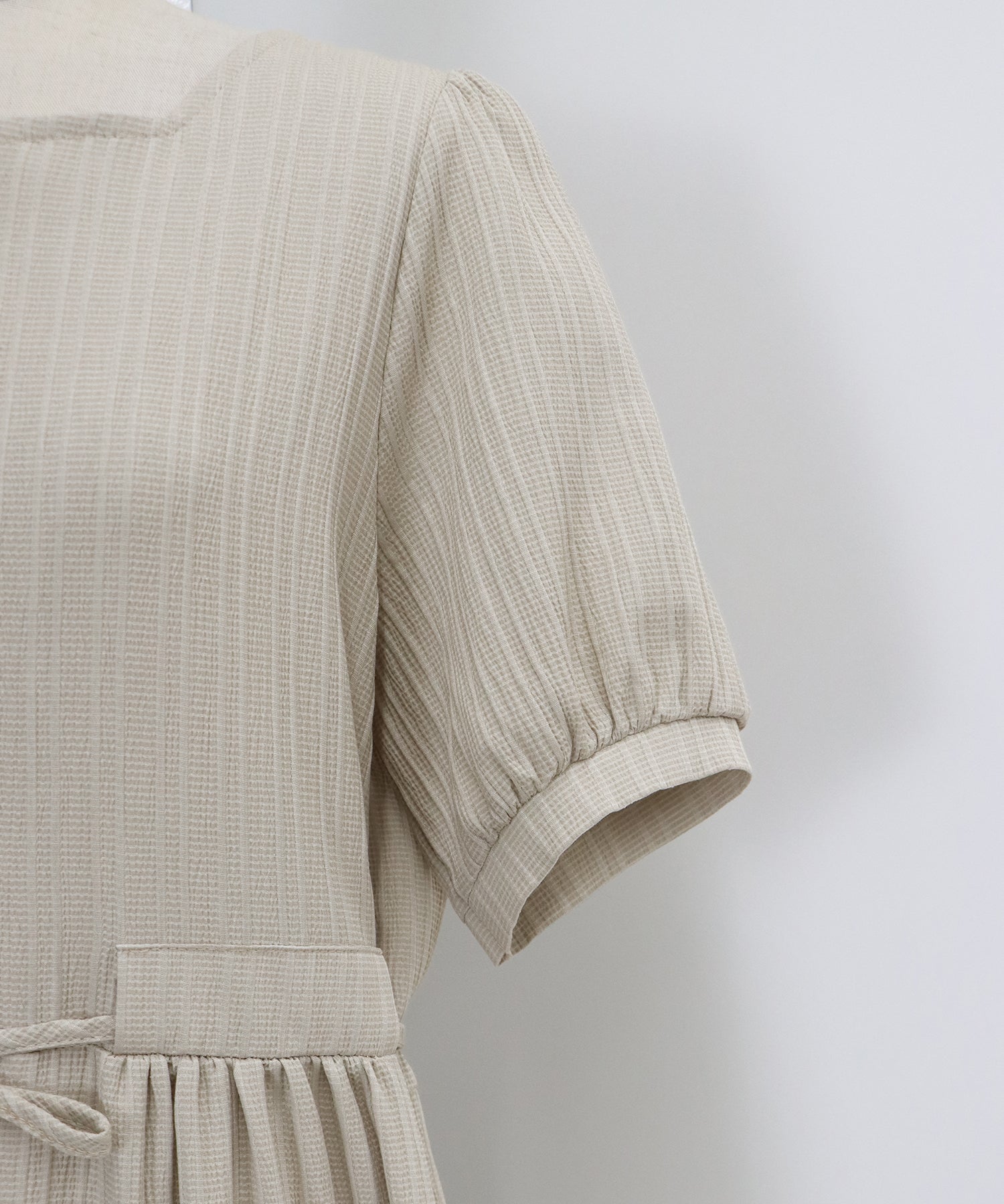 ウエストリボンでシルエットにメリハリを付け女性らしい印象で着こなしていただけます。