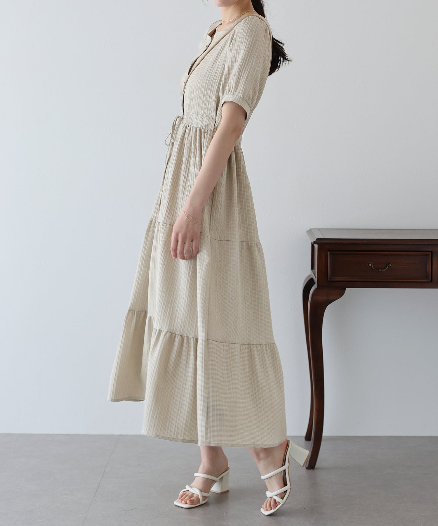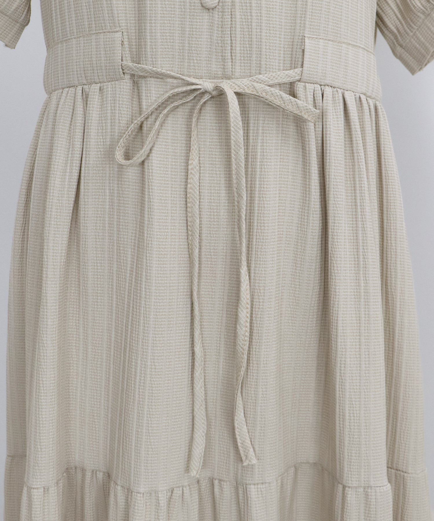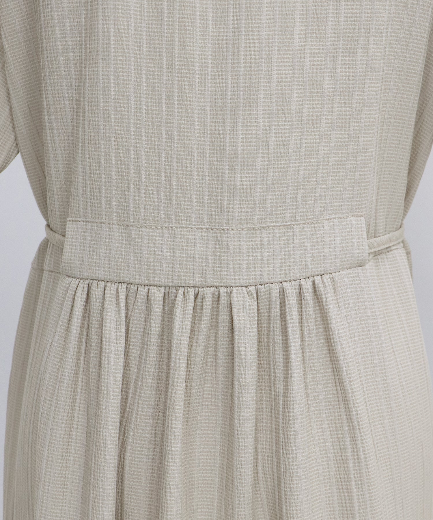 ウエストリボンでシルエットにメリハリを付け女性らしい印象で着こなしていただけます。