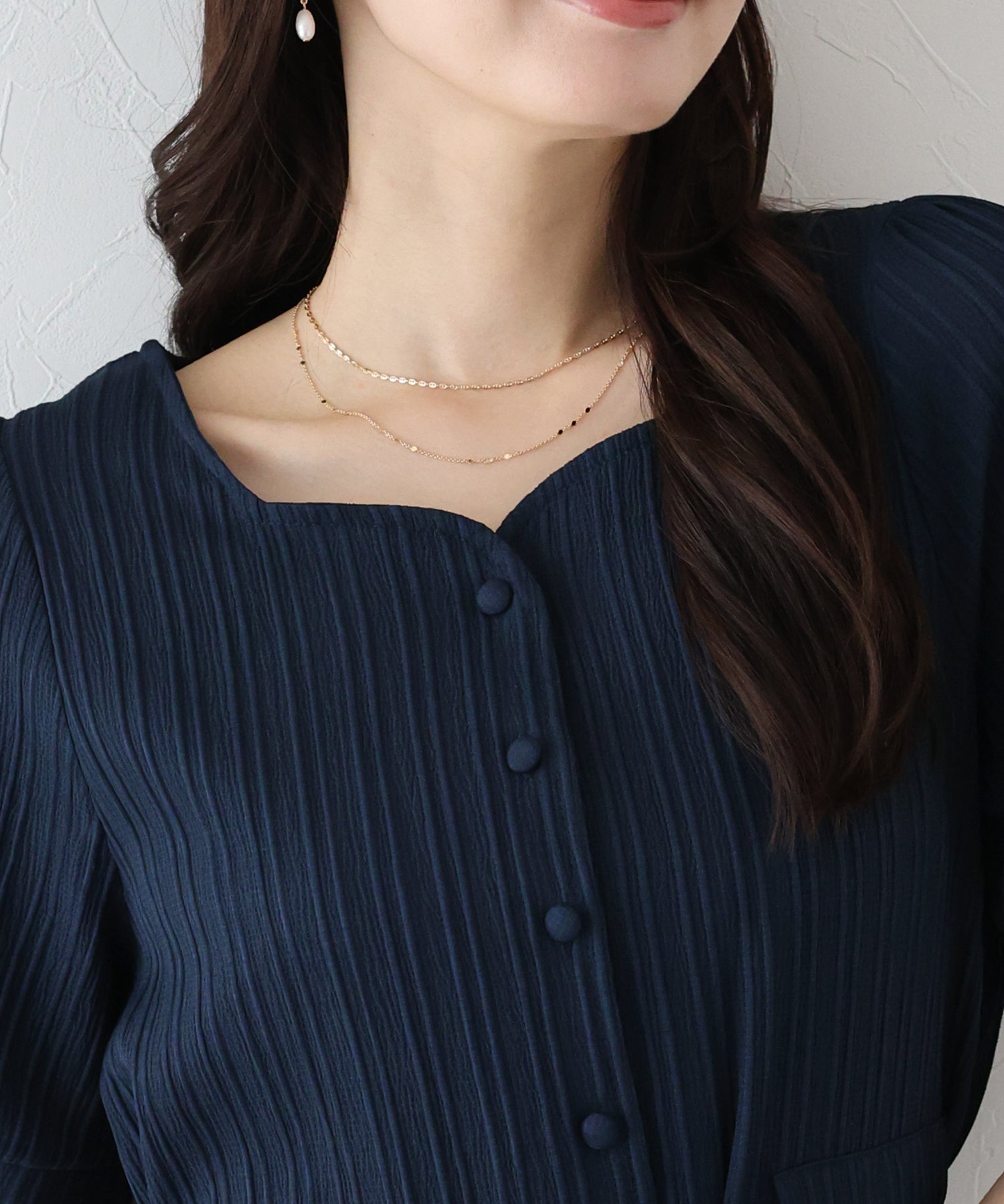 デコルテが綺麗に見えるデザインで、アクセサリーなどでアクセントをつけるのがおすすめ◎