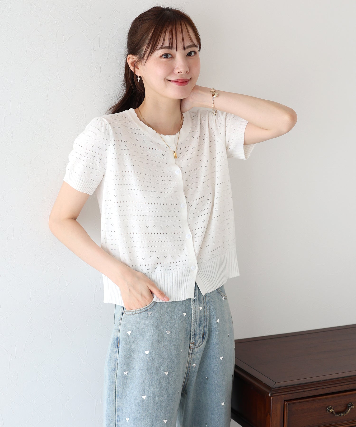 【SALE】透かし編み半袖ニットカーディガン【ネコポス】
