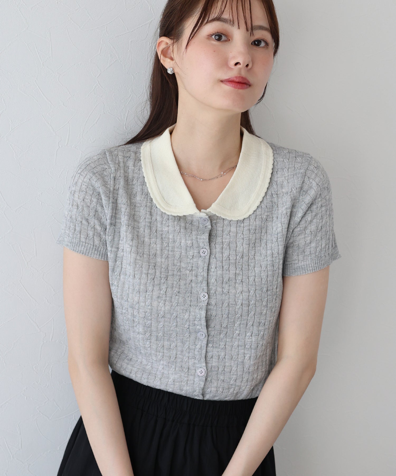 - 【TIME SALE】バイカラー衿ポロニット【ネコポス】