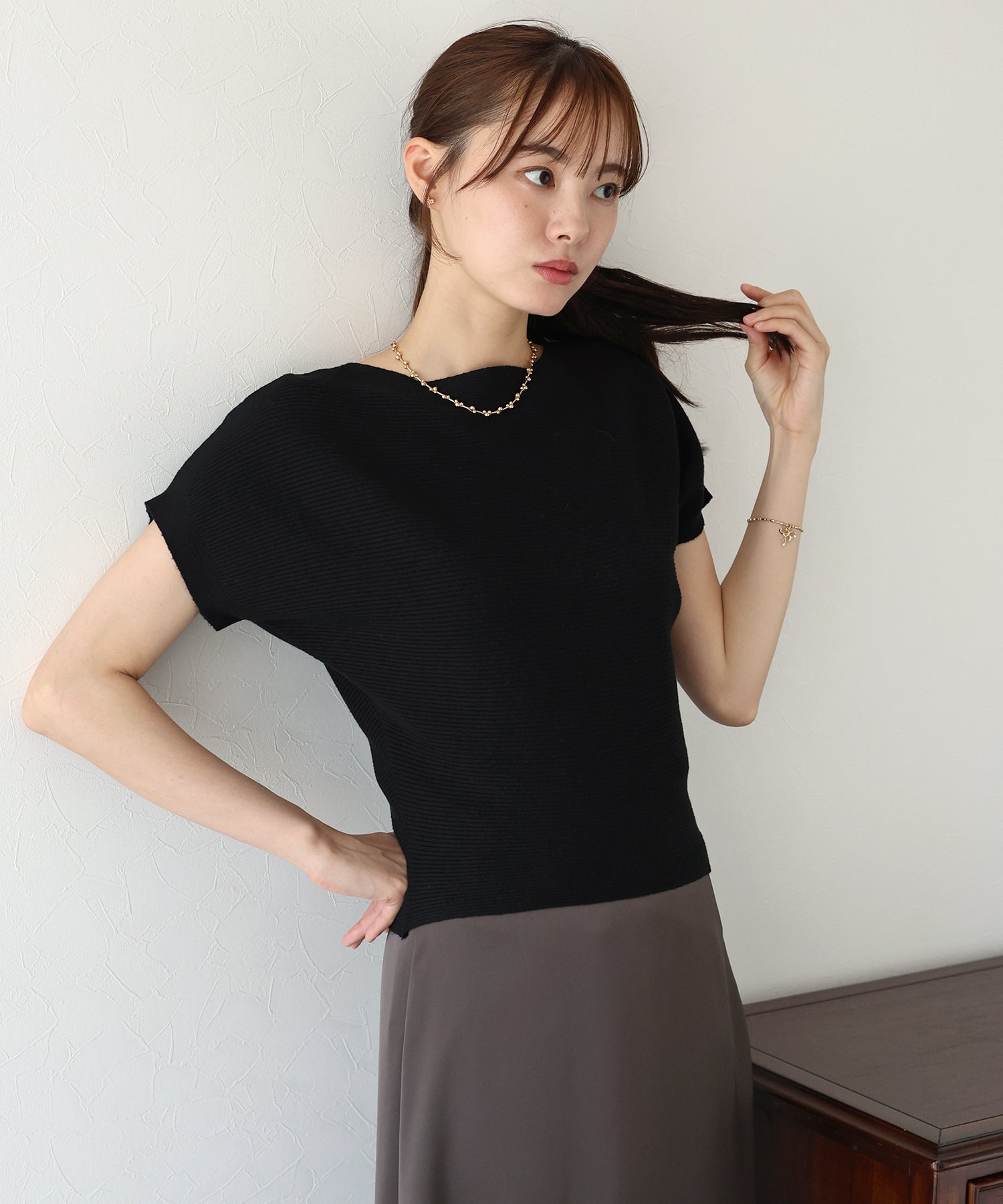 デイリーに着回しできる5分丈ドルマンリブニット ?POINT もちっとしたやわらかい生地が魅力のドルマンスリーブのニット。 ゆったりとしたシルエットで、リラックス感のある着心地が特徴です。 ボディラインを拾わないゆったりとした身頃&短すぎず長すぎないジャスト丈で デイリーに着まわしやすさも◎ コーディネートにこなれ感を加えるドルマンデザインで、 リラックスしつつも洗練された雰囲気を演出します。