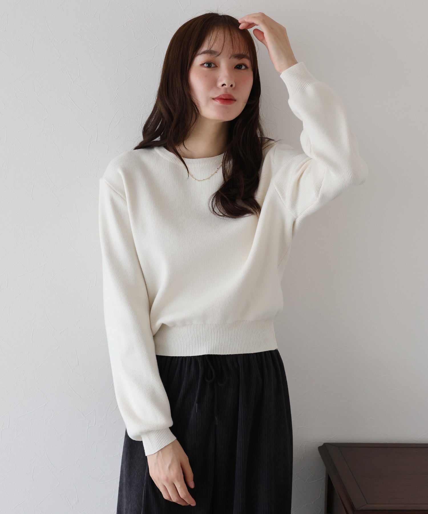 - 【SALE】アシメネックリブニット