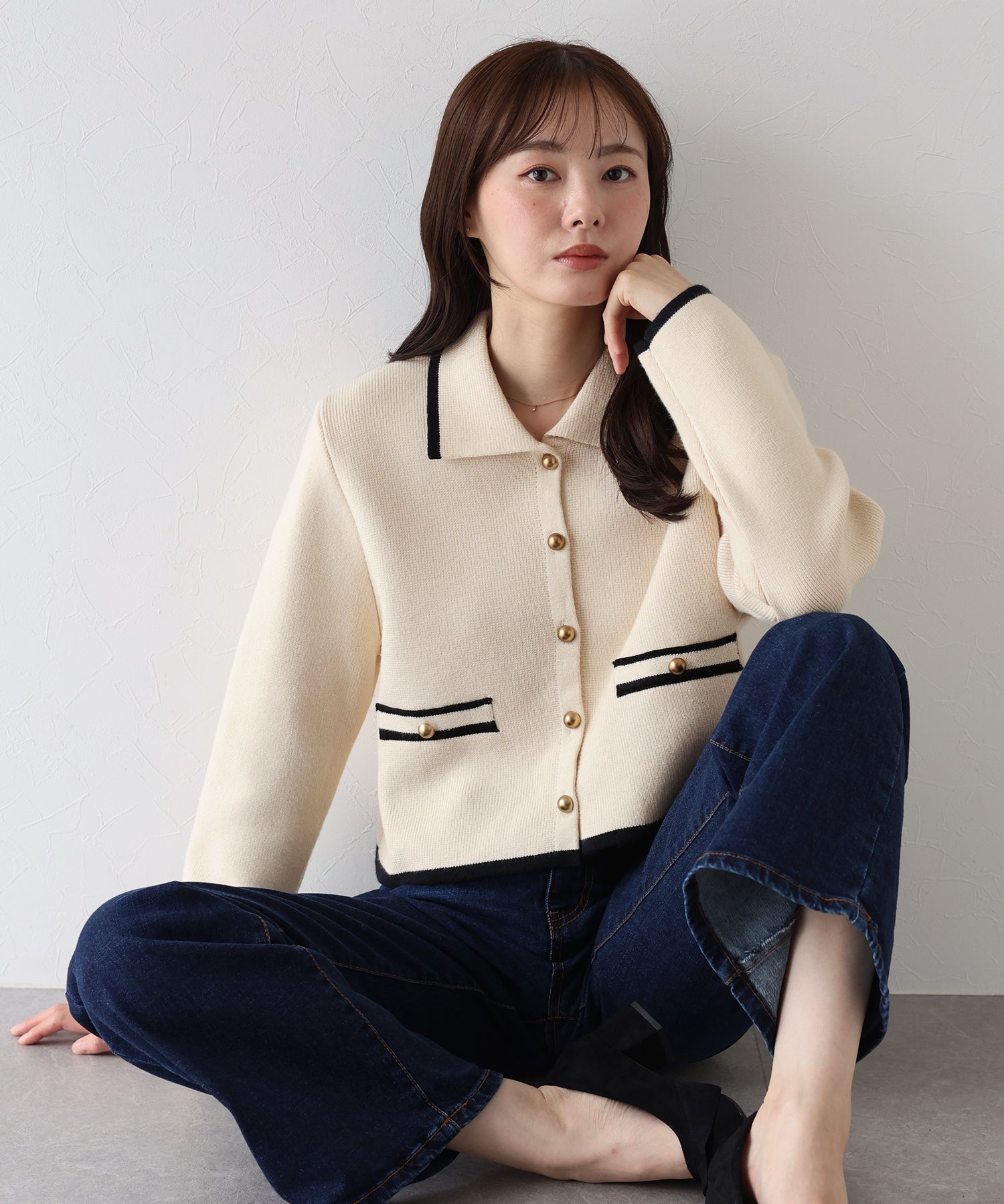 - 襟付きニットジャケット