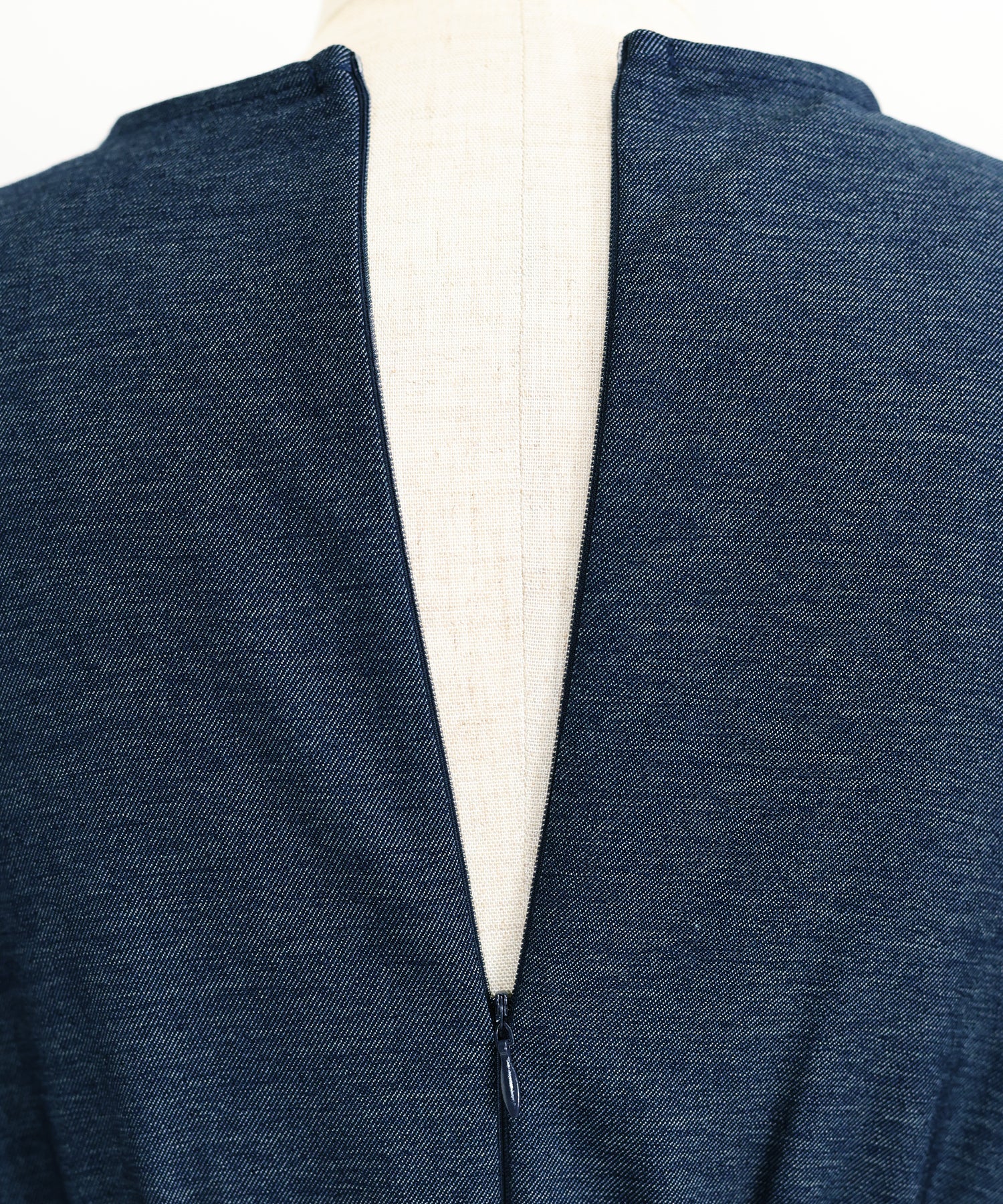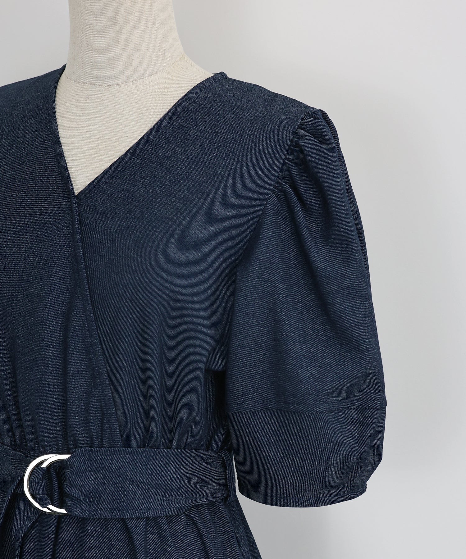 デニムライク素材の大人上品なカシュクールワンピース。