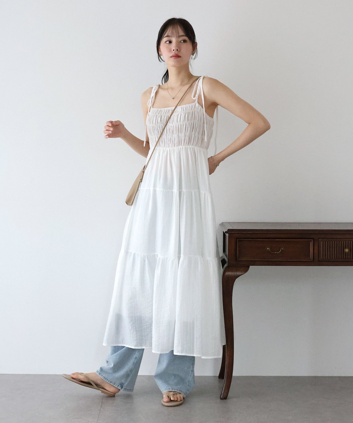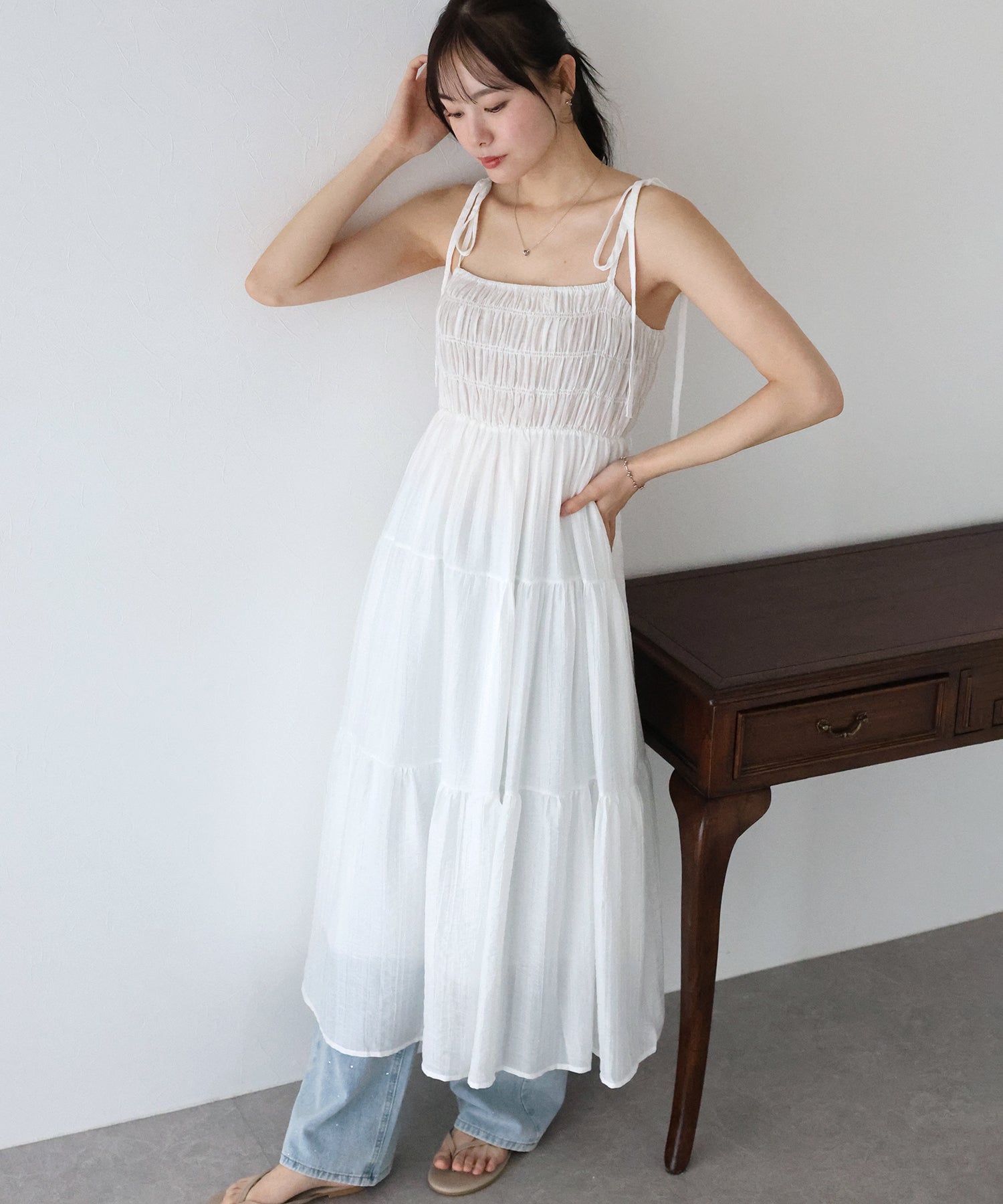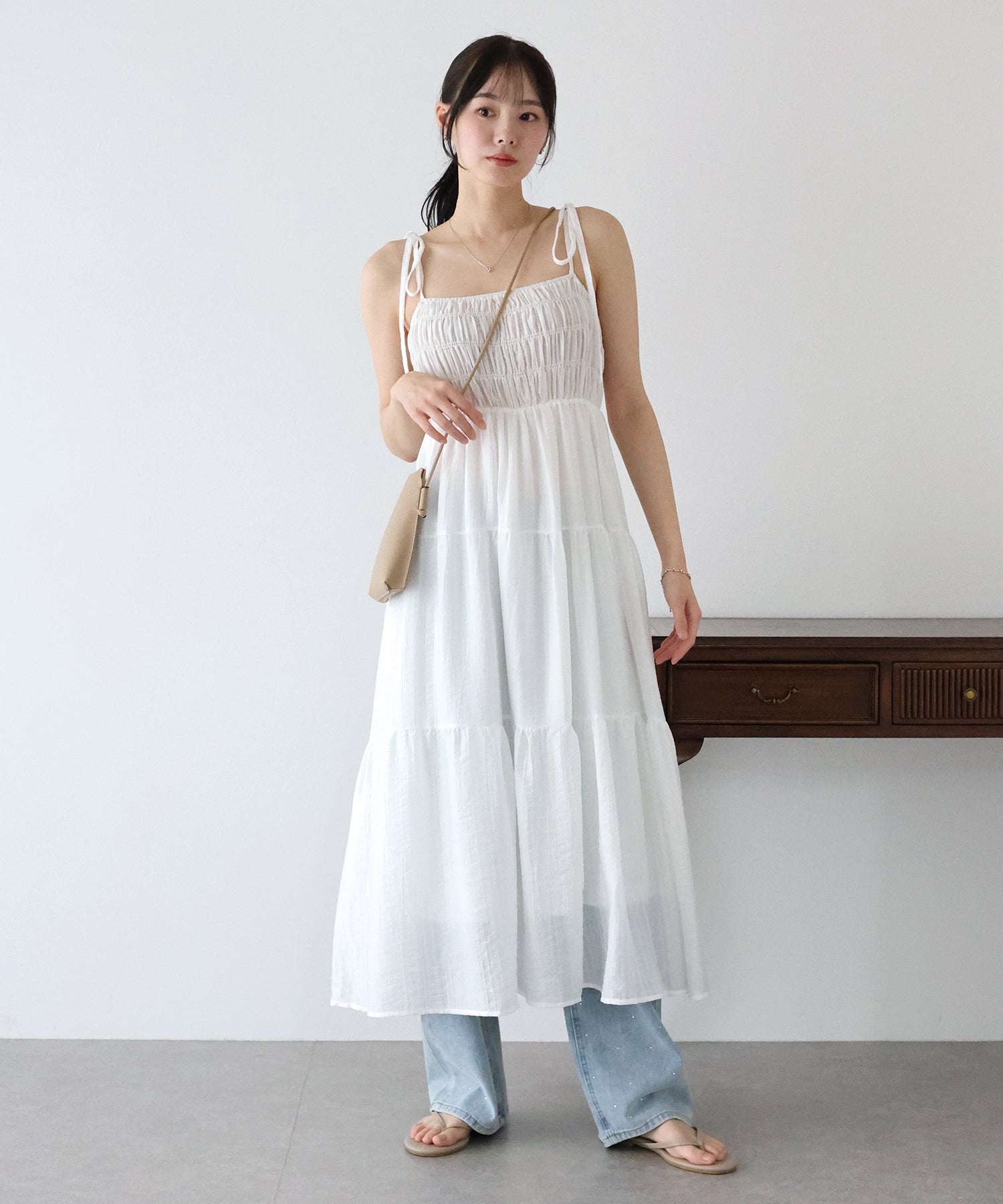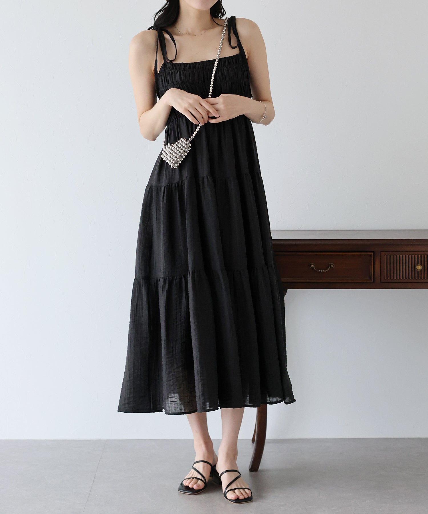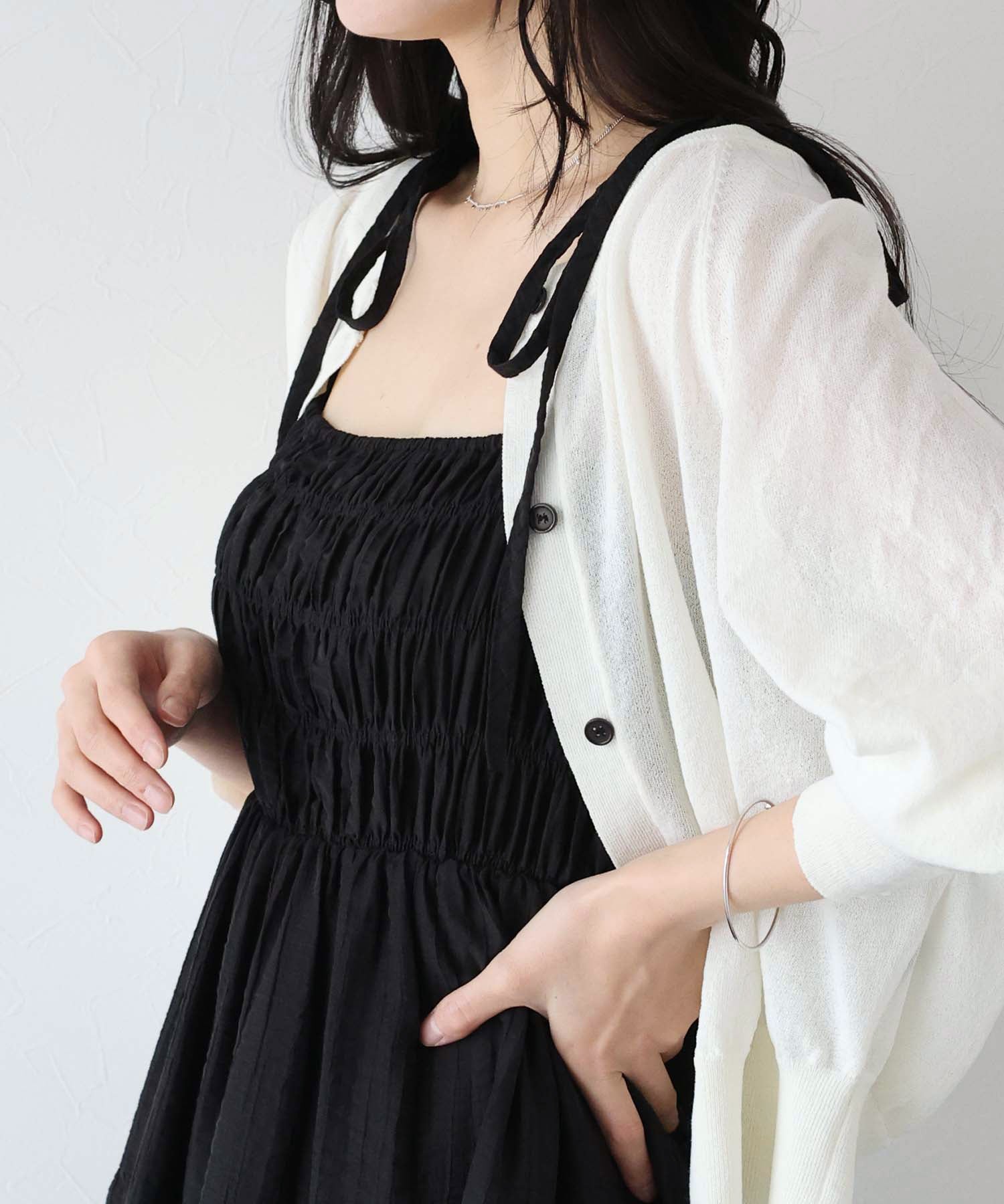 - 【SALE】リボンデザインシアーボレロ&クロシェレースドレス