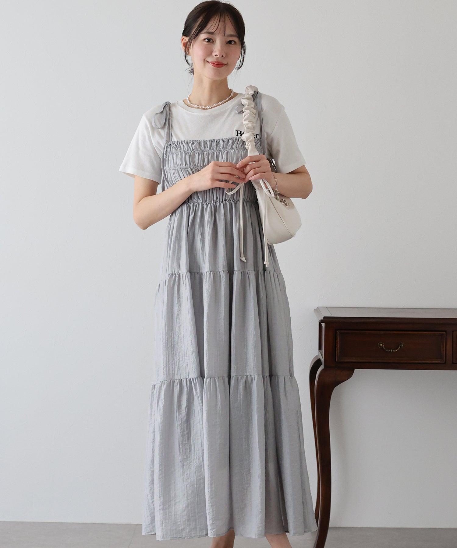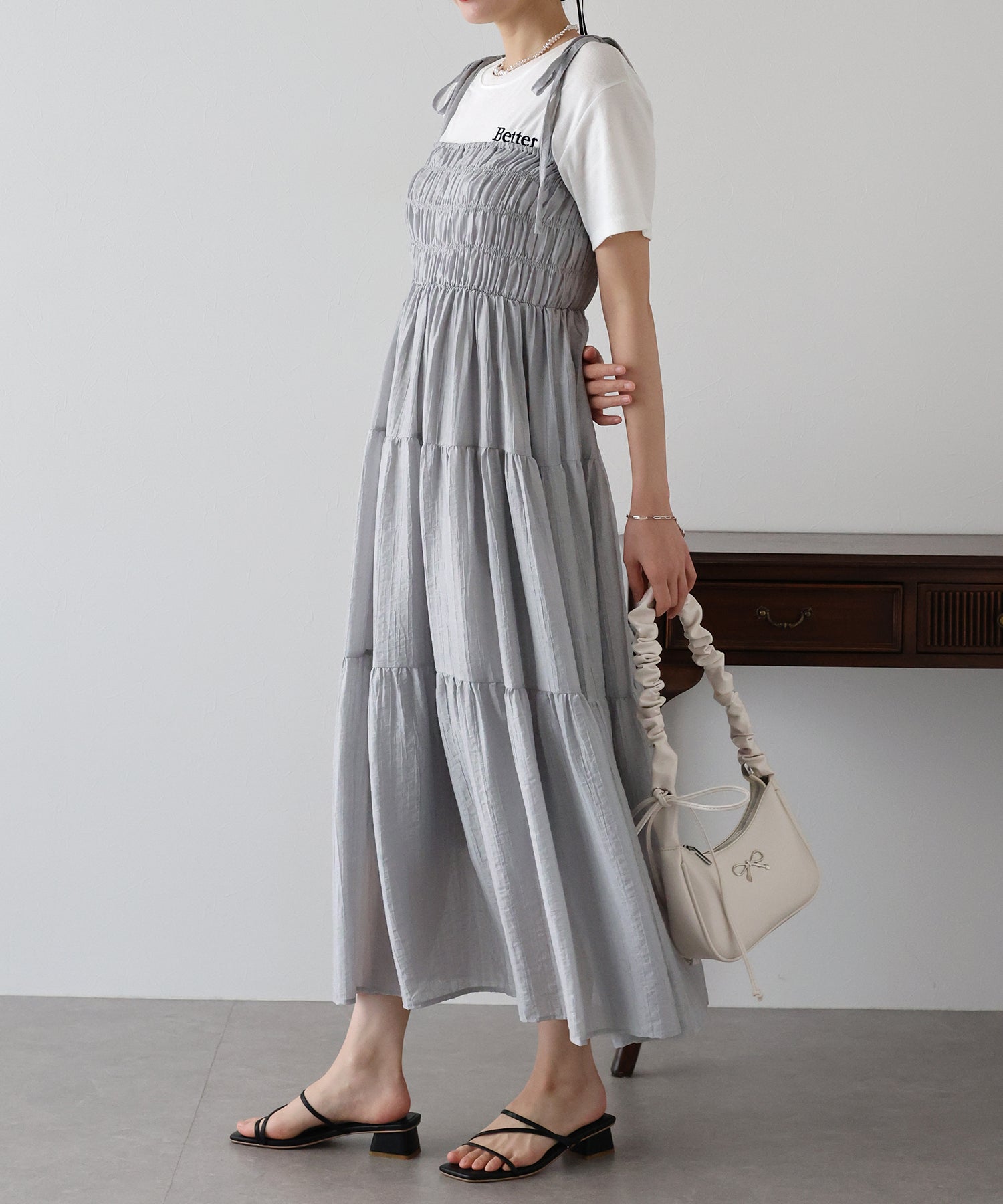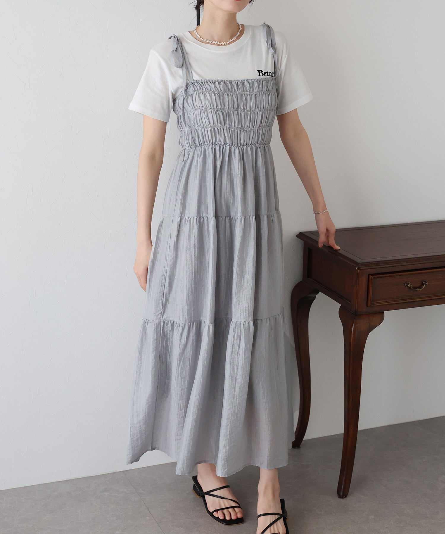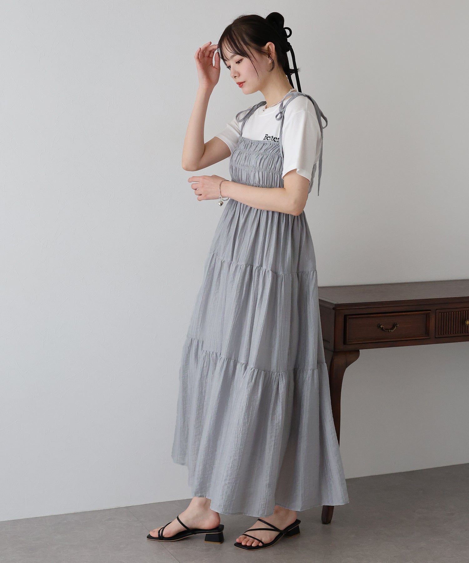 - 【TIME SALE】チュール袖マーメイドニットワンピース