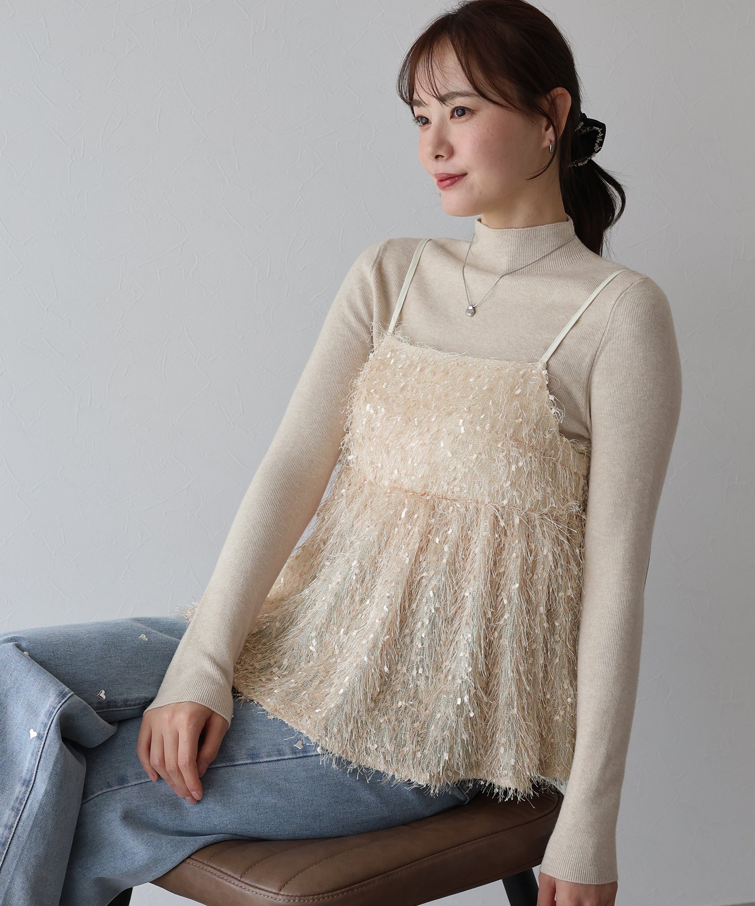 1枚でこなれ見えするフェザーフリンジビスチェ