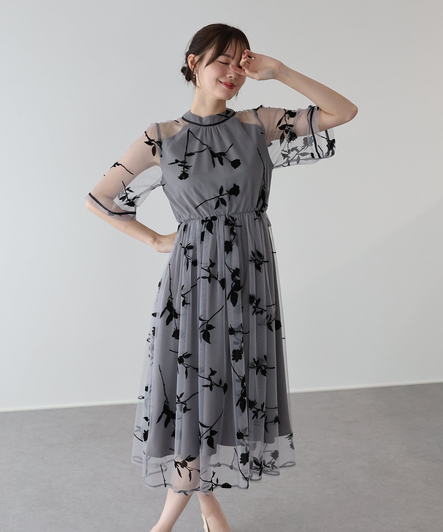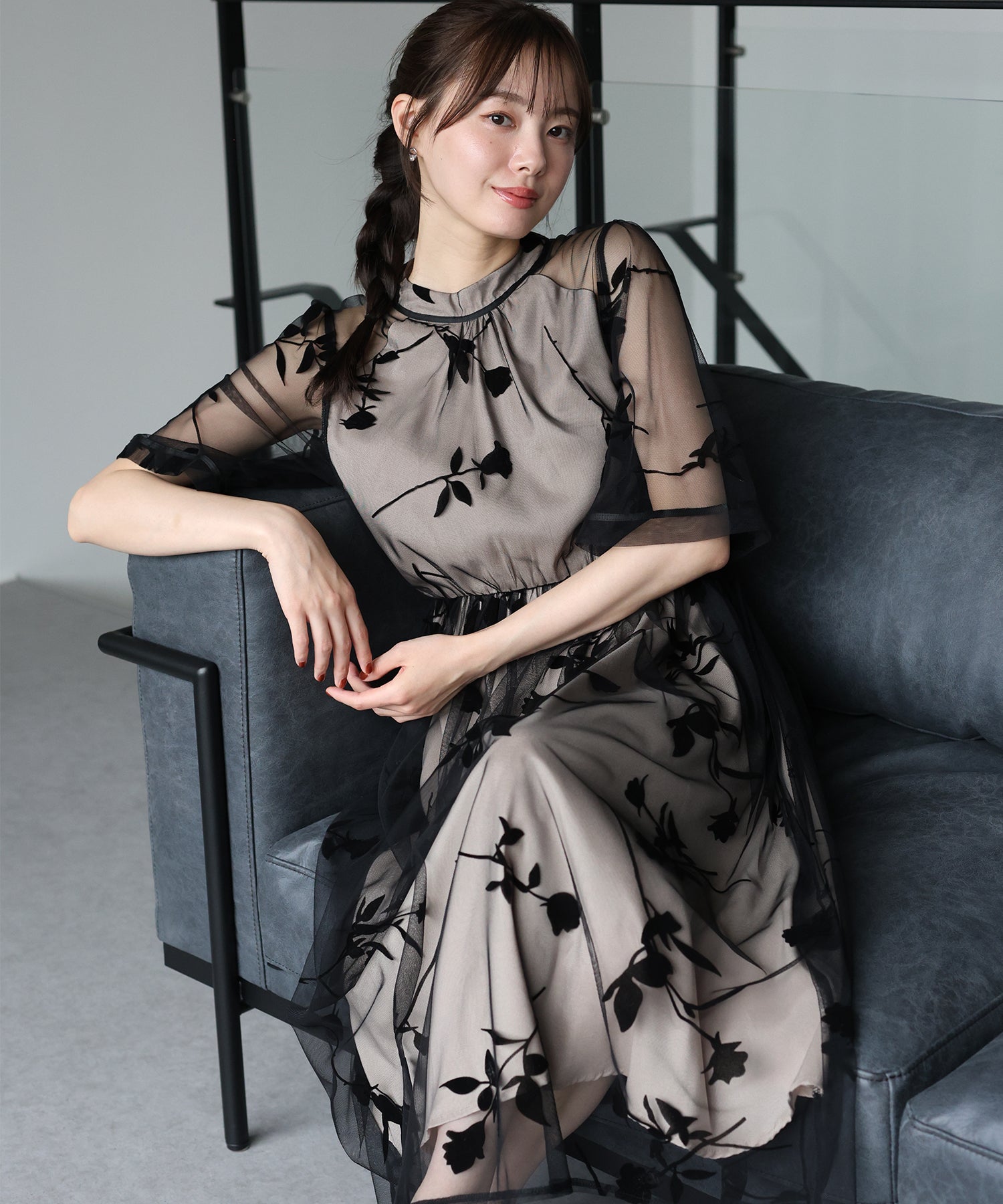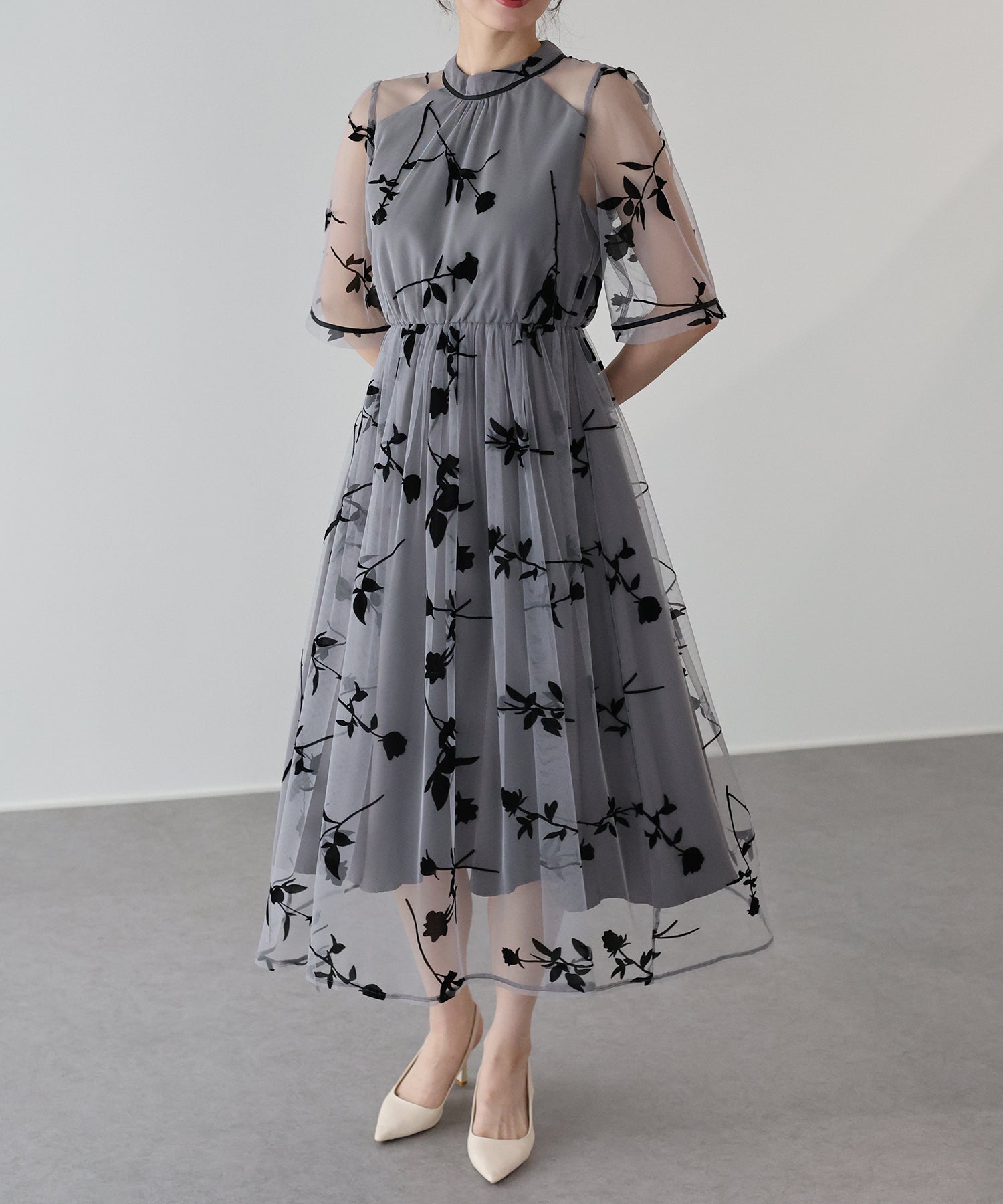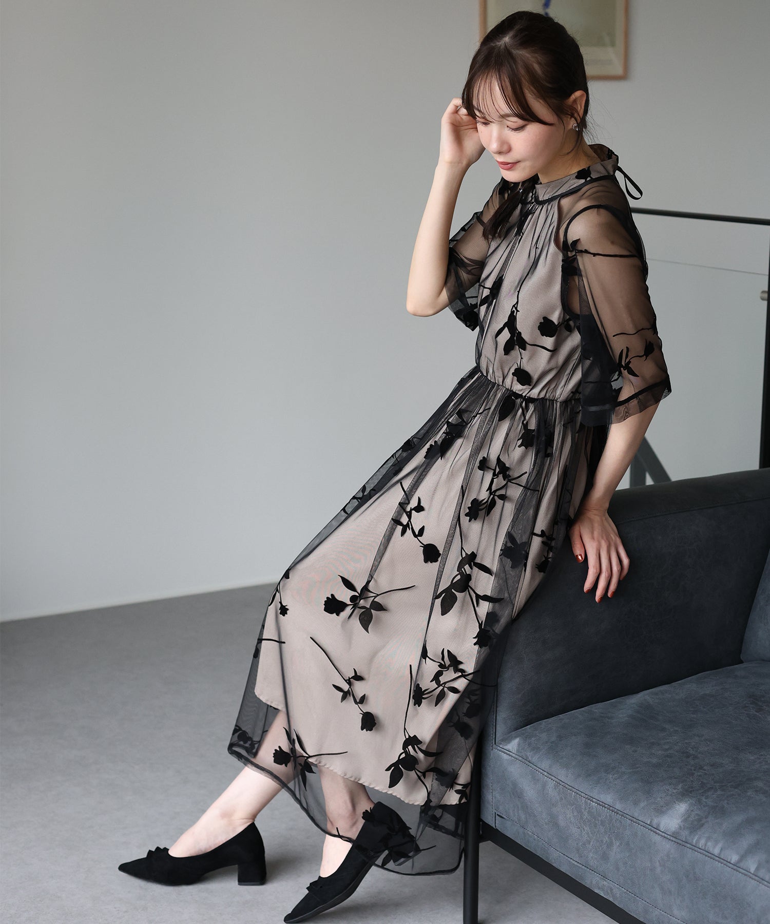シアーな透け感は保ちつつ、あえて首元はハイネックに仕上げたことで上品でクラシカルな雰囲気。