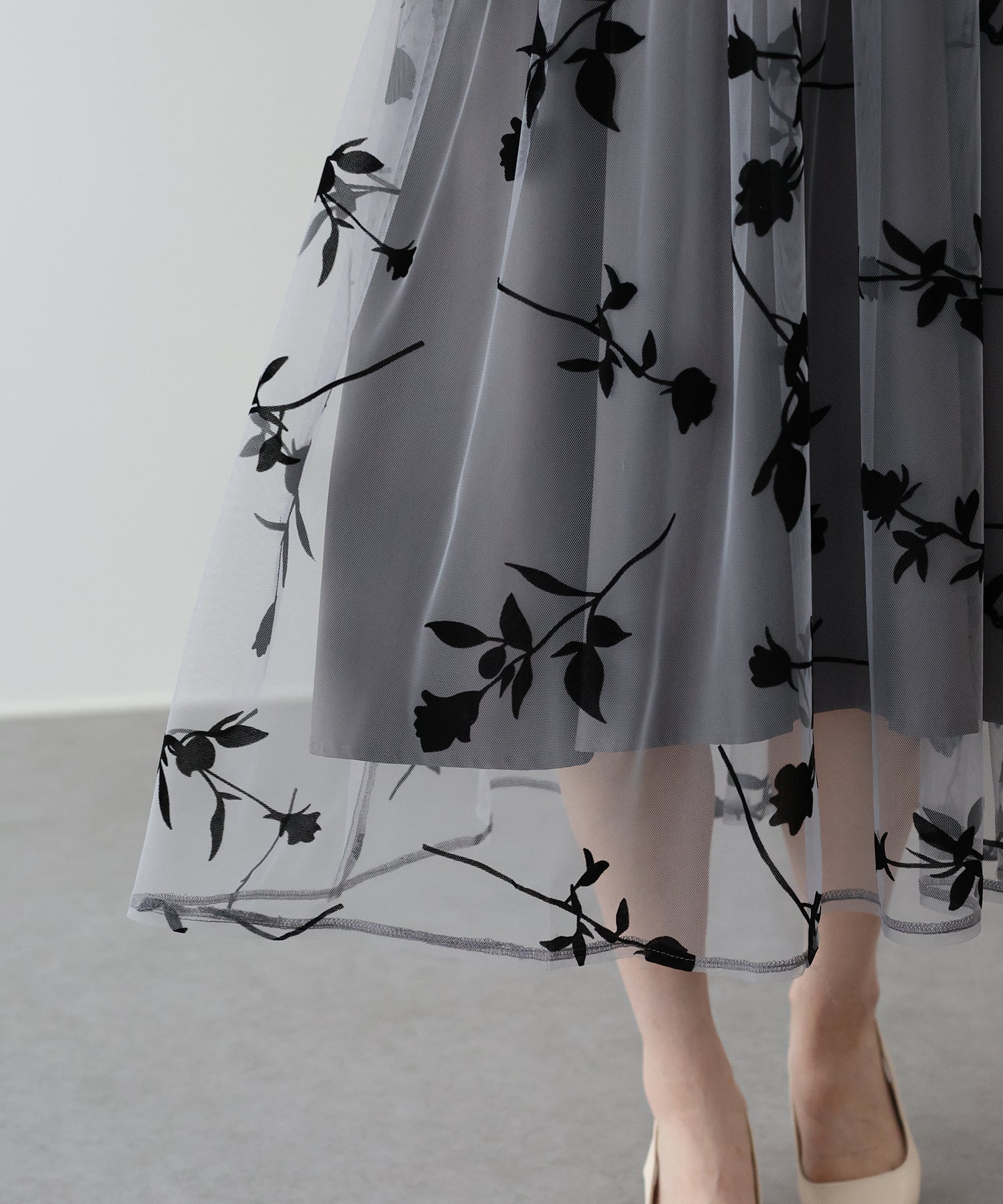 花柄の繊細なレースが華やかで目を惹くデザイン。