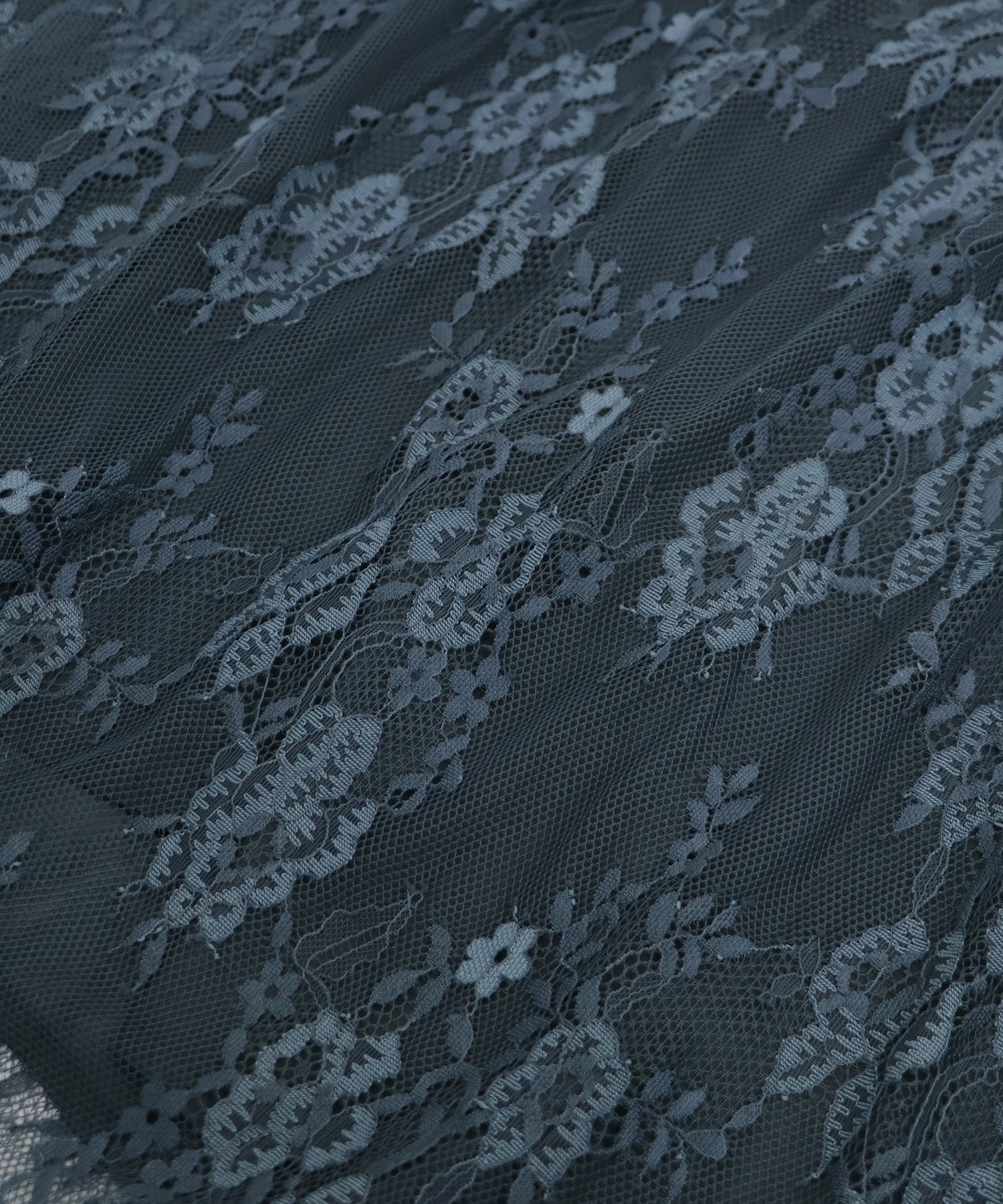 女性らしい透け感のフェミニンな配色フラワー柄レースにレーステープがアクセント。