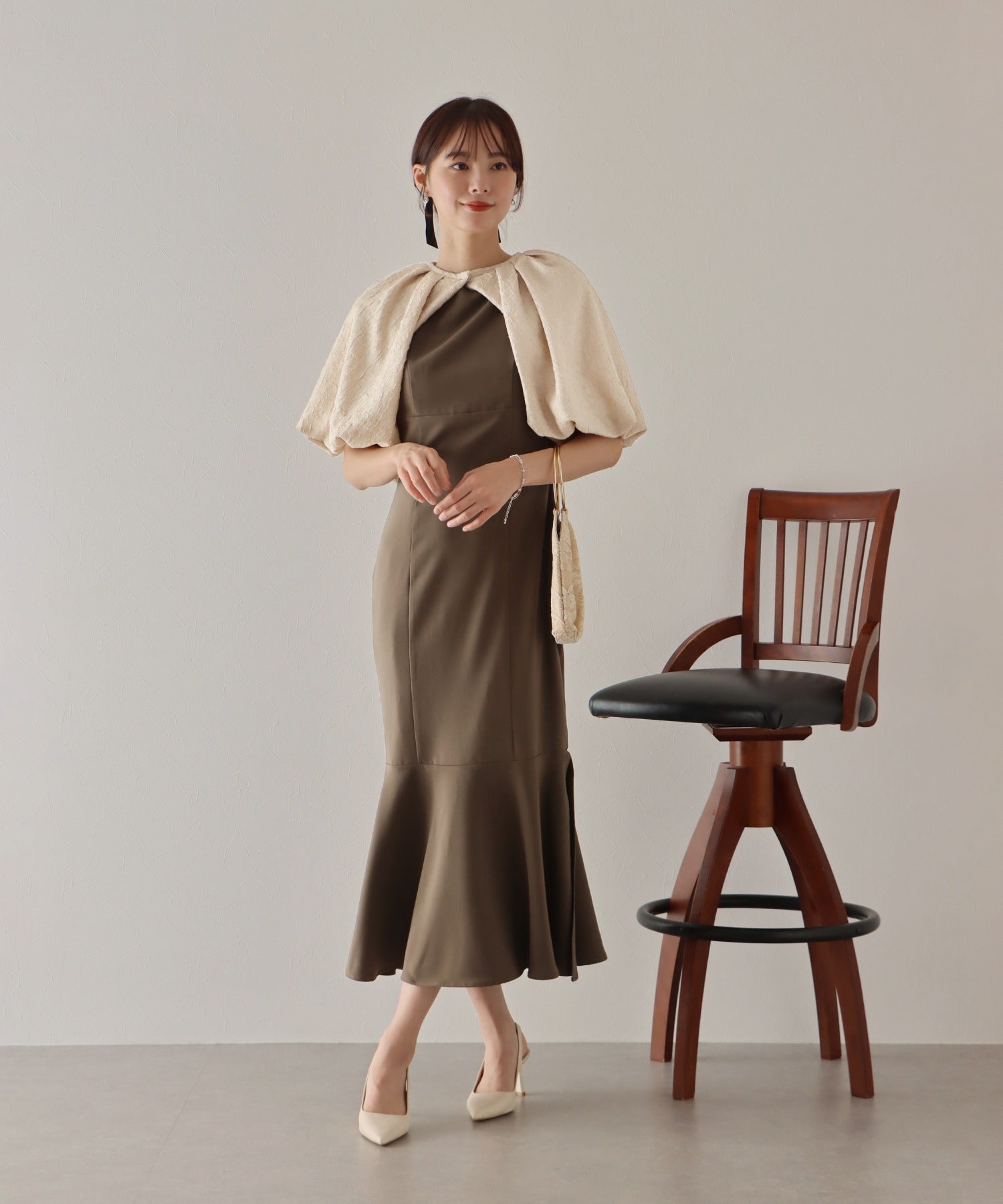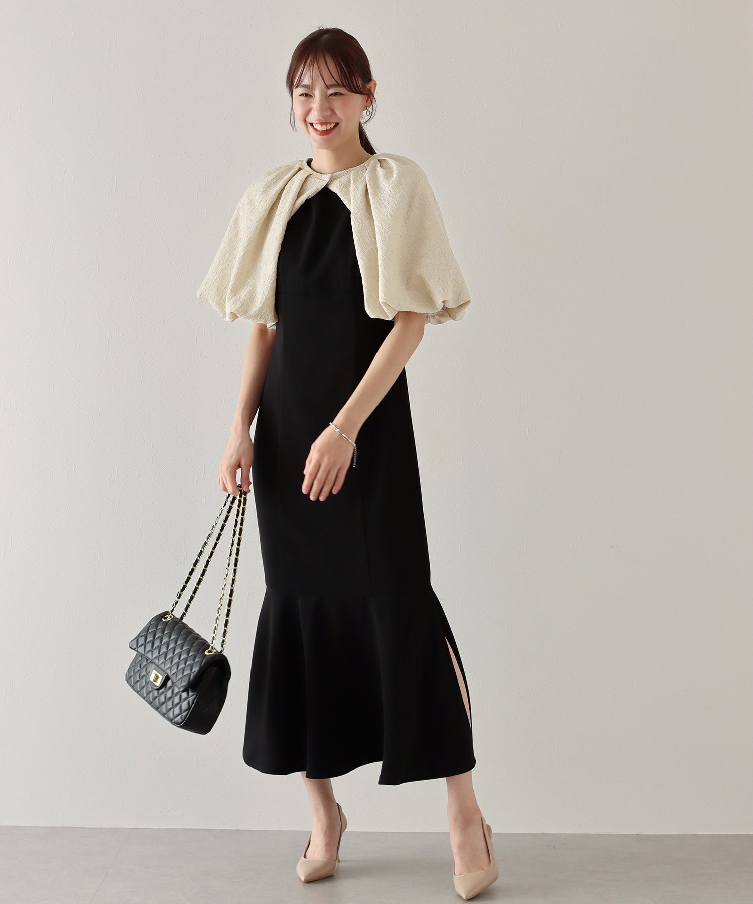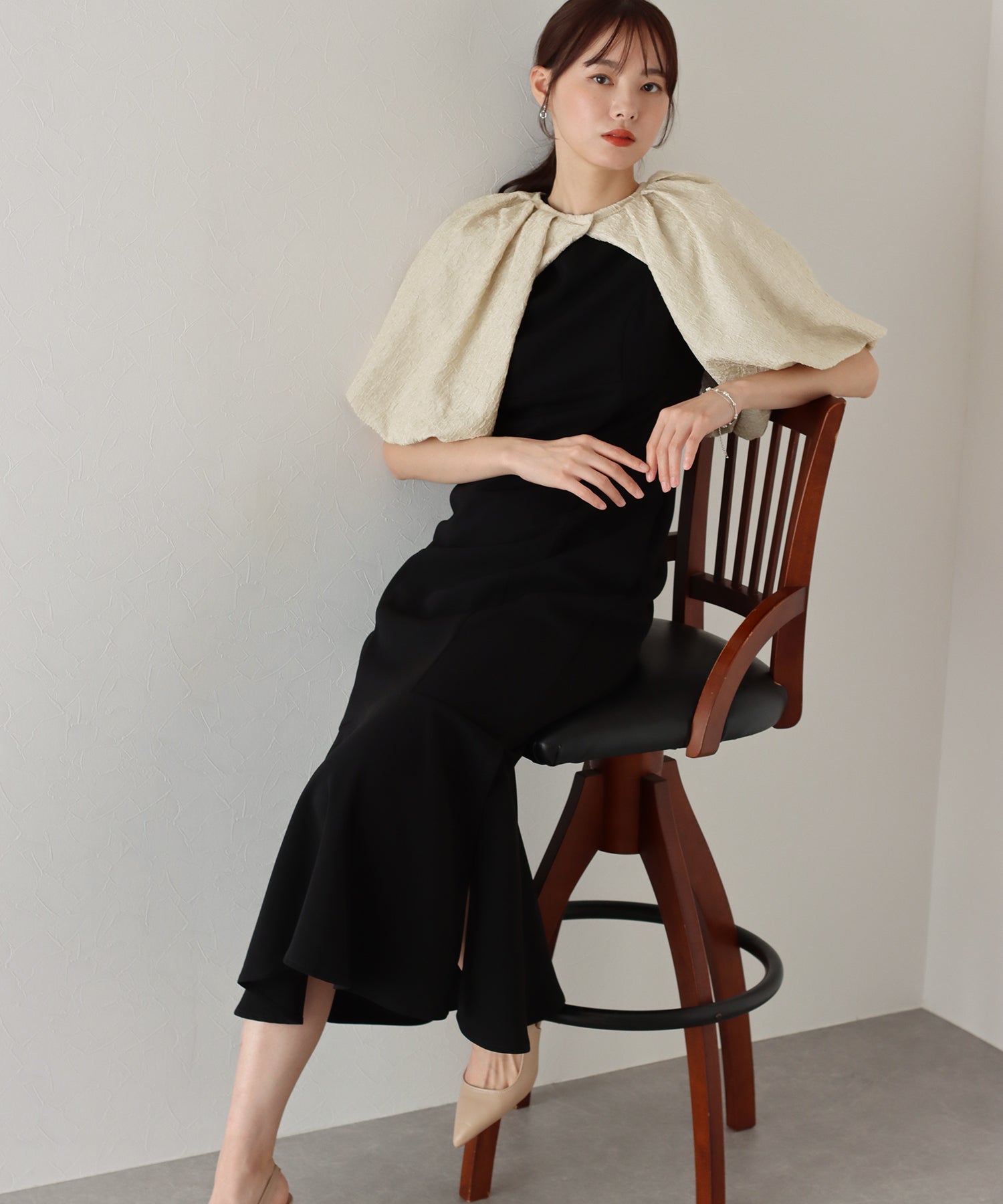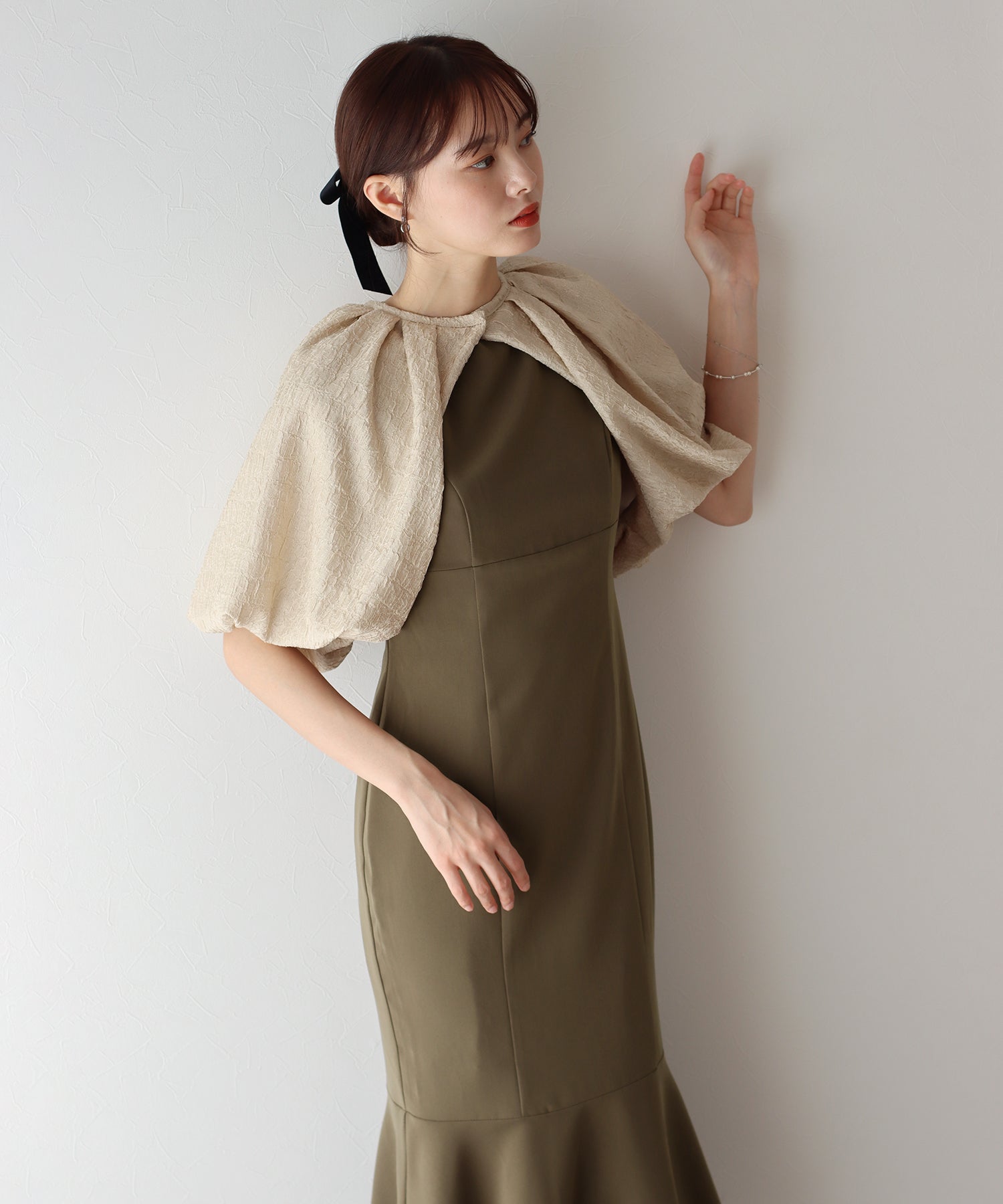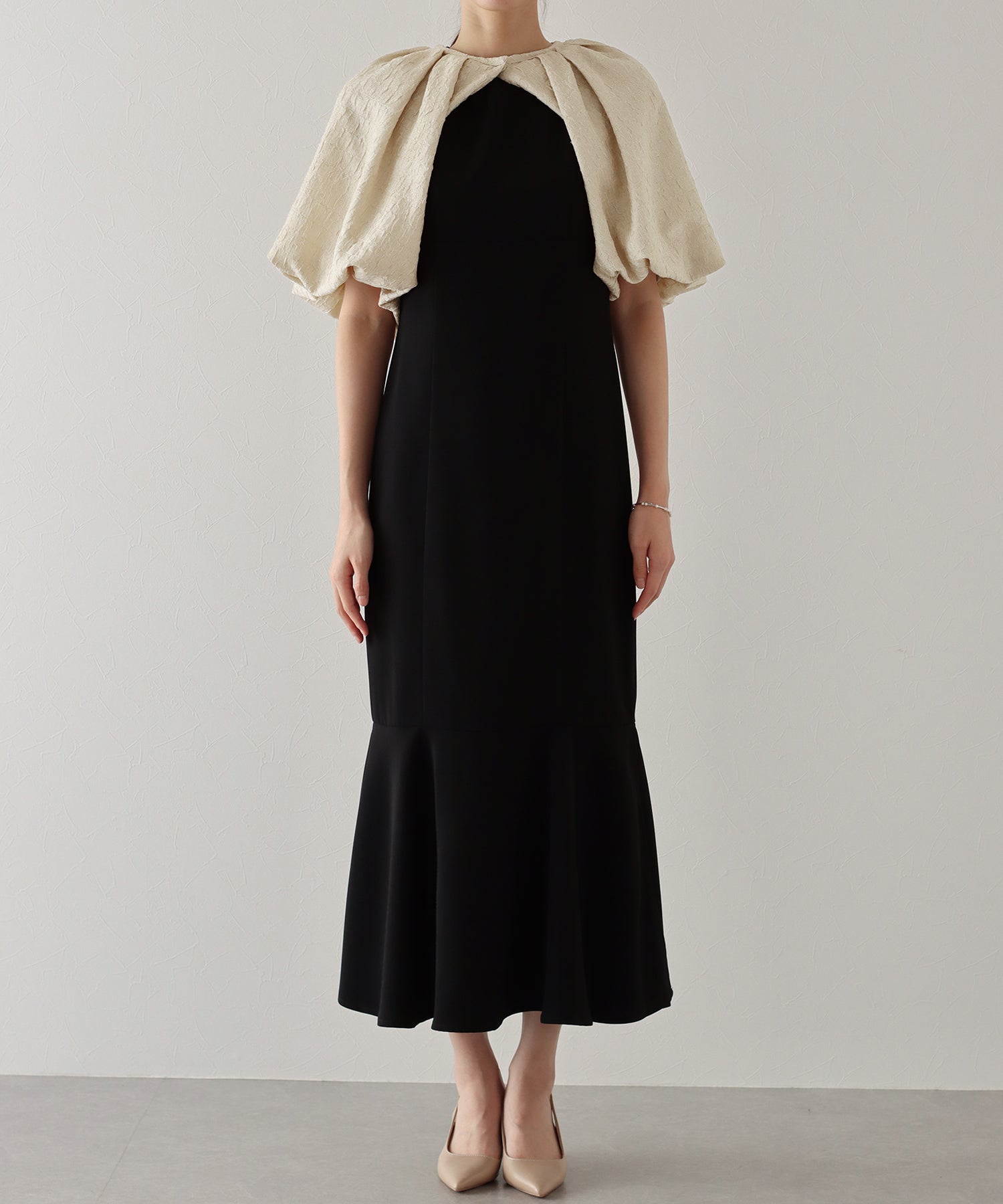 ジャガードケープとラインの美しさが際立つノースリーブマーメイドドレスがセットになったパーティーワンピース?結婚式ワンピース