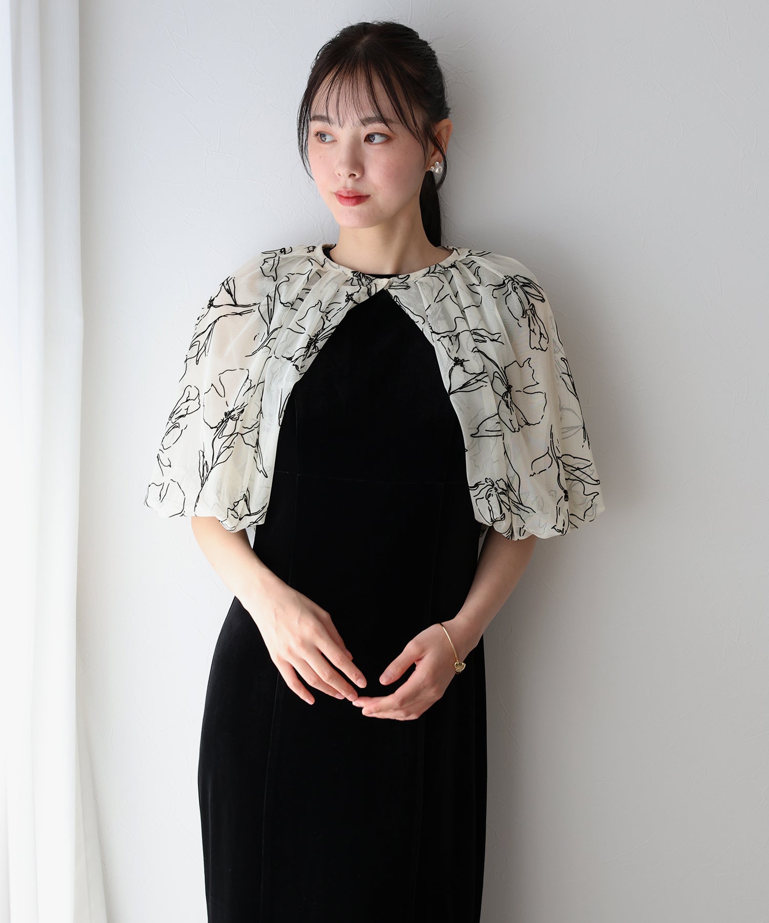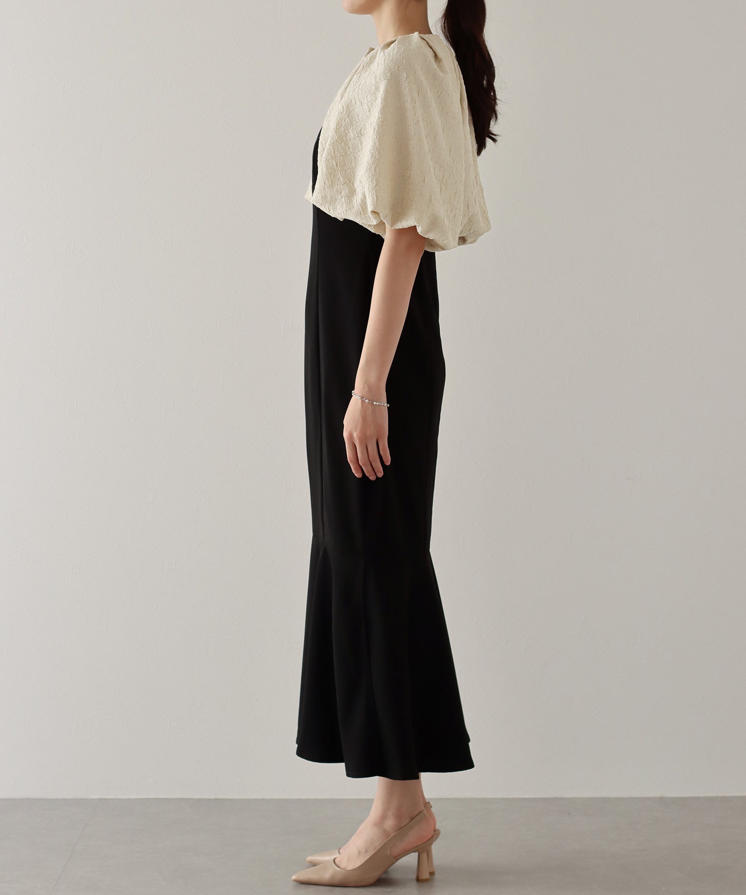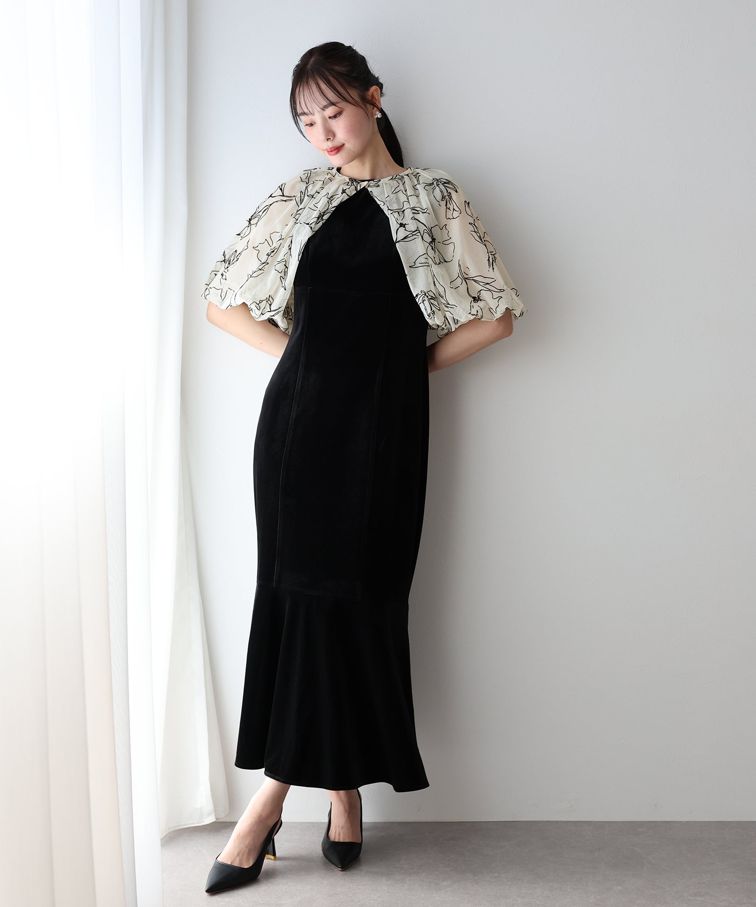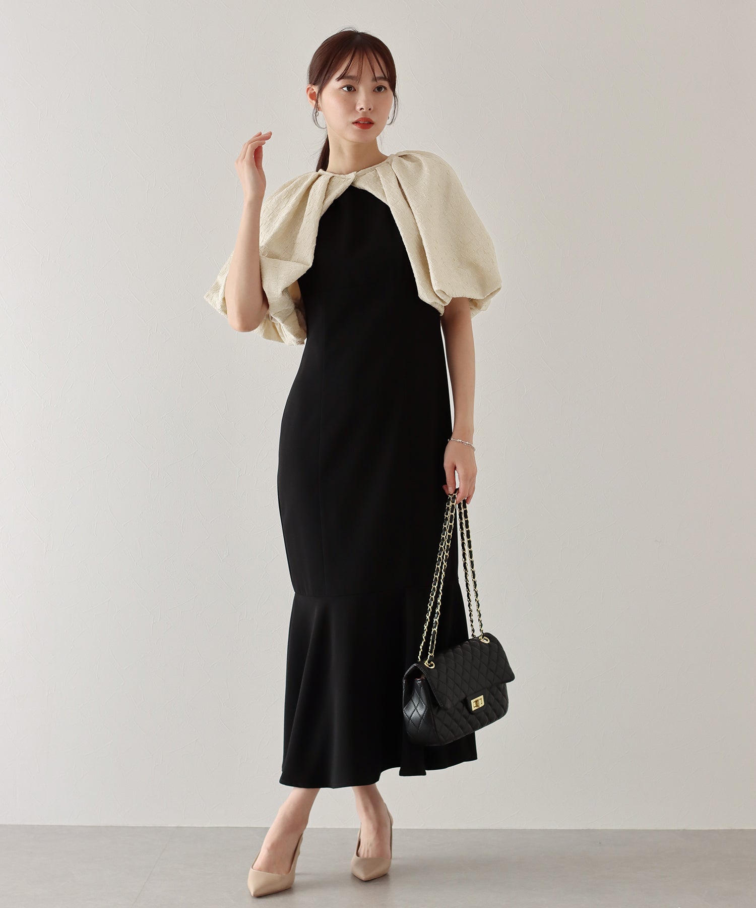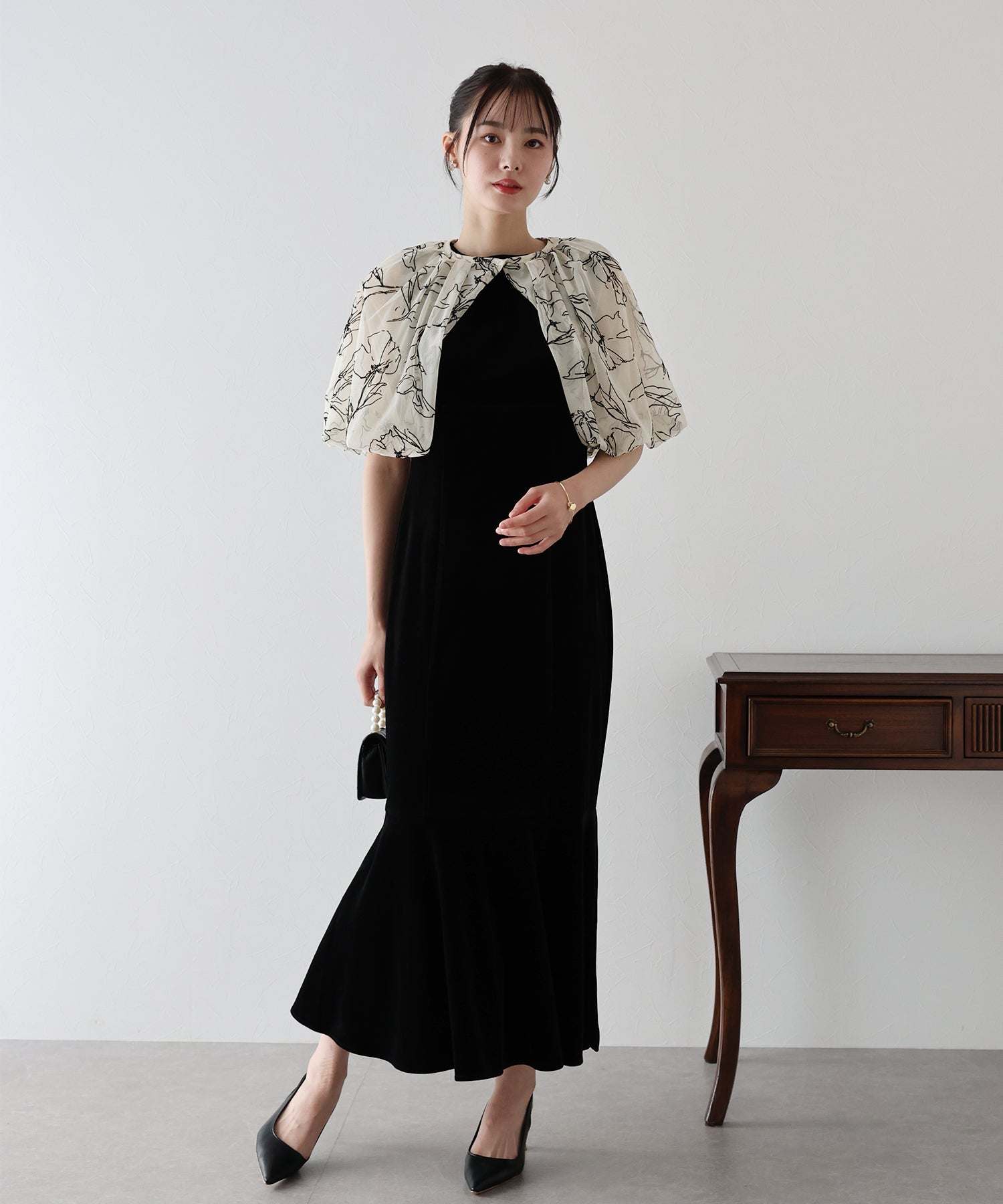 ジャガードケープとラインの美しさが際立つノースリーブマーメイドドレスがセットになったパーティーワンピース?結婚式ワンピース