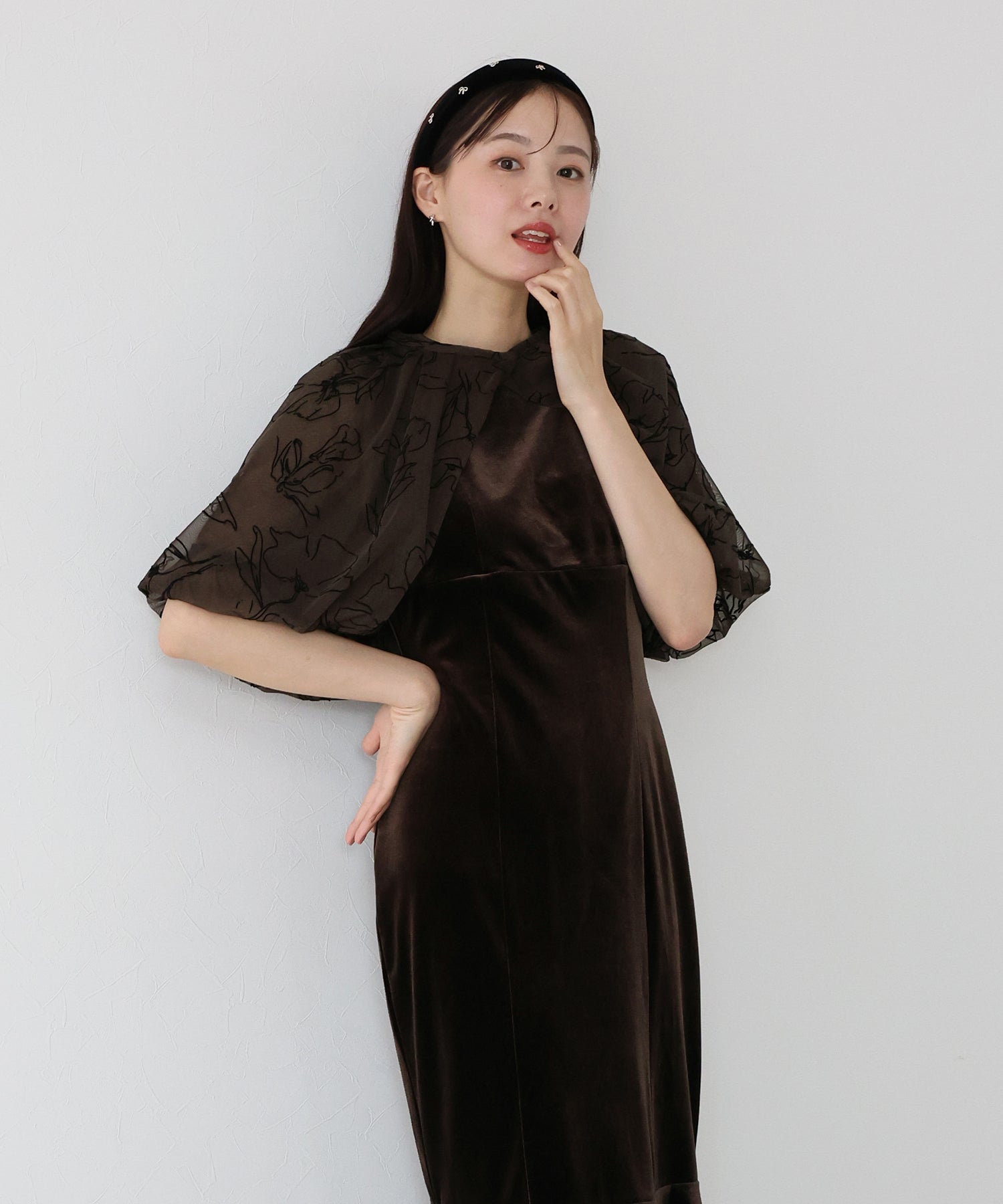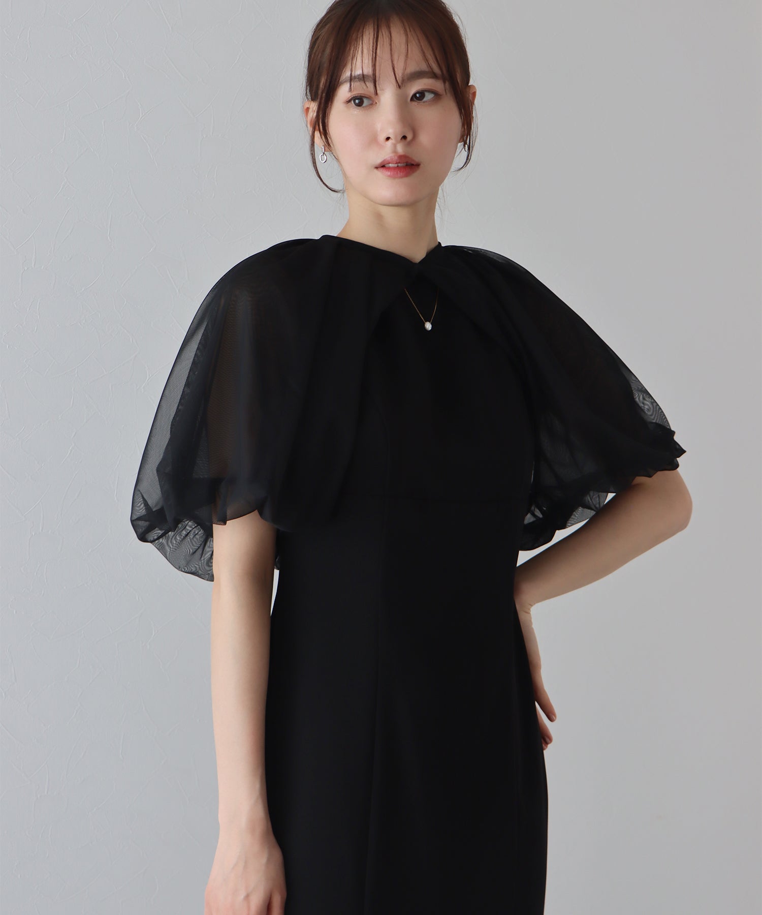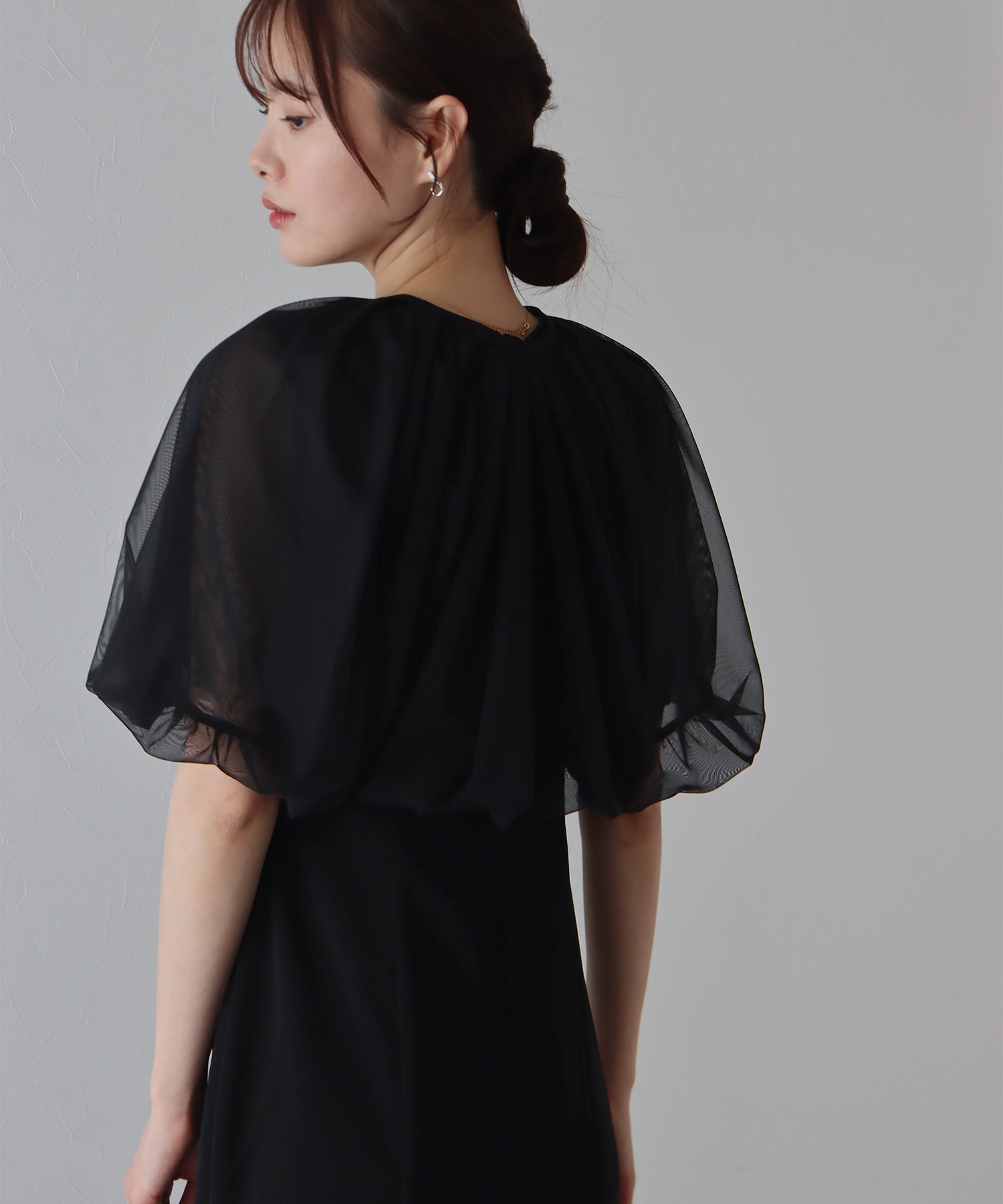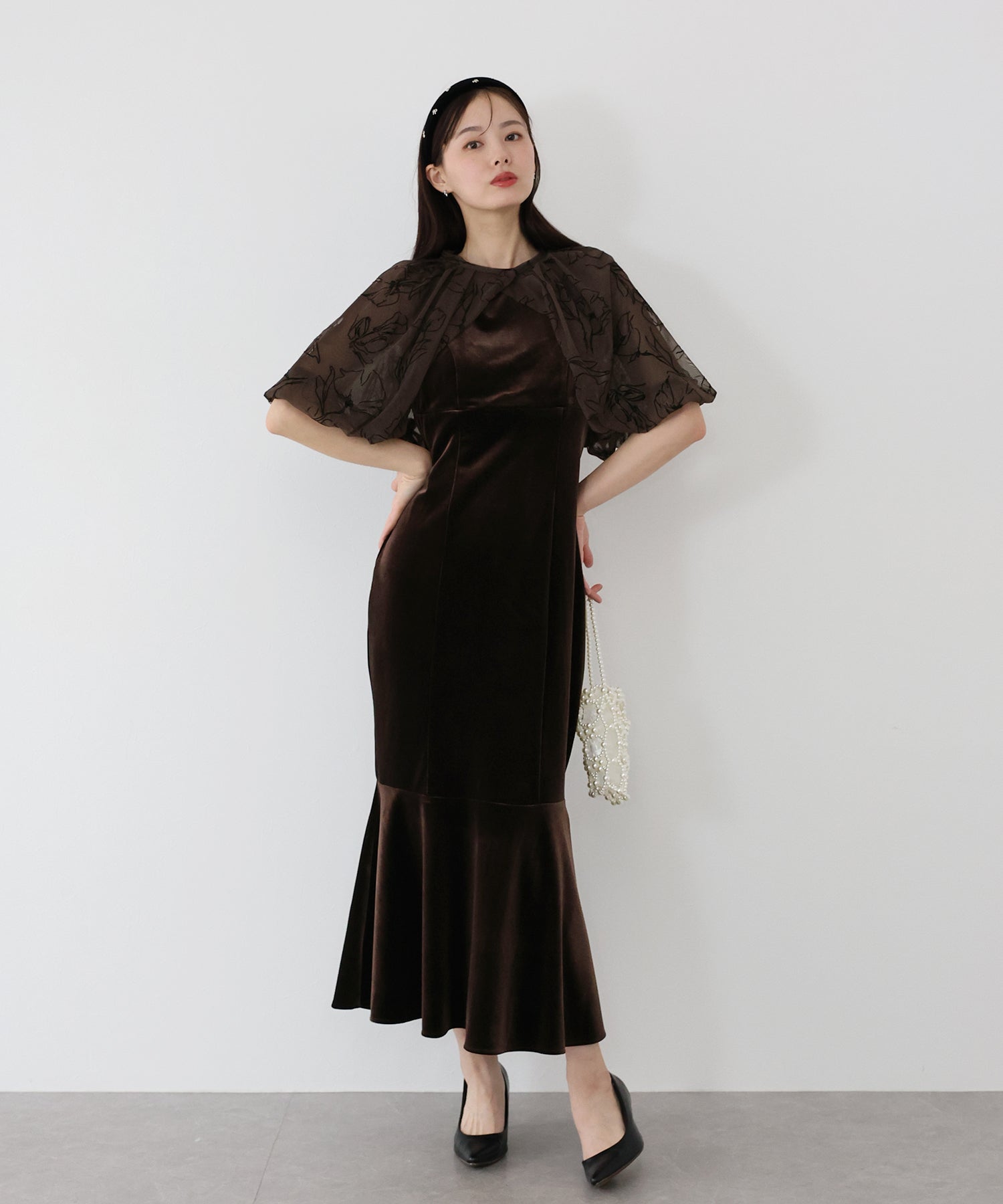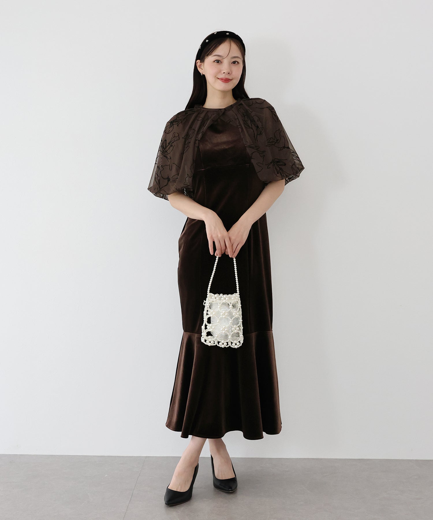 ジャガードケープとラインの美しさが際立つノースリーブマーメイドドレスがセットになったパーティーワンピース?結婚式ワンピース