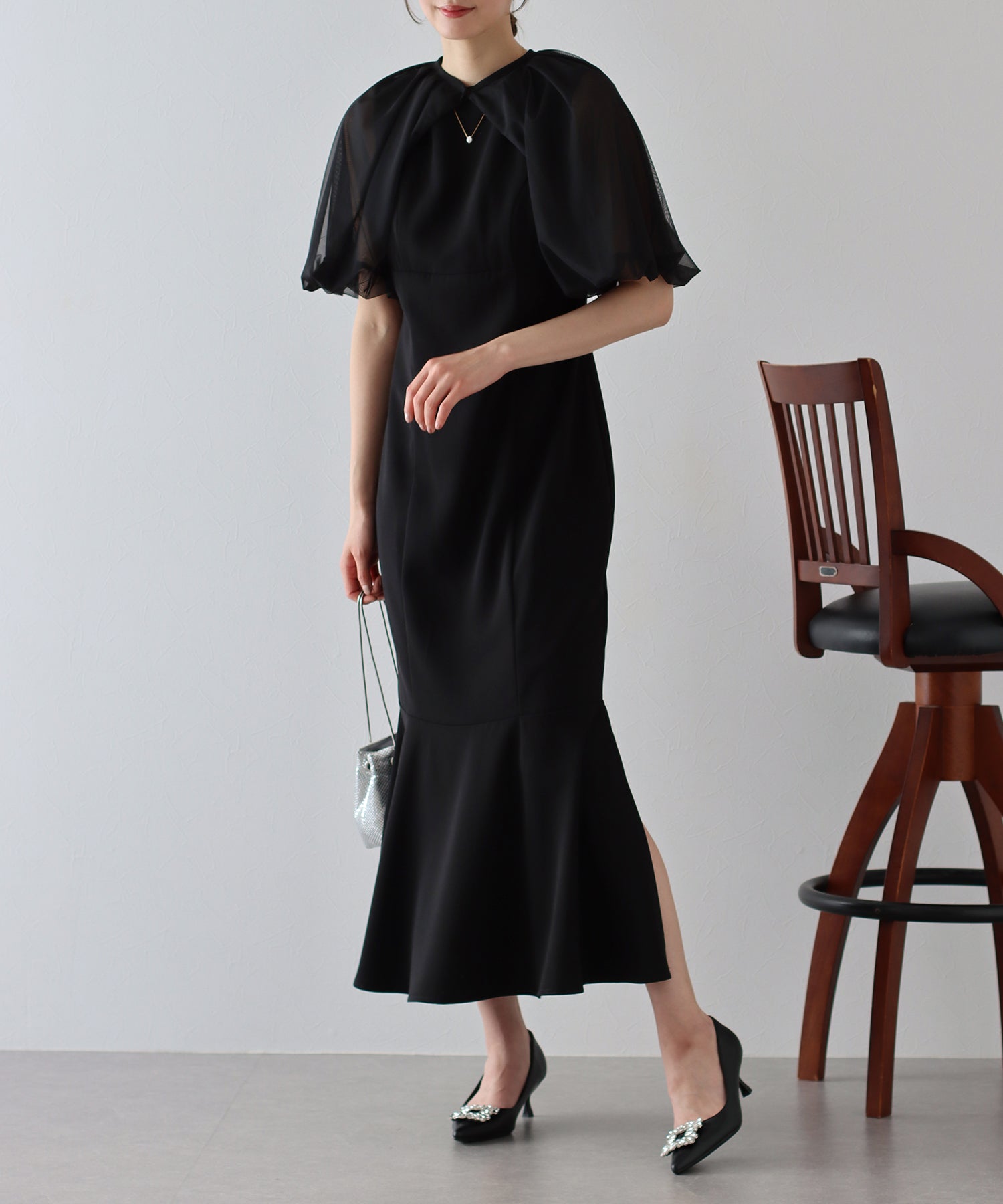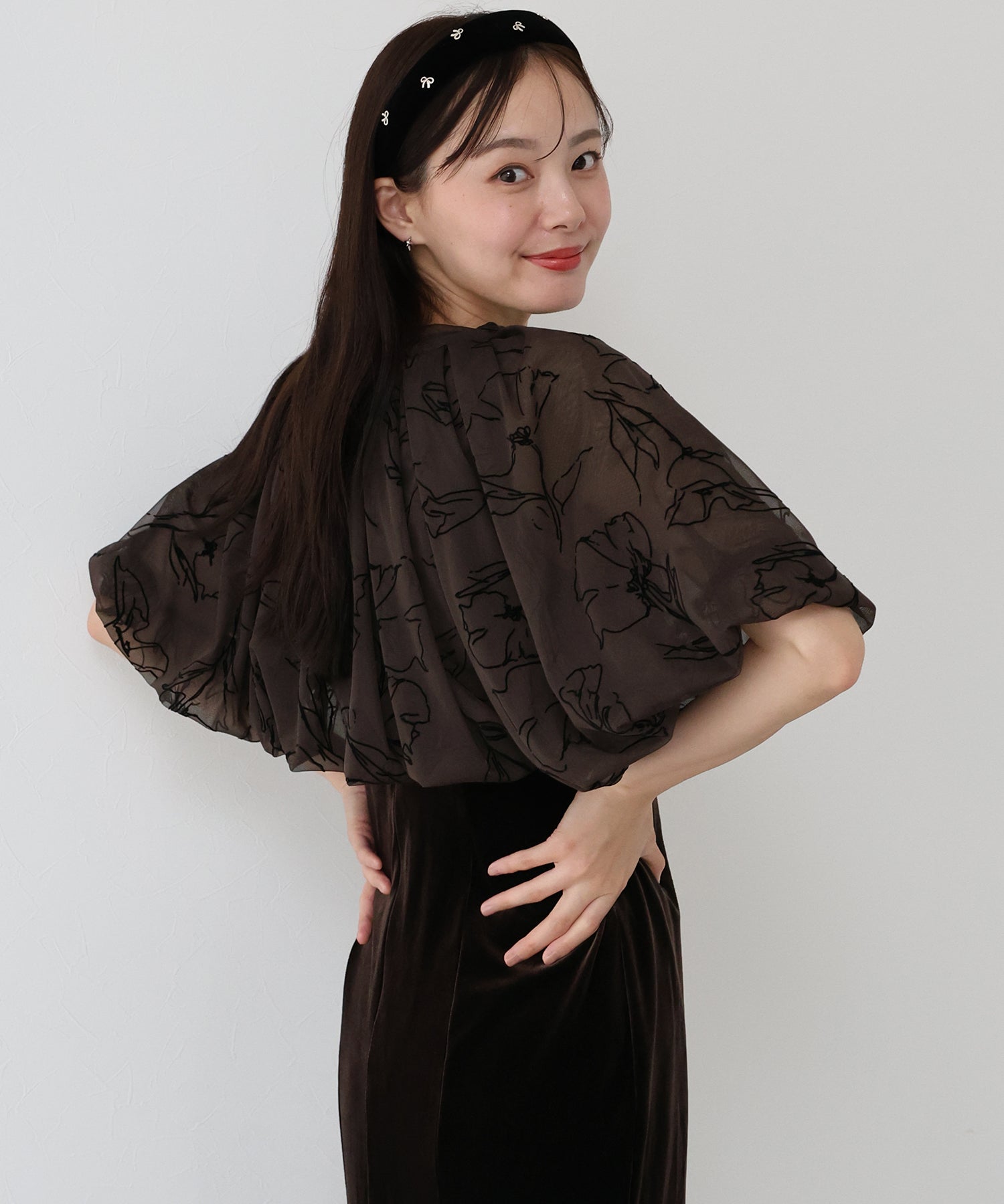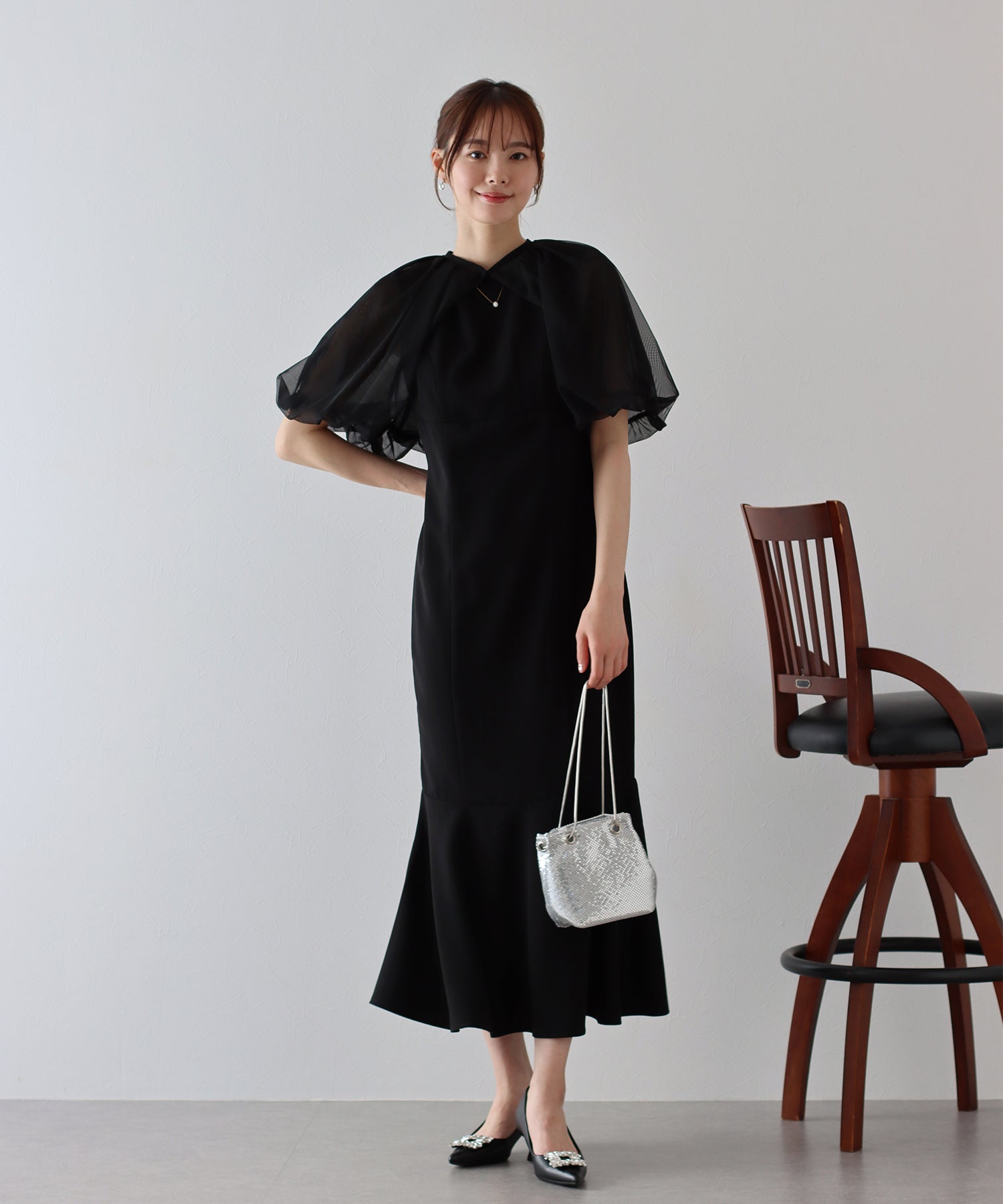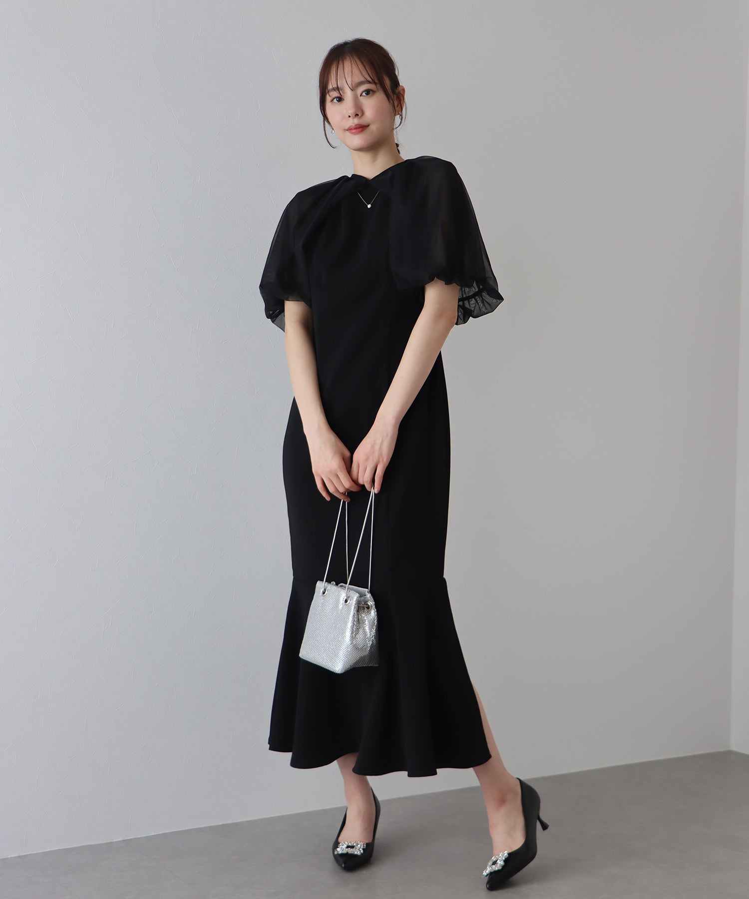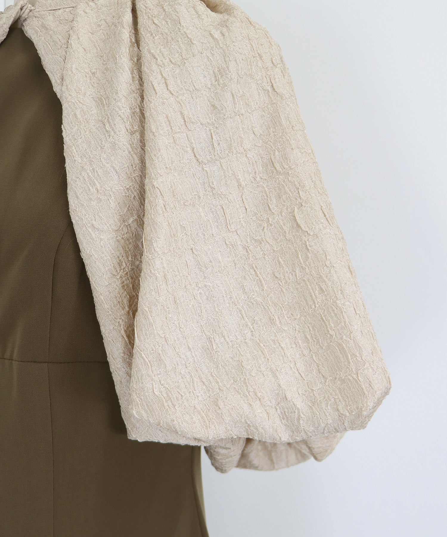 ?POINT バルーン袖が目を惹くショート丈のボレロとワンピースのシルエットでメリハリがつきすっきり見えるパーティードレス。 セット使いでも、単品使いもできるマルチウェイで使えるセットアップ。