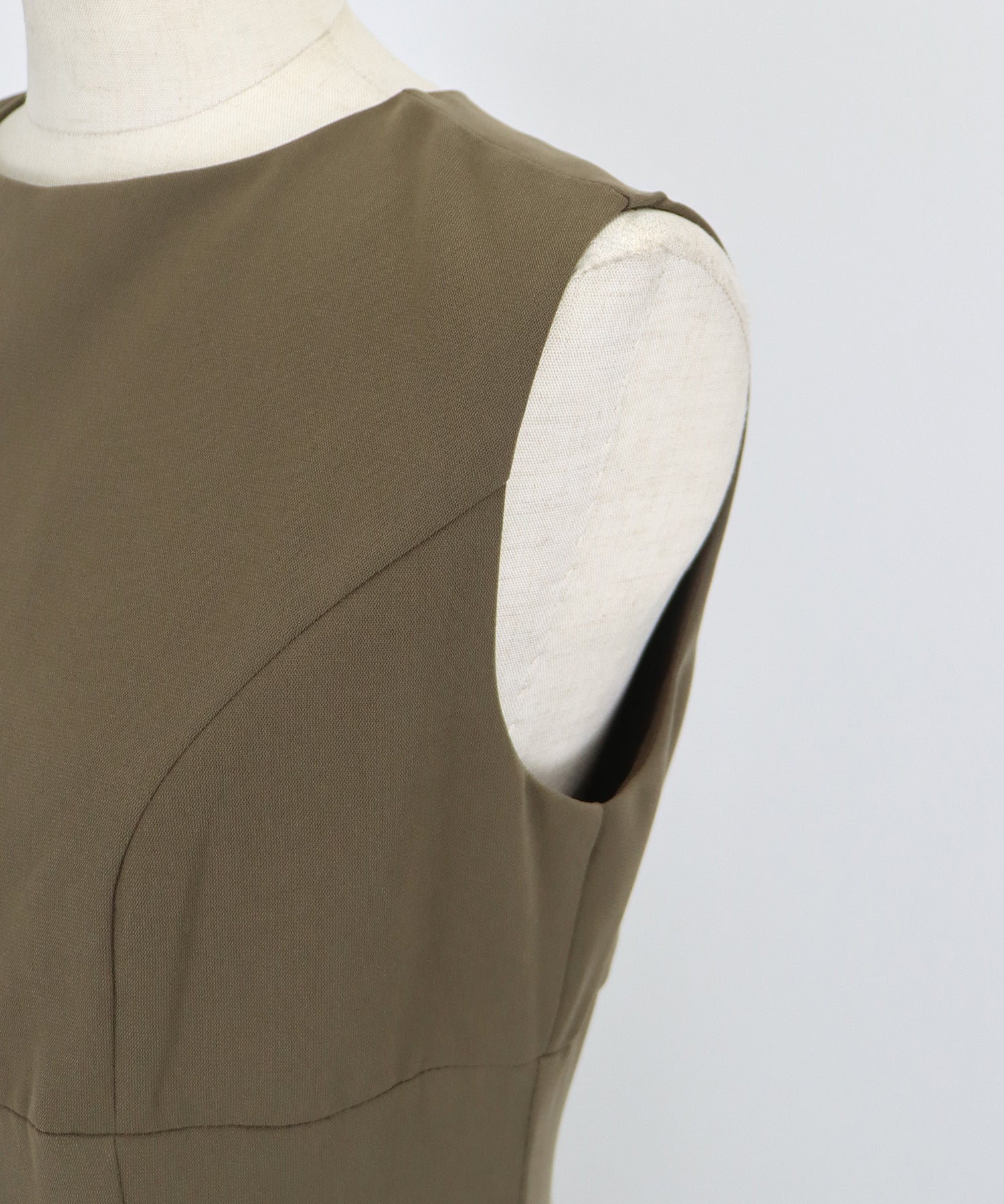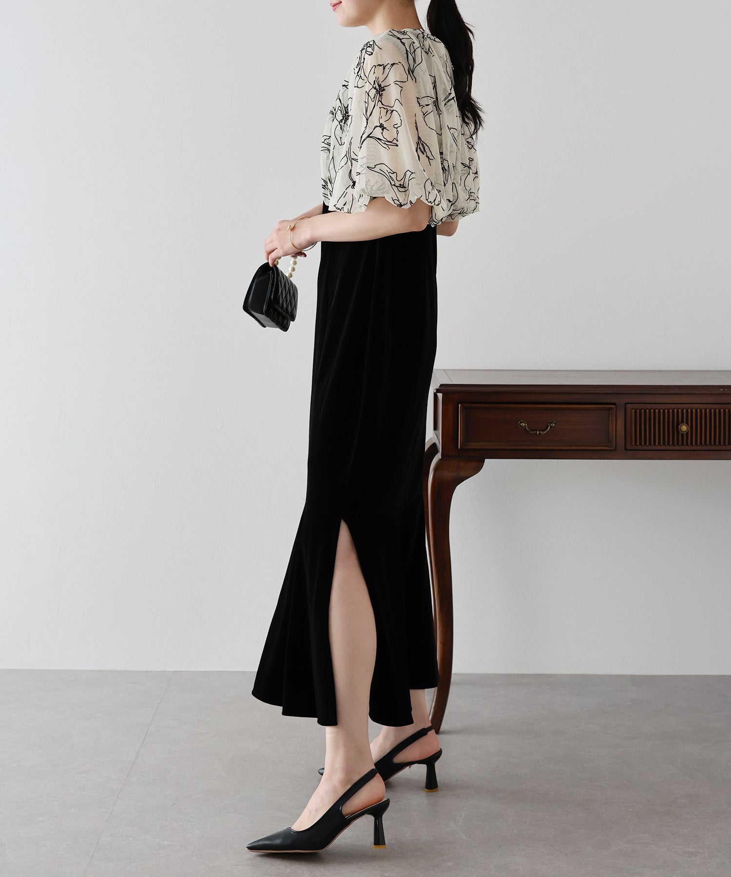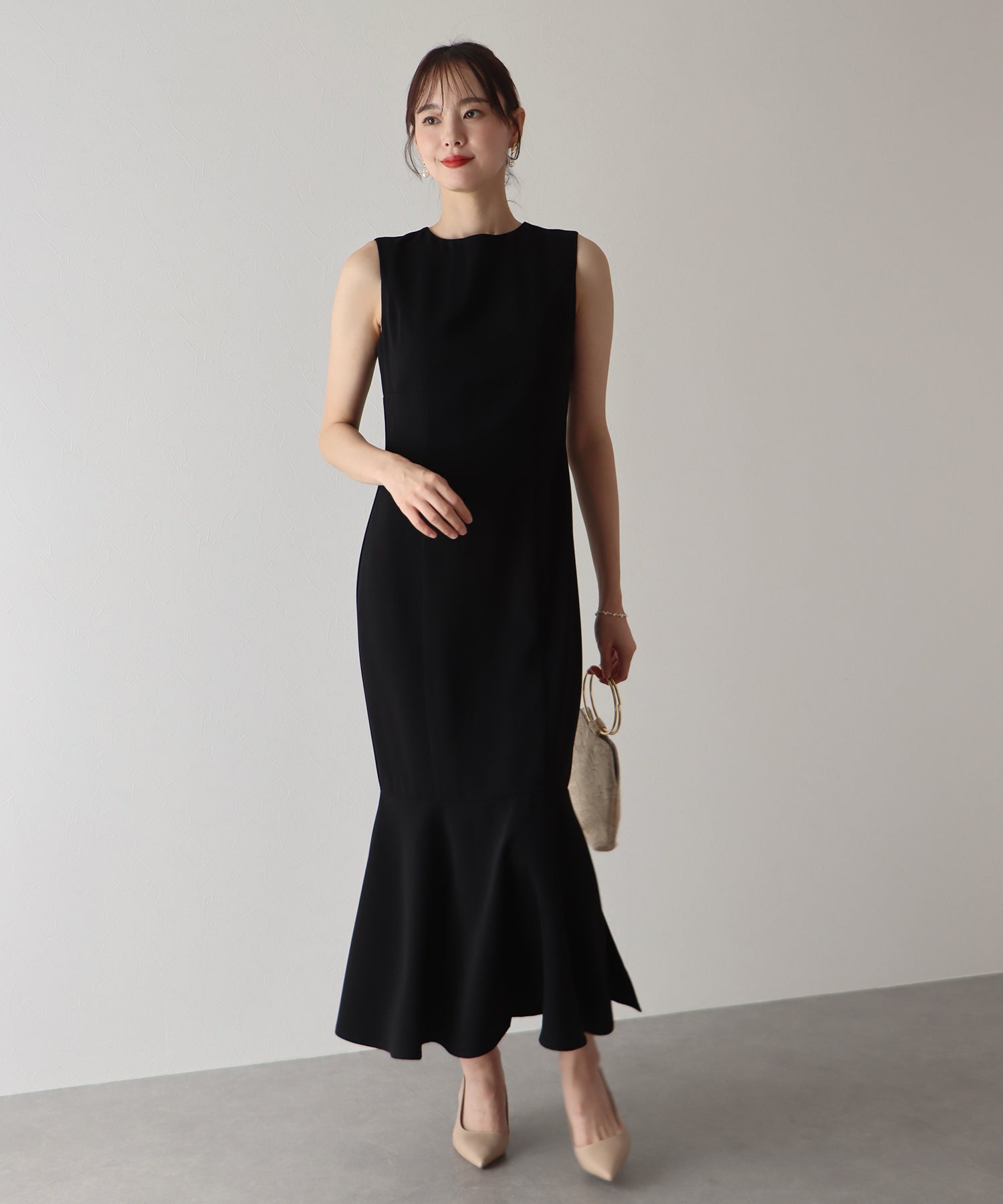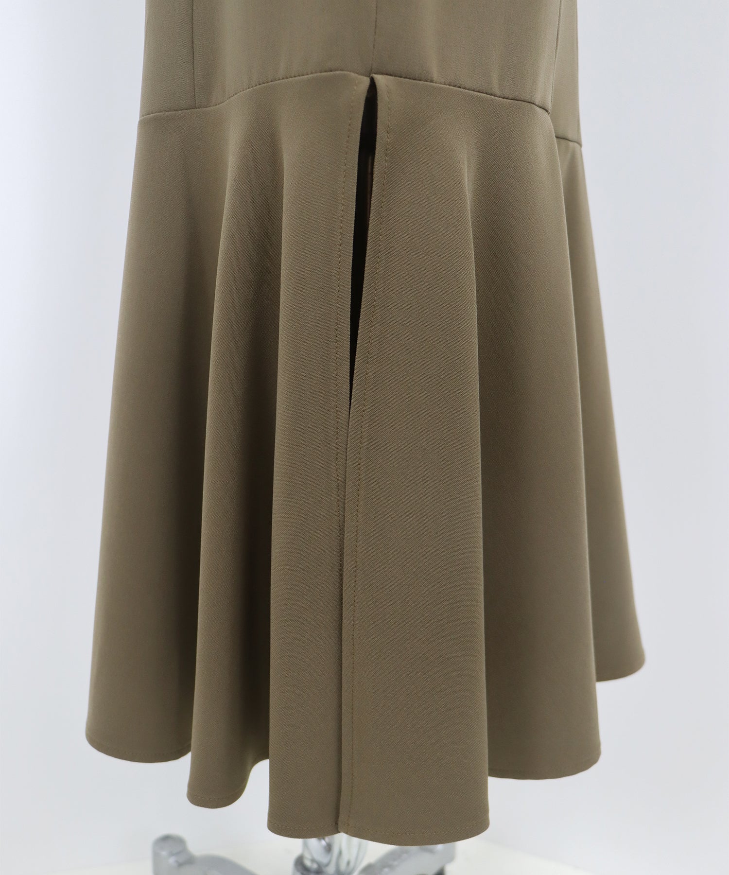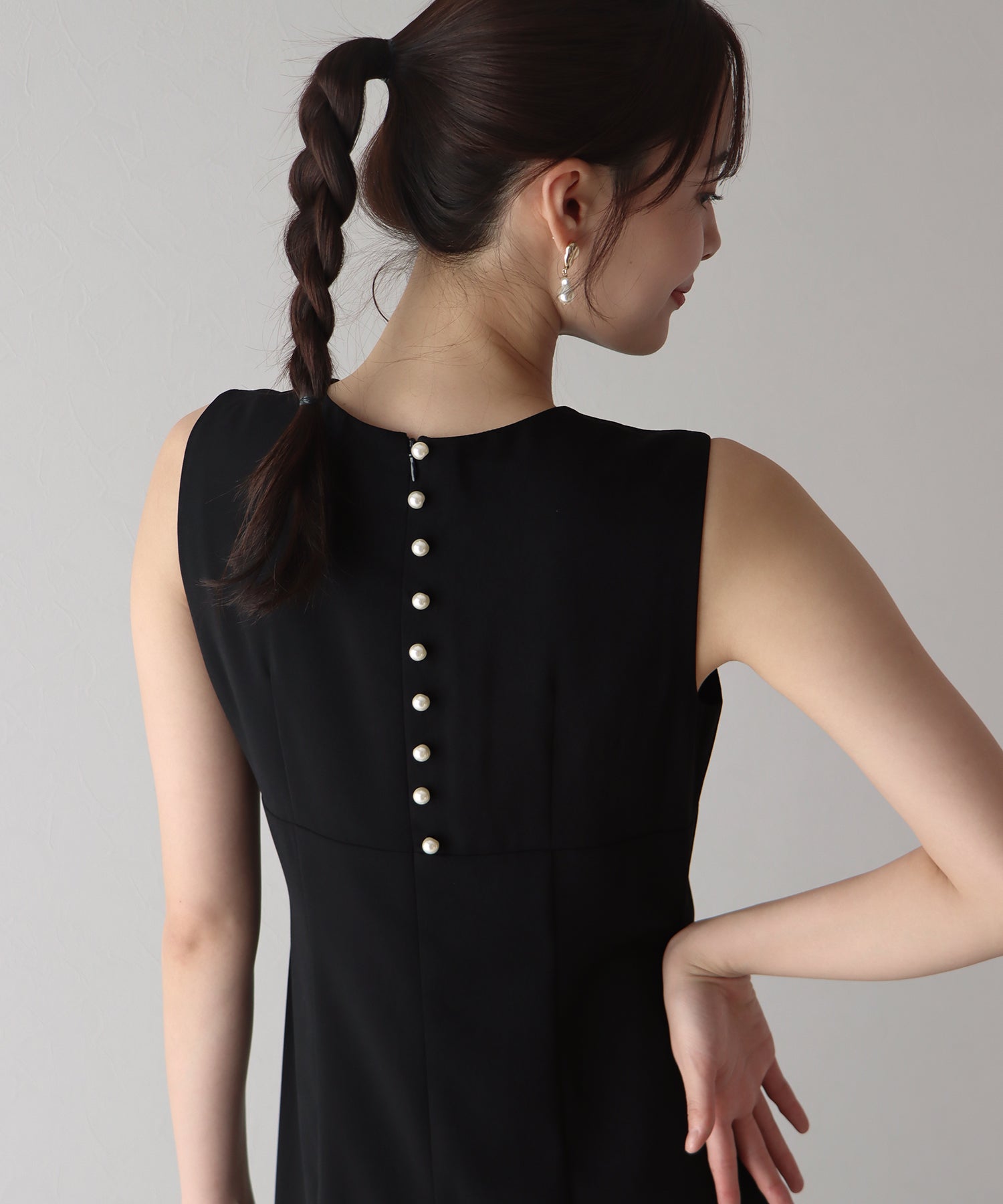 【ワンピース】 マーメイドシルエット 片サイドスリット入り 背中に飾りパール釦 バックファスナー有り 裏地有り