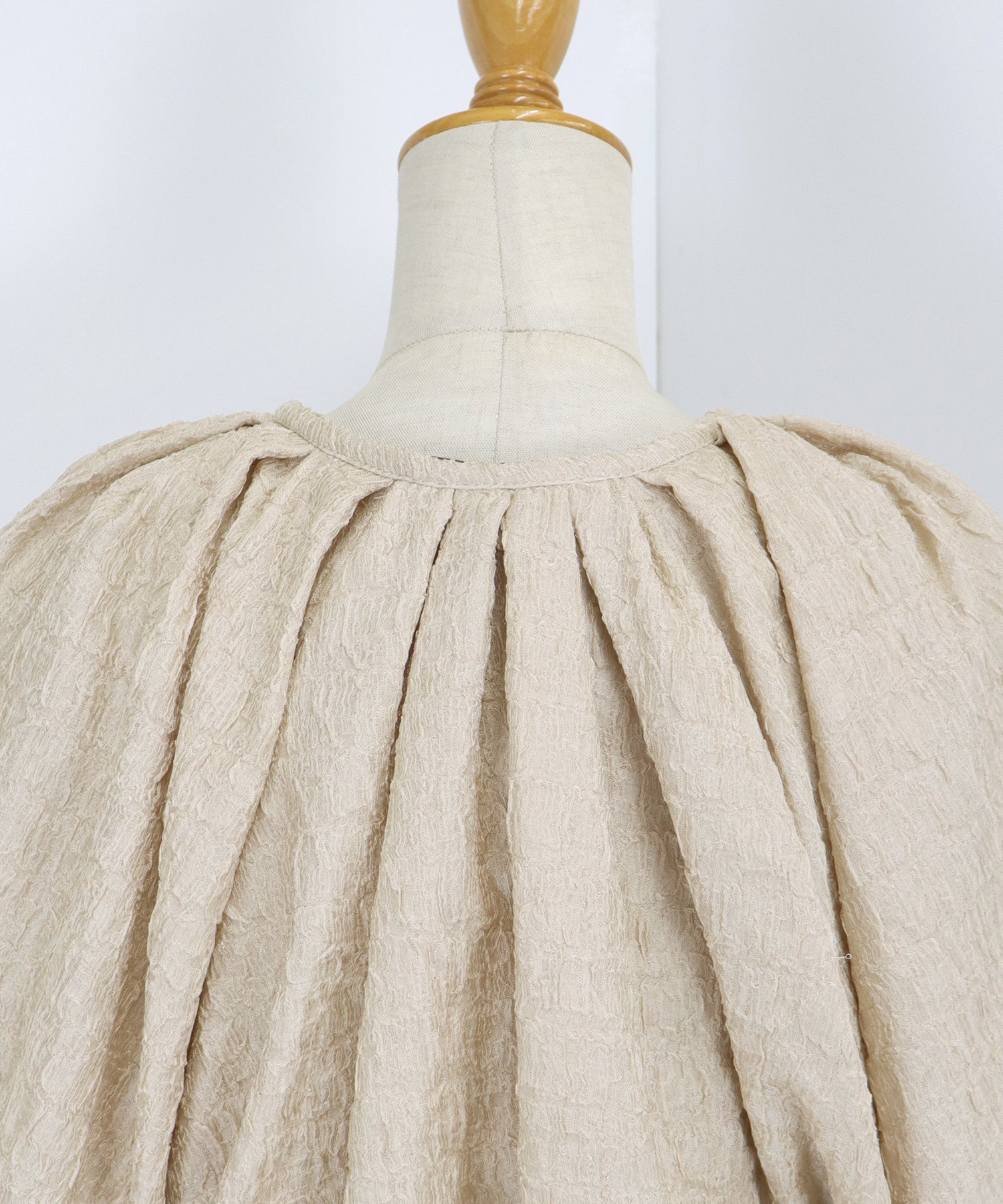 | 生地 | 【トップス】 ジャガード素材 【ワンピース】 インナーが響きにくい程よい厚さの微ストレッチ素材 厚さ:普通 透け感:なし 伸縮性:なし |