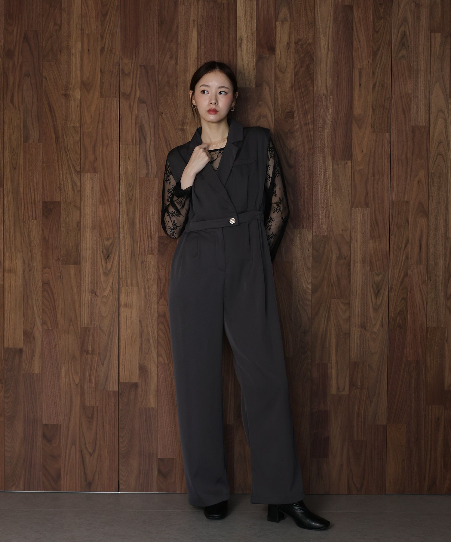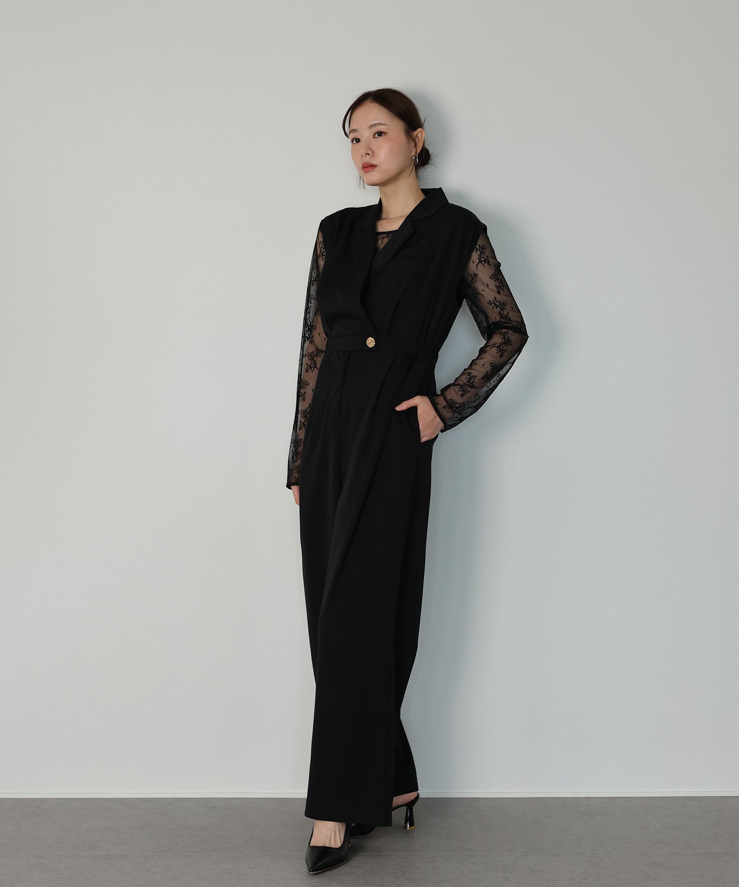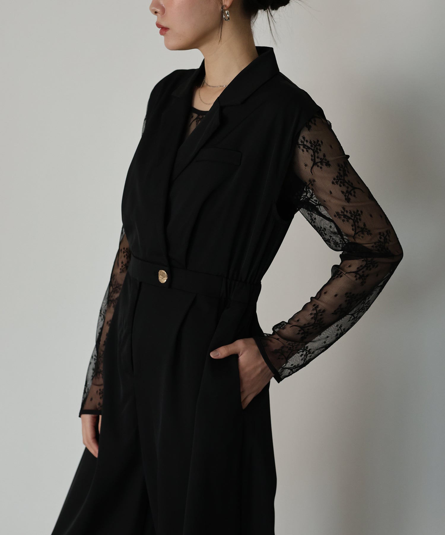 テーラードデザインのマニッシュなパンツドレスセット