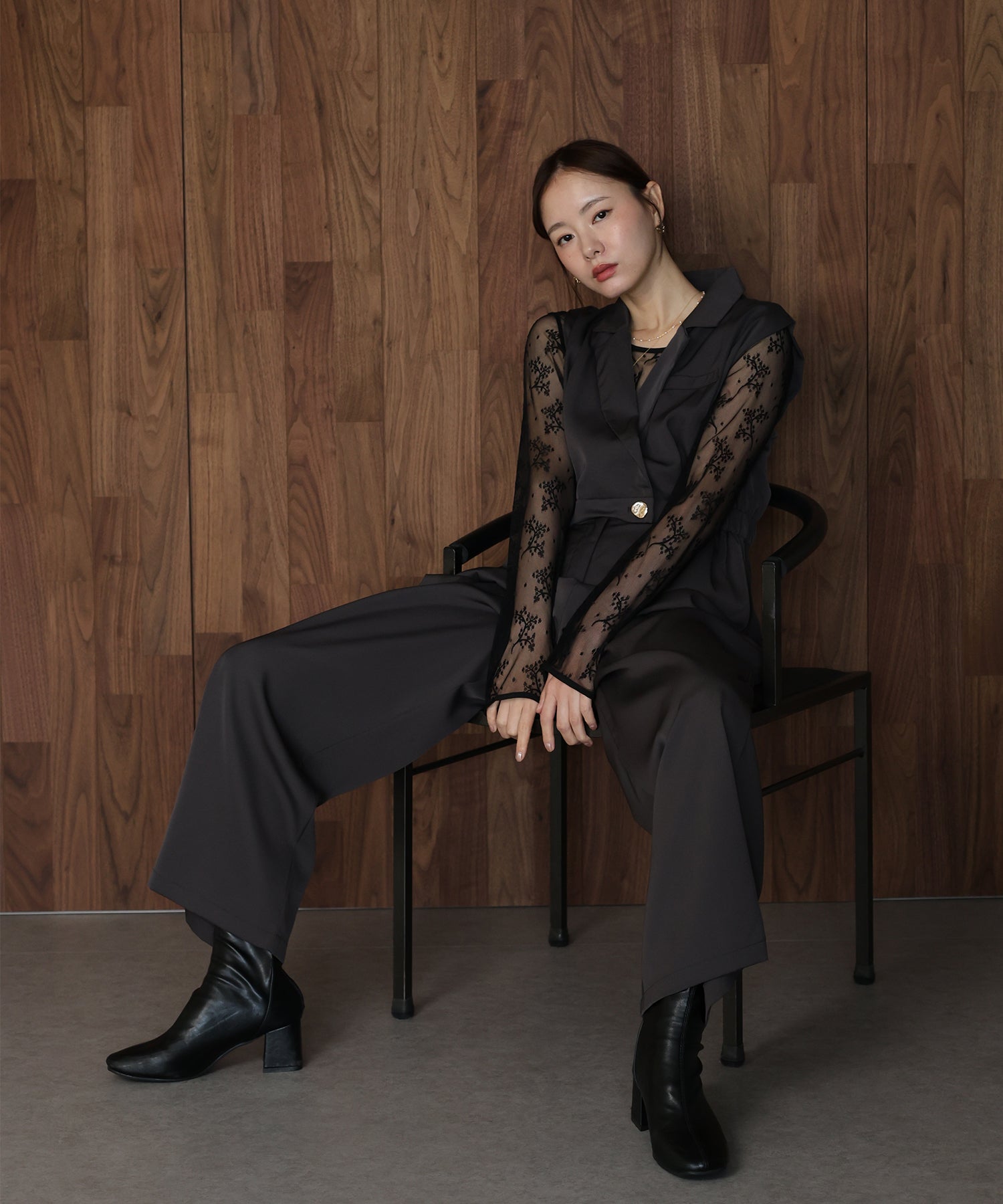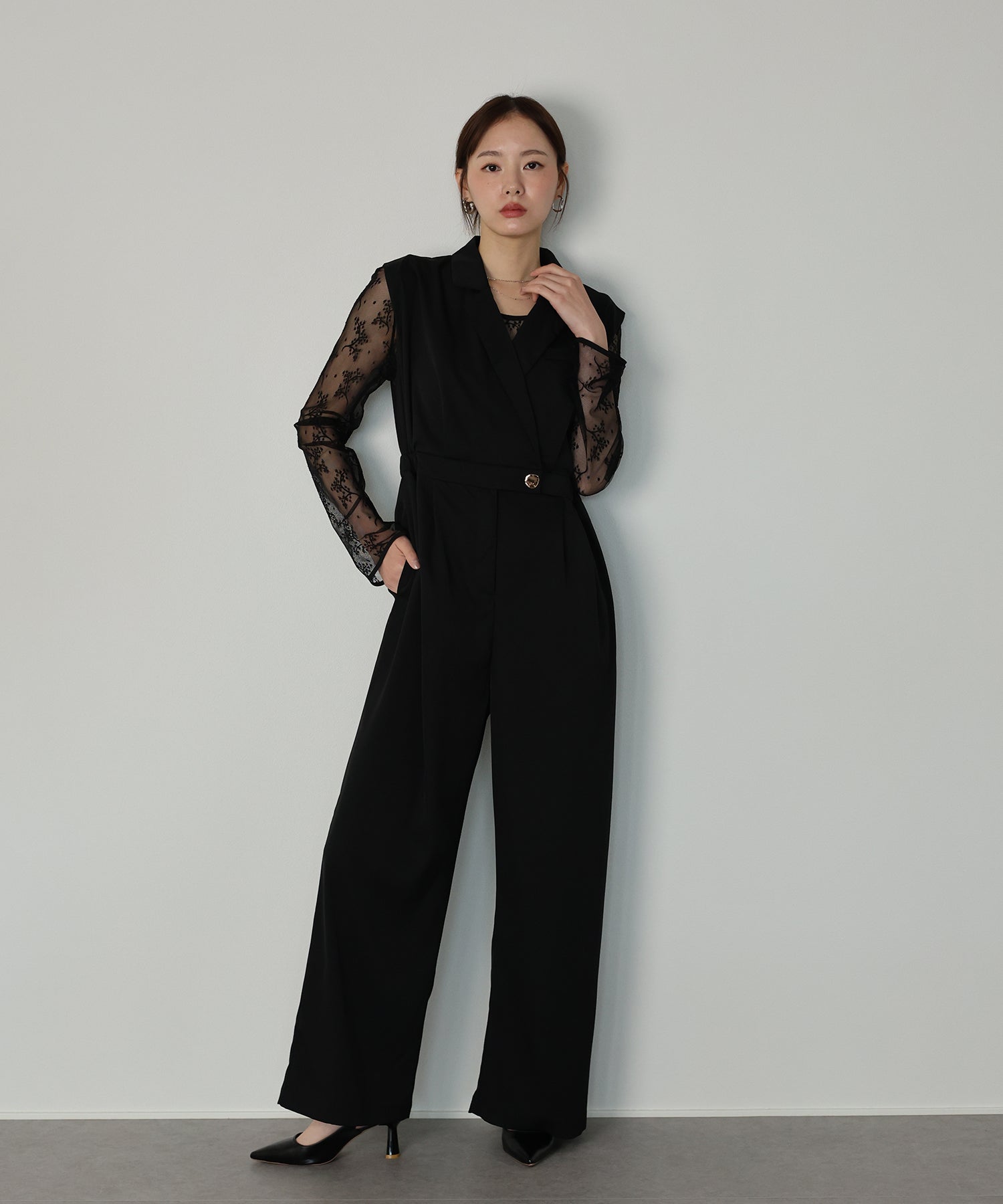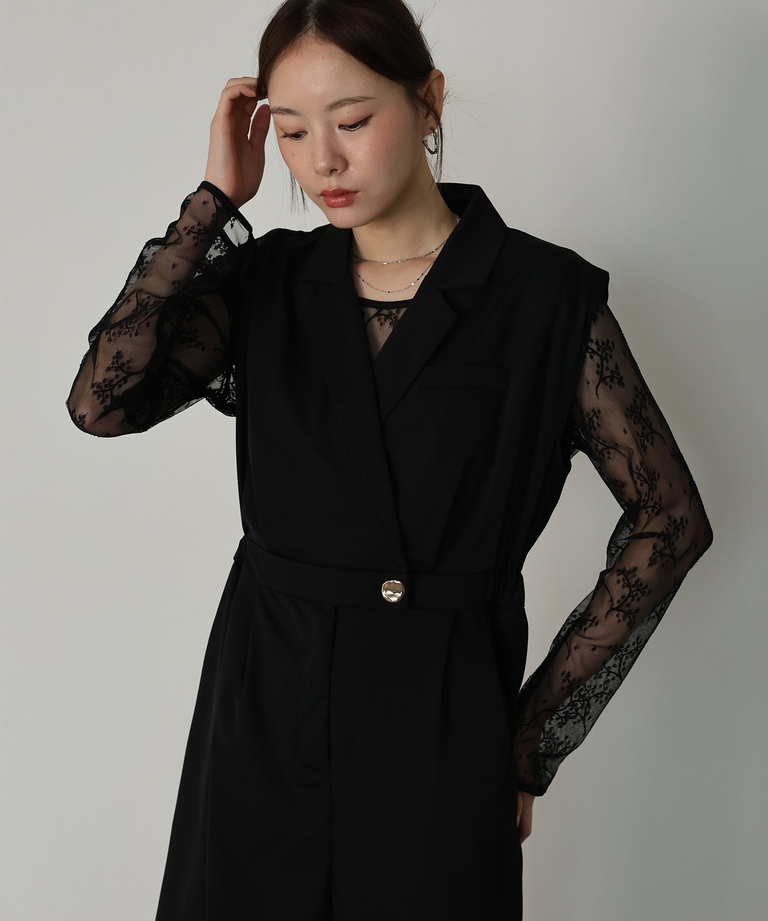 テーラードデザインのマニッシュなパンツドレスセット