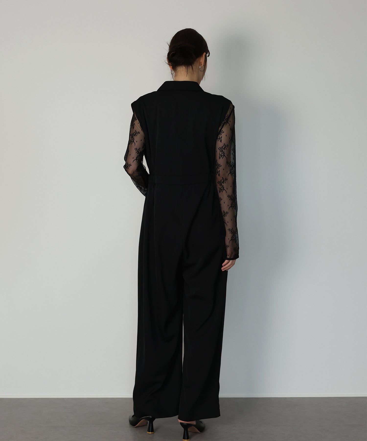 *パンツドレス 身幅:48.5/51.5 肩幅:40/42.5 ウエスト:74~/78~ ヒップ:117/122 股上:39.5/40 股下:66/69 もも周り:66/72 すそ周り:26/27.5