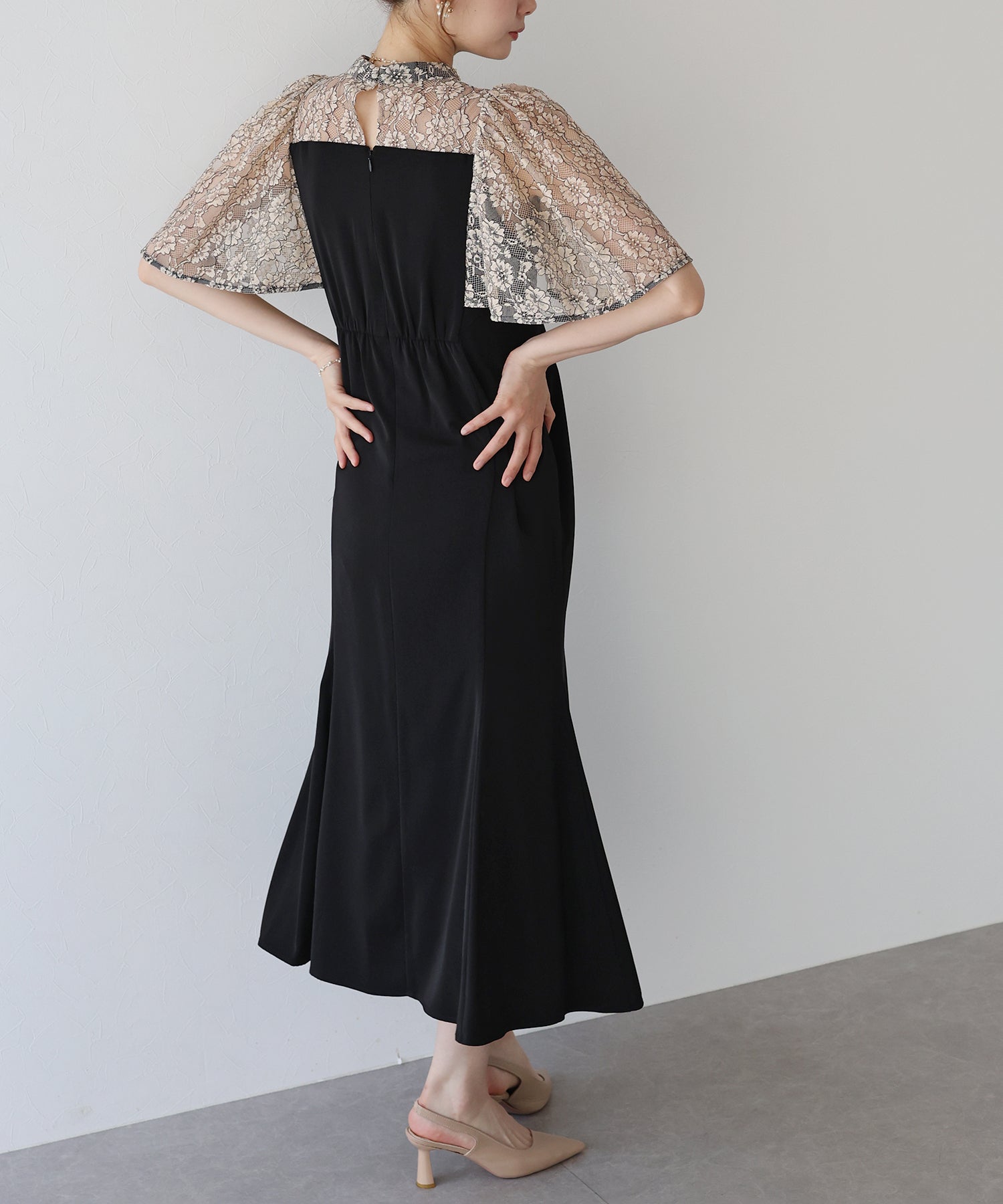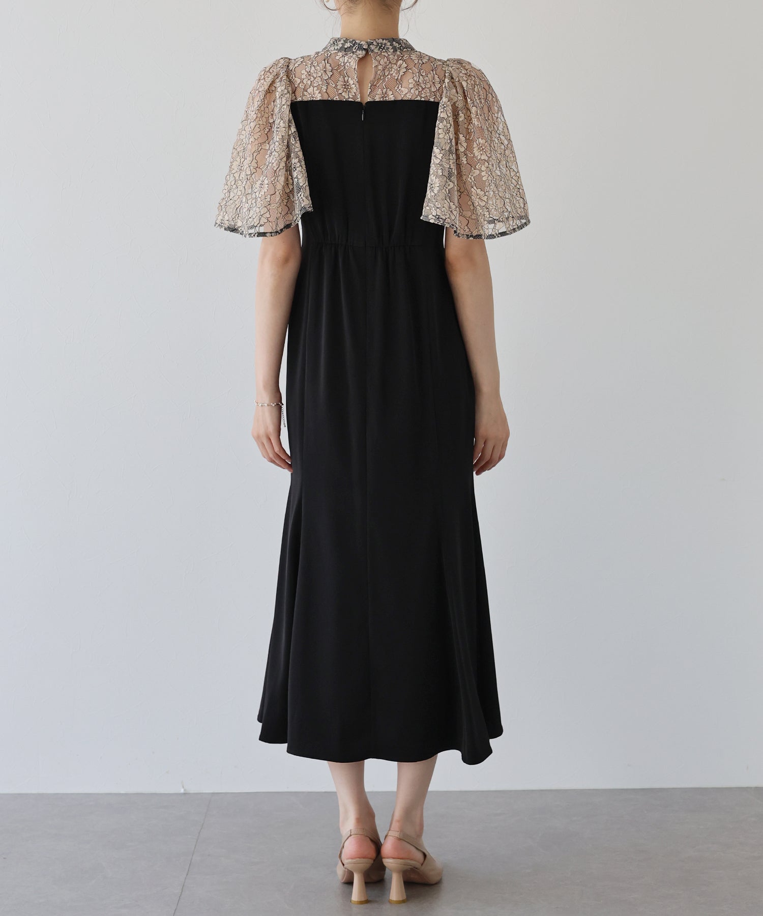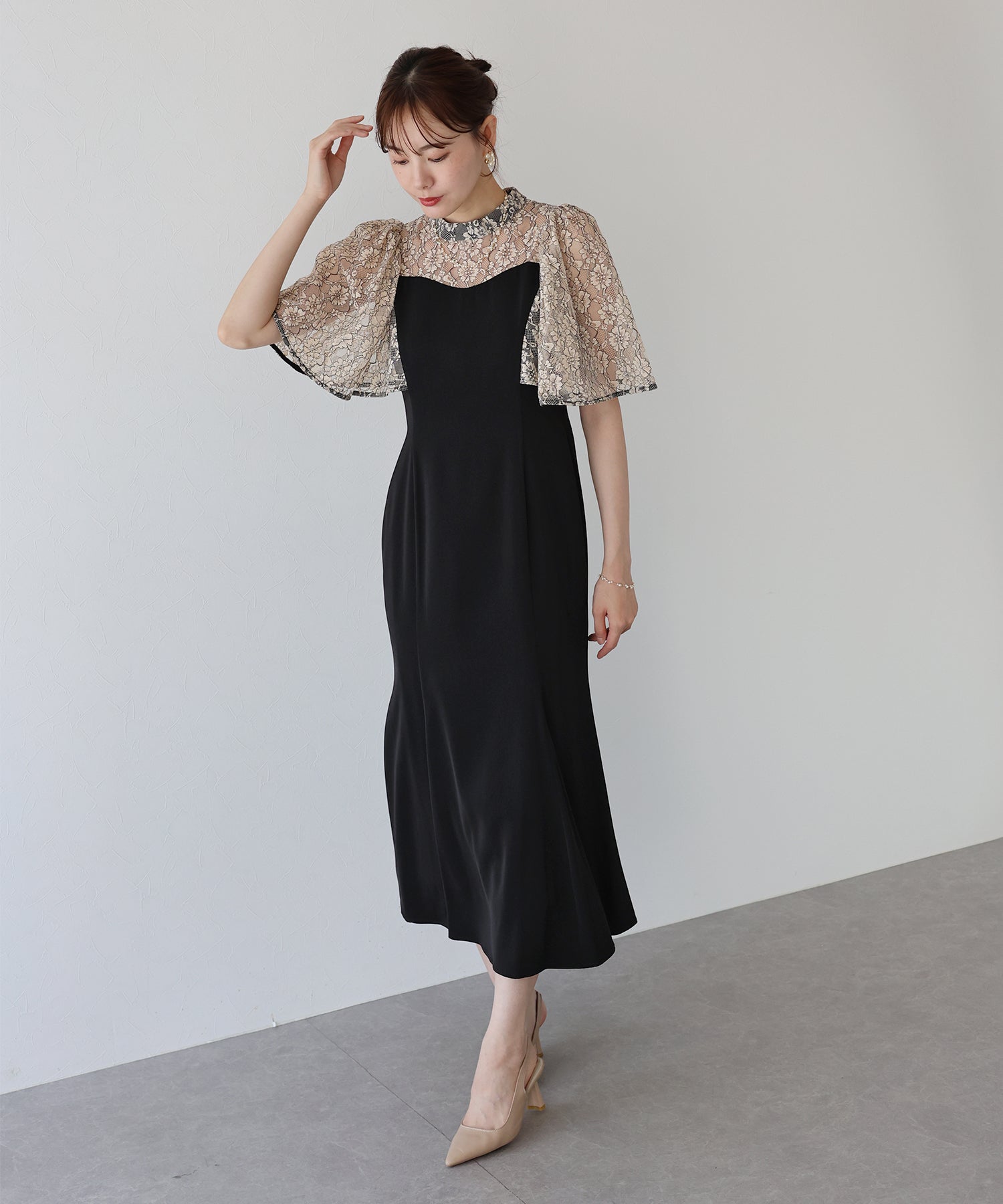 洗練された上品さを感じさせるボリュームフレアスリーブマーメイドドレス