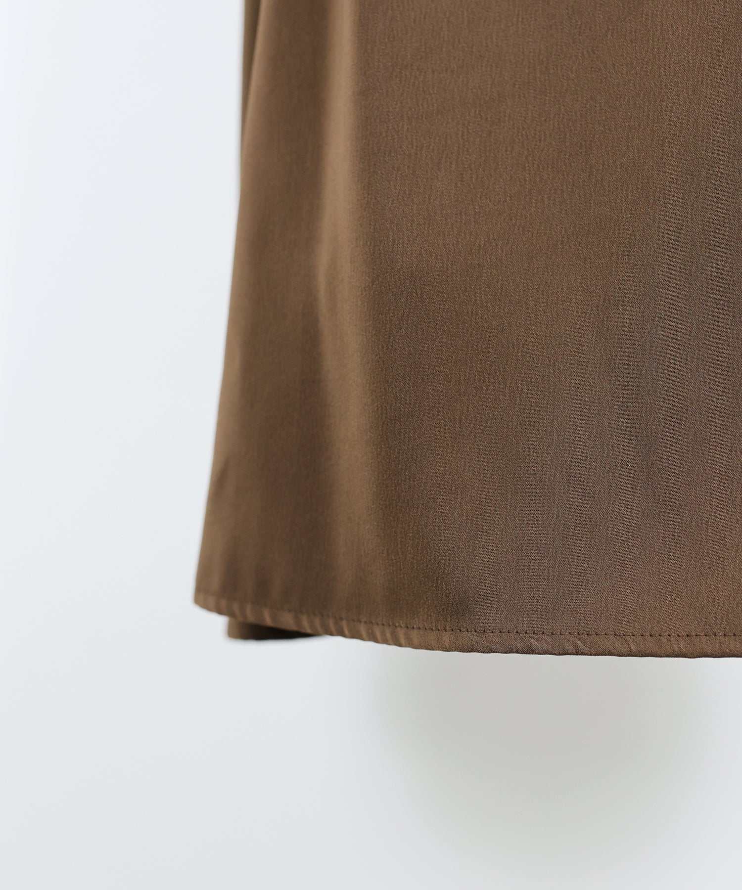 サテンは程よい厚みのあるとろみ素材が体のラインを拾い過ぎず、自然に沿ってくれるので華奢見せ効果も◎