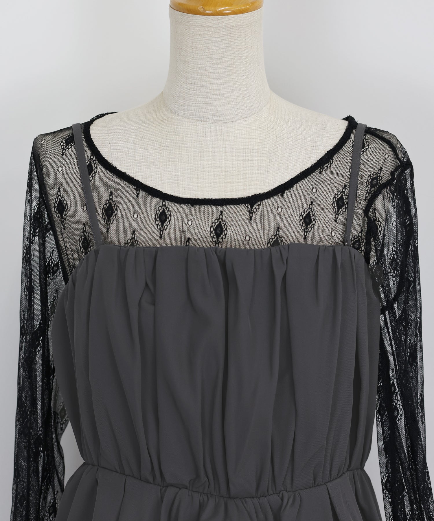 それぞれがセパレートになっているので、レーストップスをTシャツやキャミワンピにレイヤードしたり、ビスチェをTシャツやタートルに重ねたりと、カジュアルな着こなしにも応用可能。