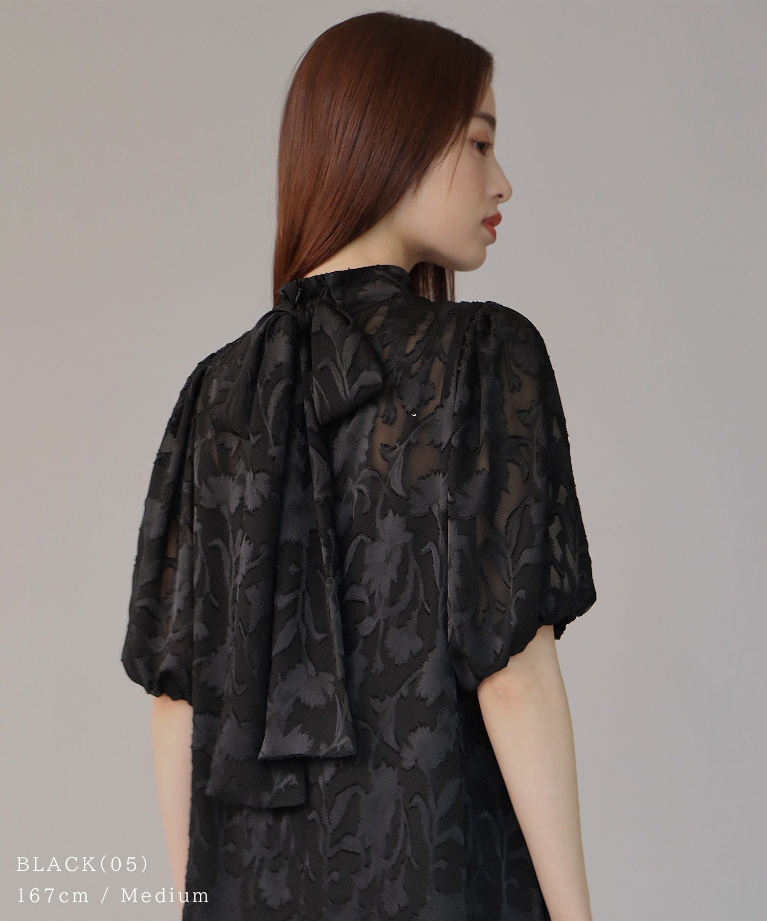 - インナー付きバックリボンジャガードドレス