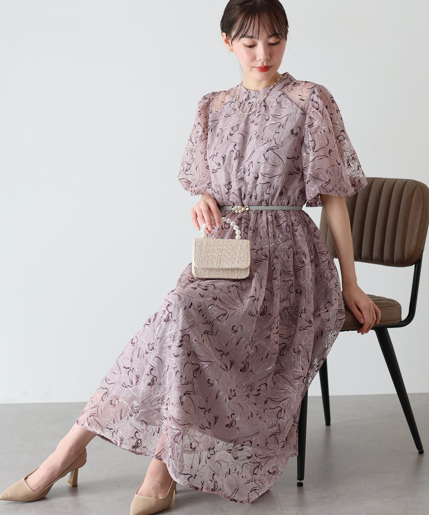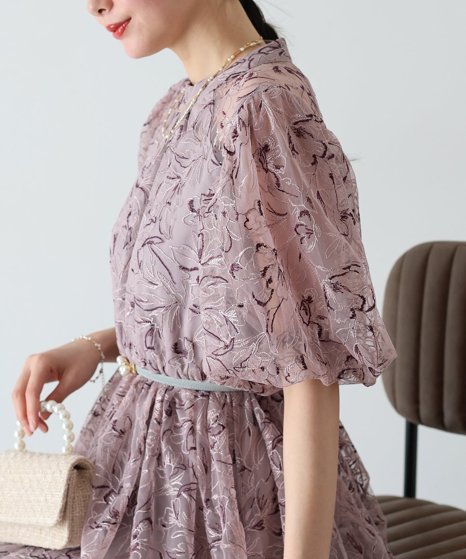 - 【SALE】バルーンスリーブレースドレス