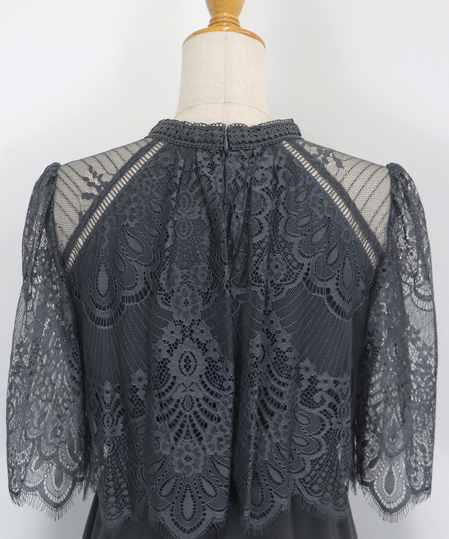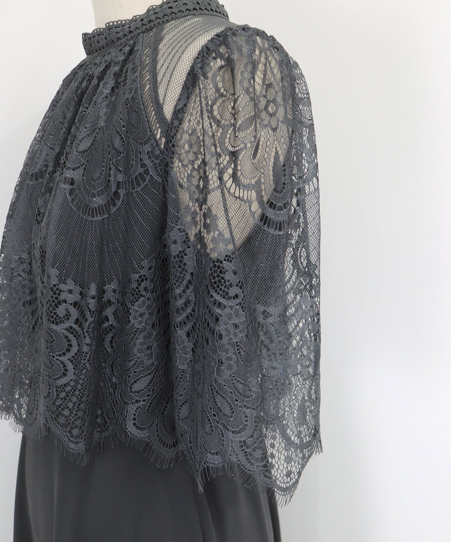 | 素材 | 表地 レース部分: ナイロン100%, レーステープ部分: ポリエステル100%, シフォン部分: ポリエステル100%, 裏地: ポリエステル100% |