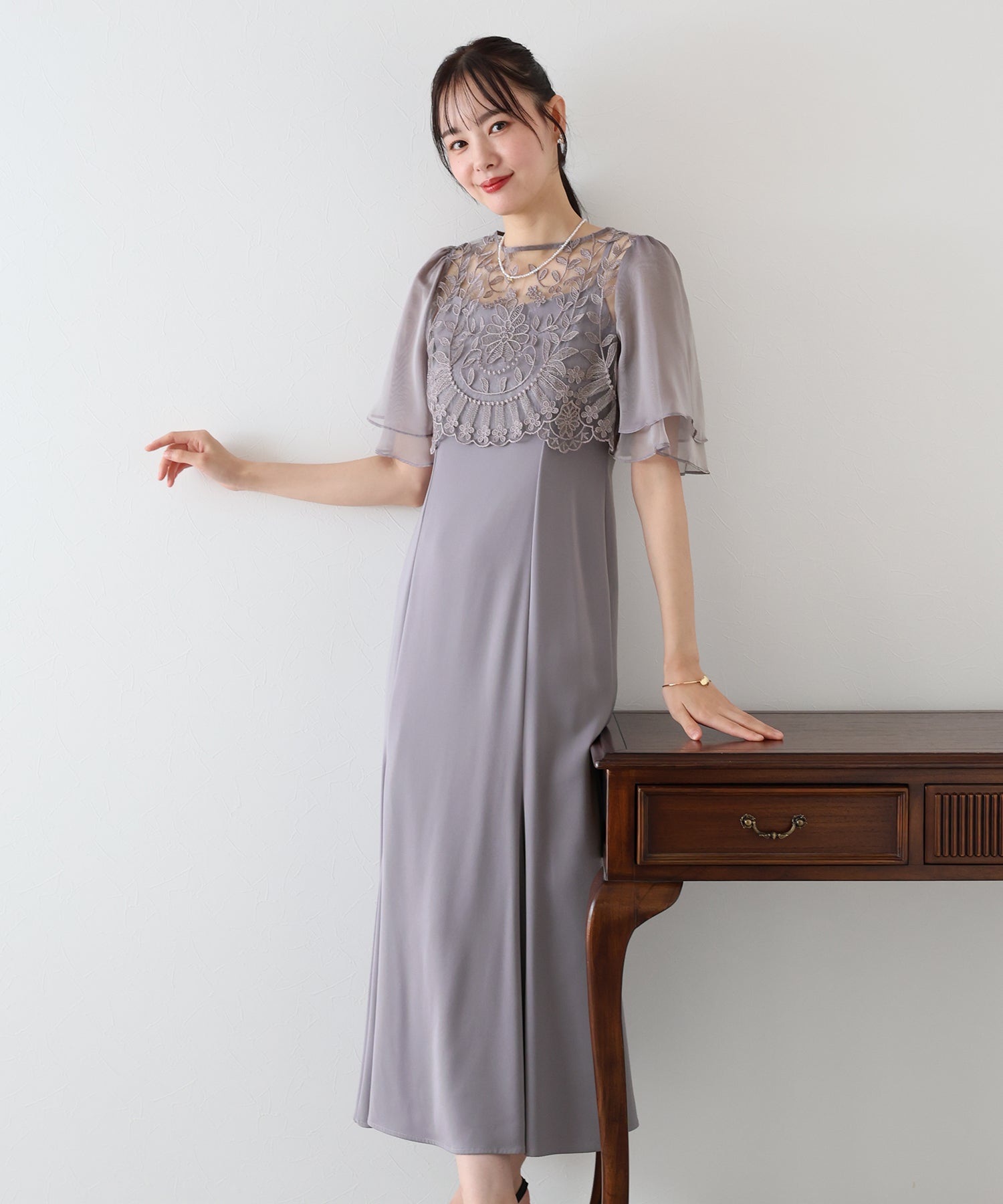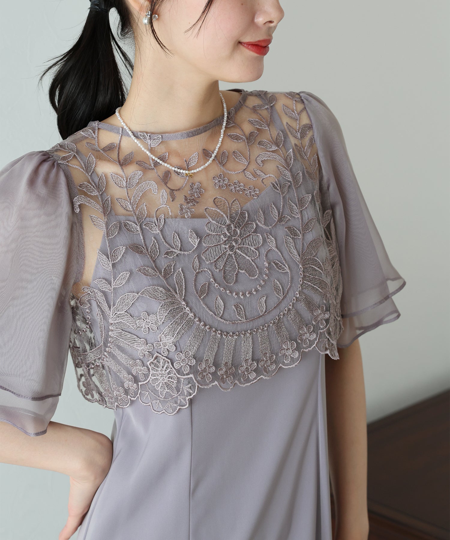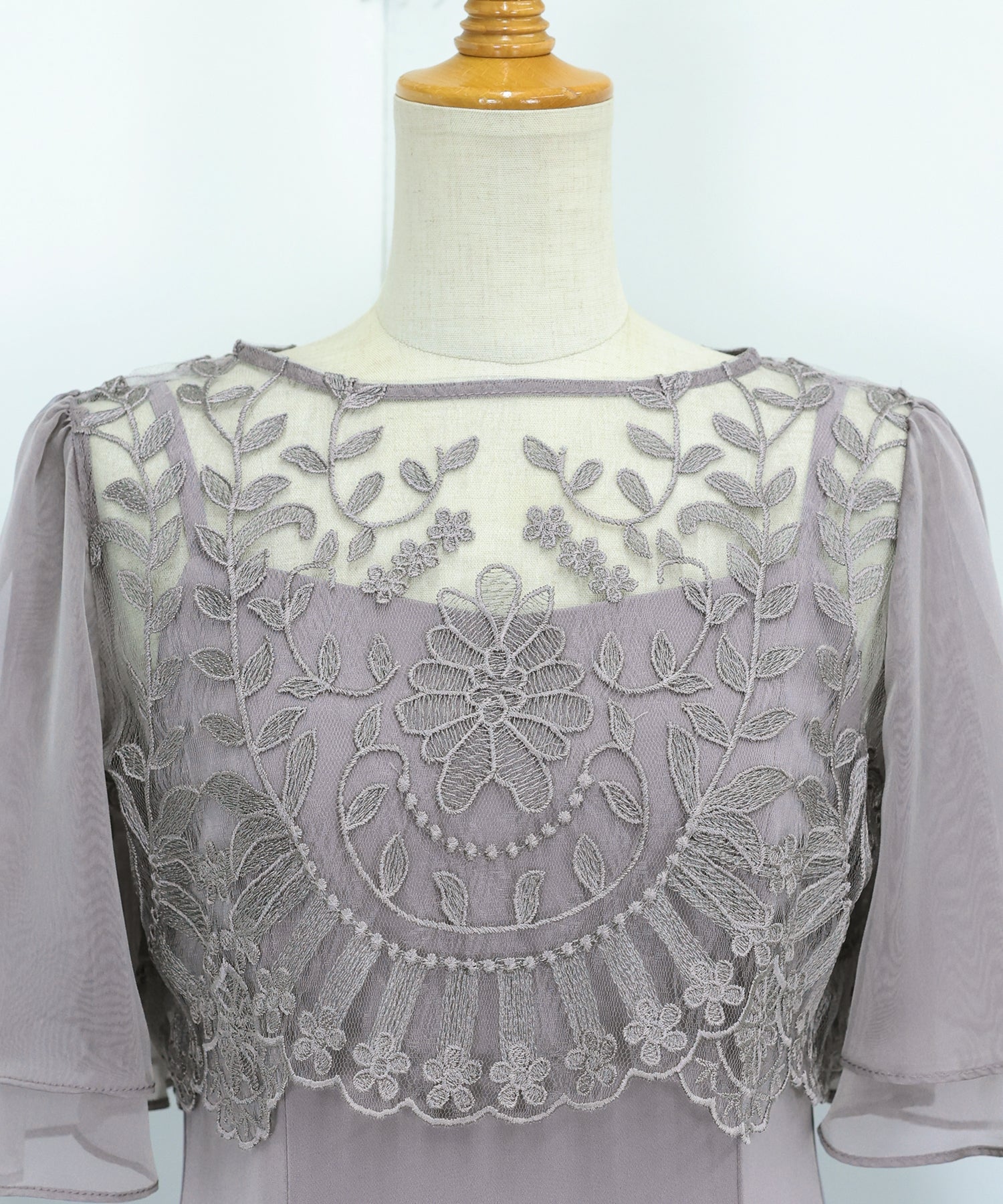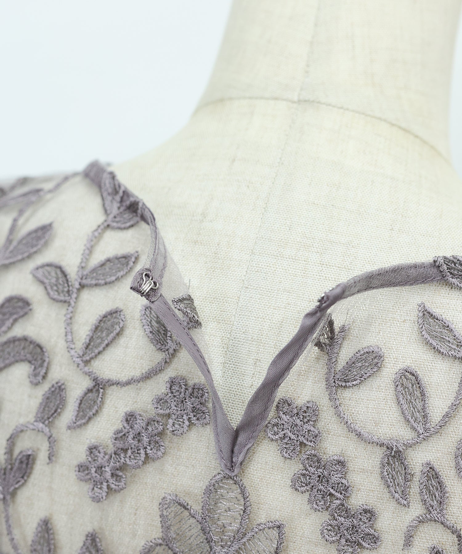 花柄刺繍が目を惹くフェミニンなパーティーワンピース?結婚式ワンピース