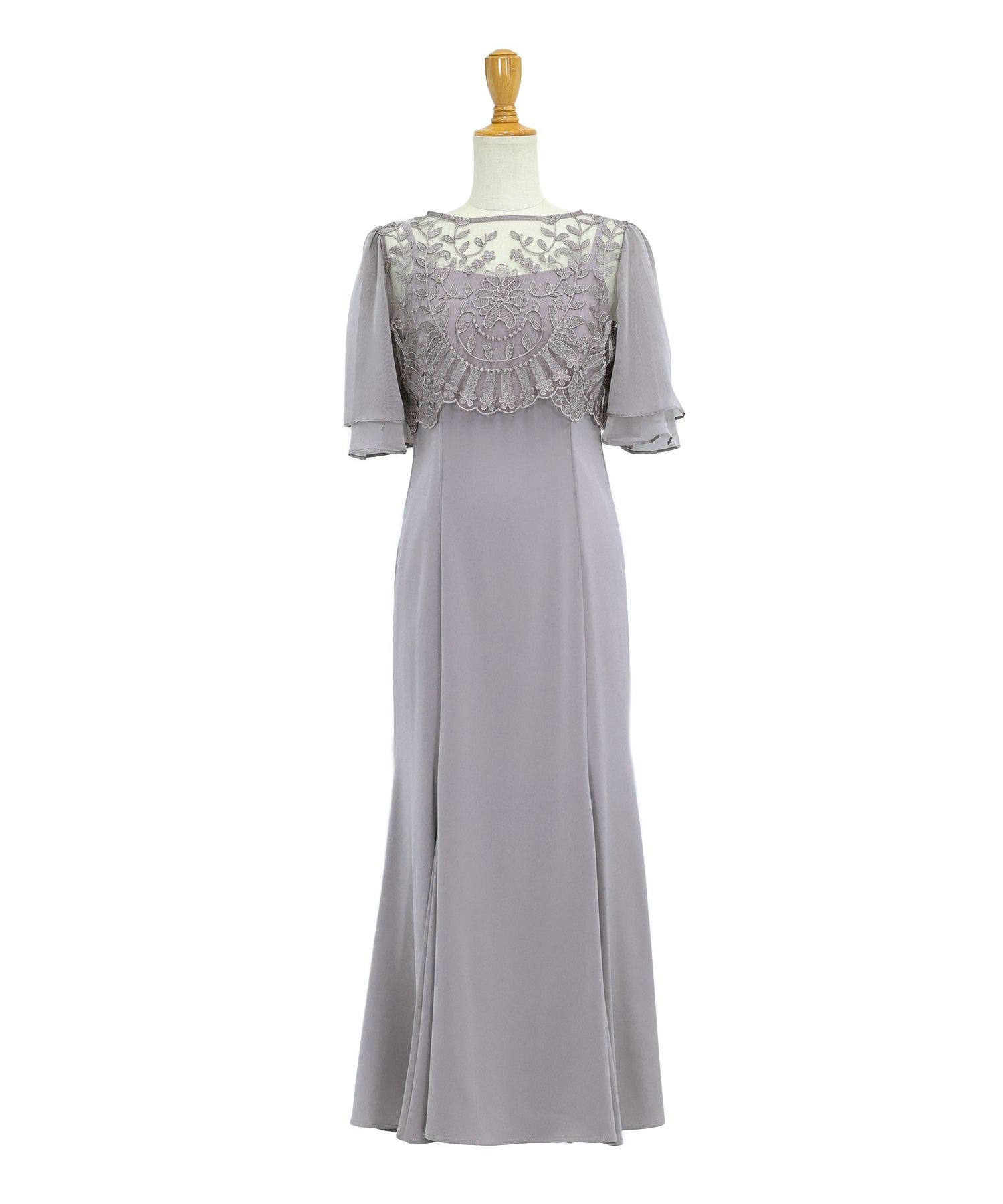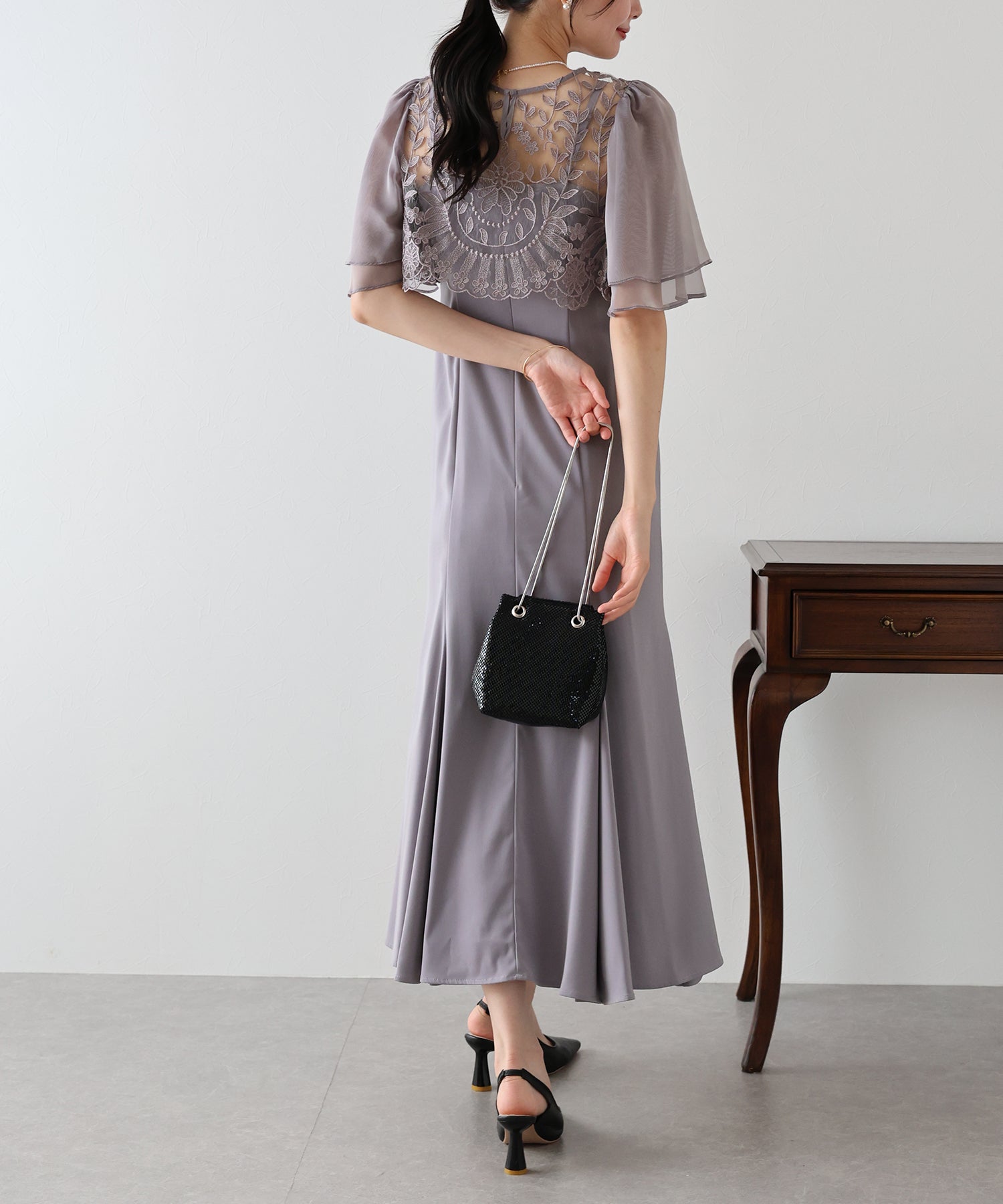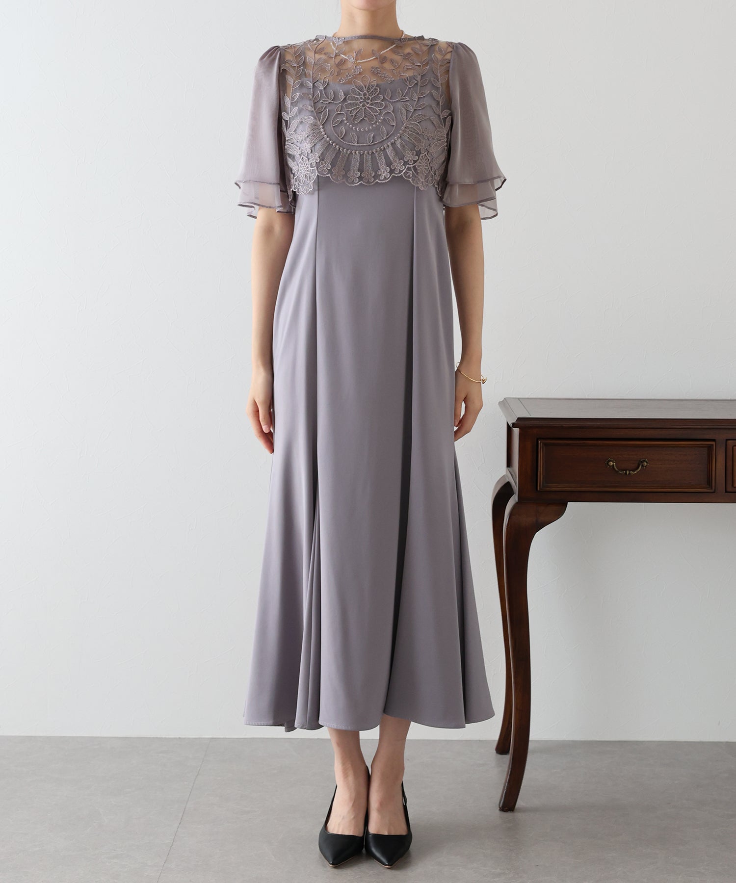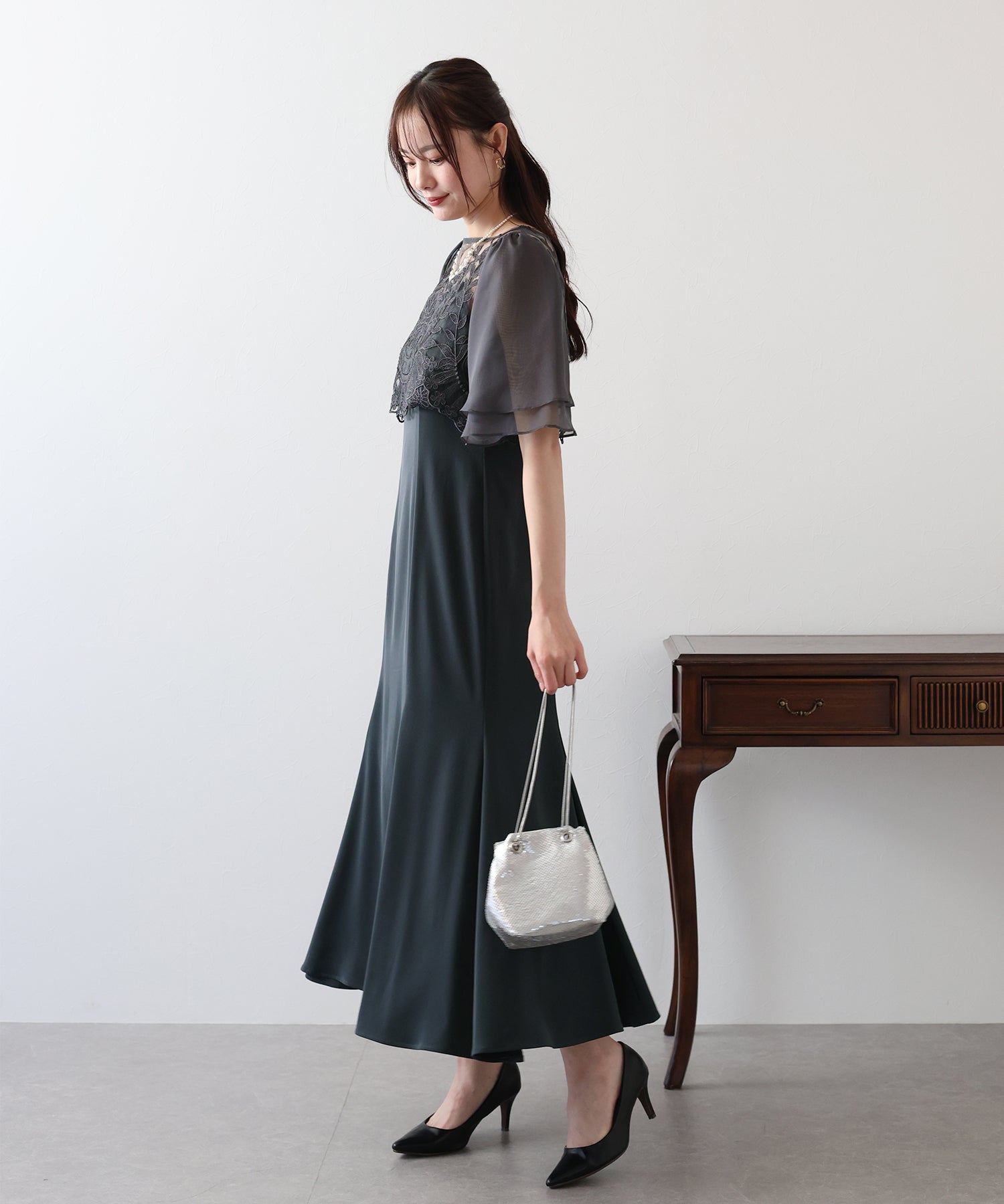 花柄刺繍が目を惹くフェミニンなパーティーワンピース?結婚式ワンピース