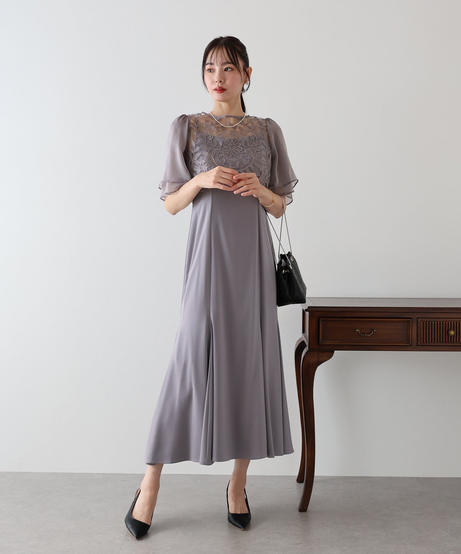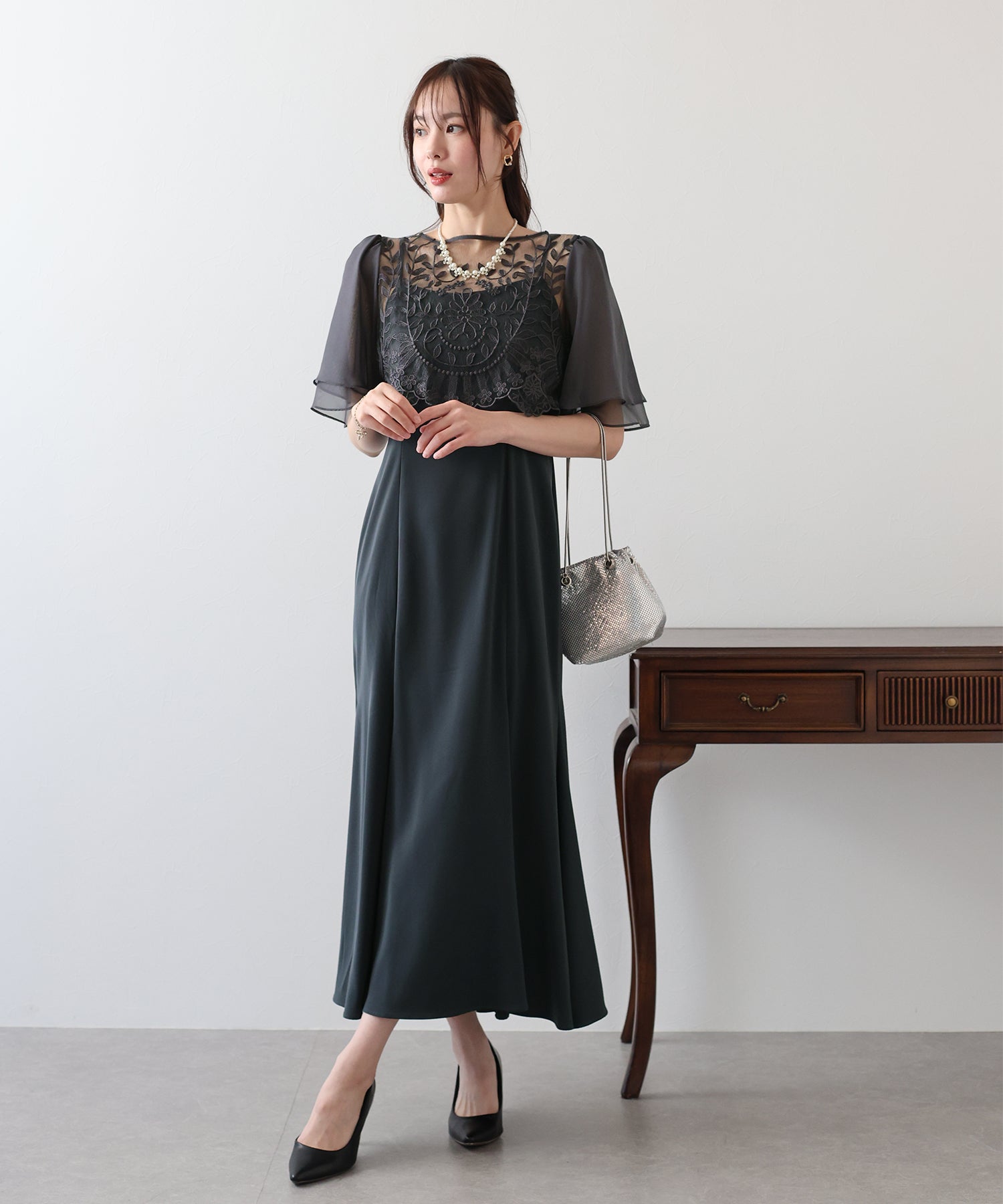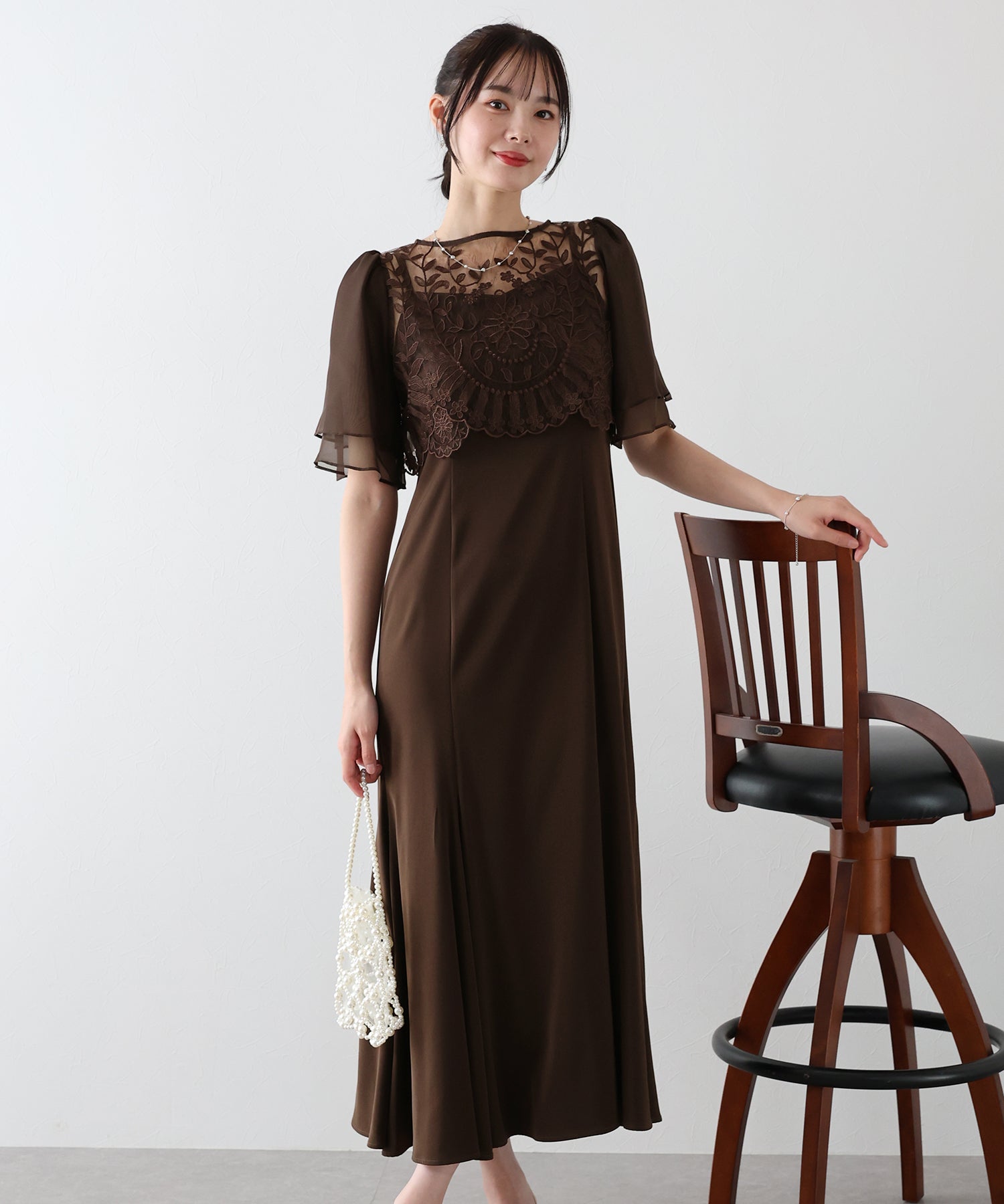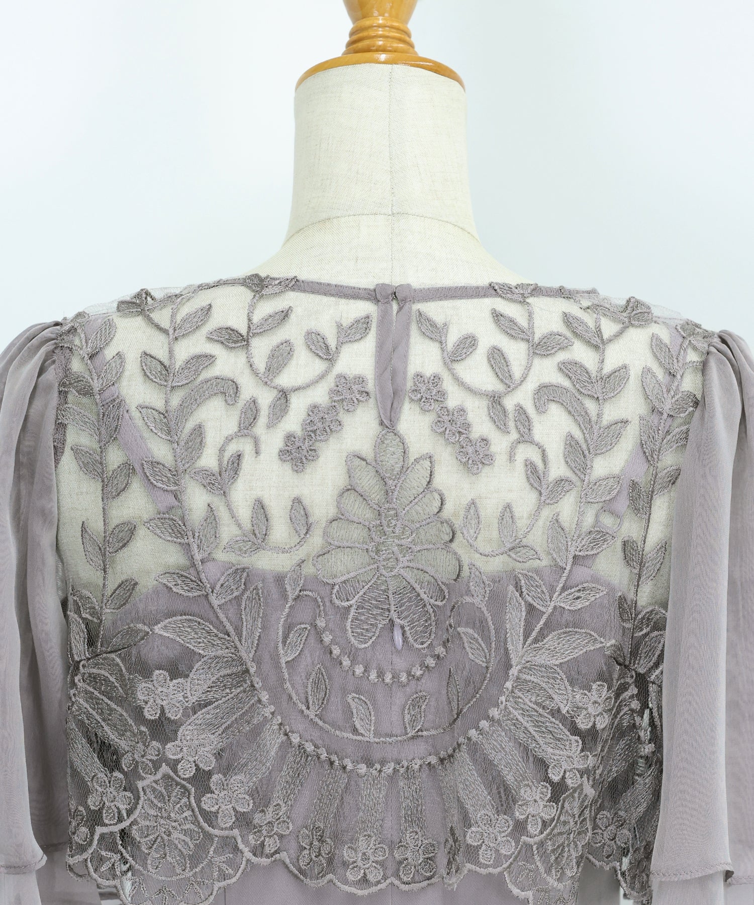 | 素材 | <ブラウス>刺繍レース地: ポリエステル100% シフォン地: ポリエステル100% <ワンピース>表地:ポリエステル100% 裏地:ポリエステル100% |