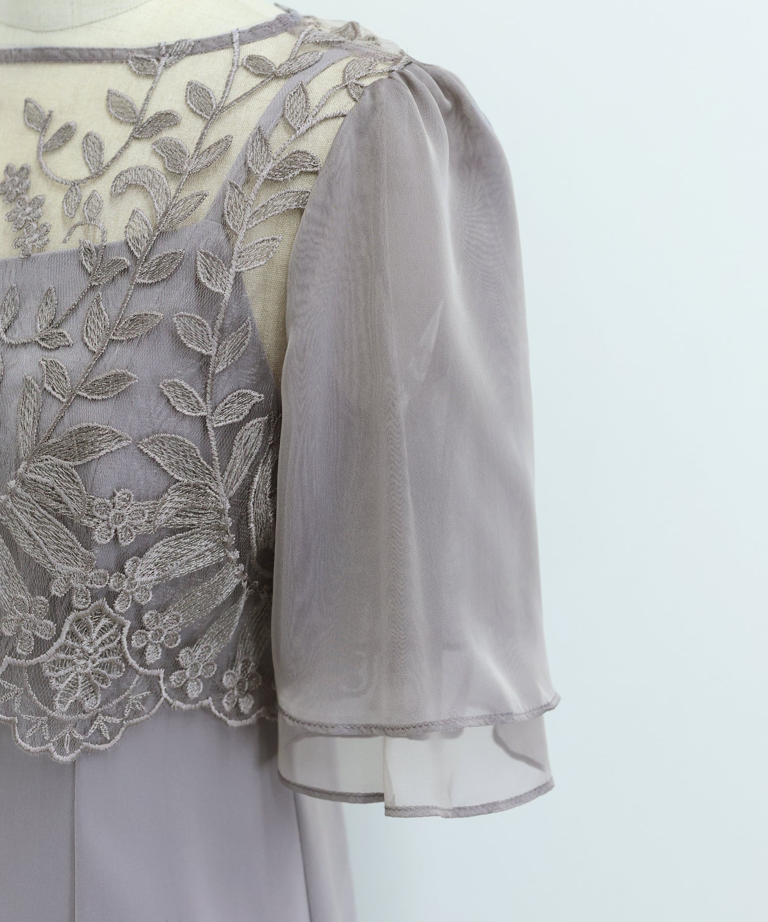 袖はオーガンジーを2枚合わせの五分袖の肘上丈で、