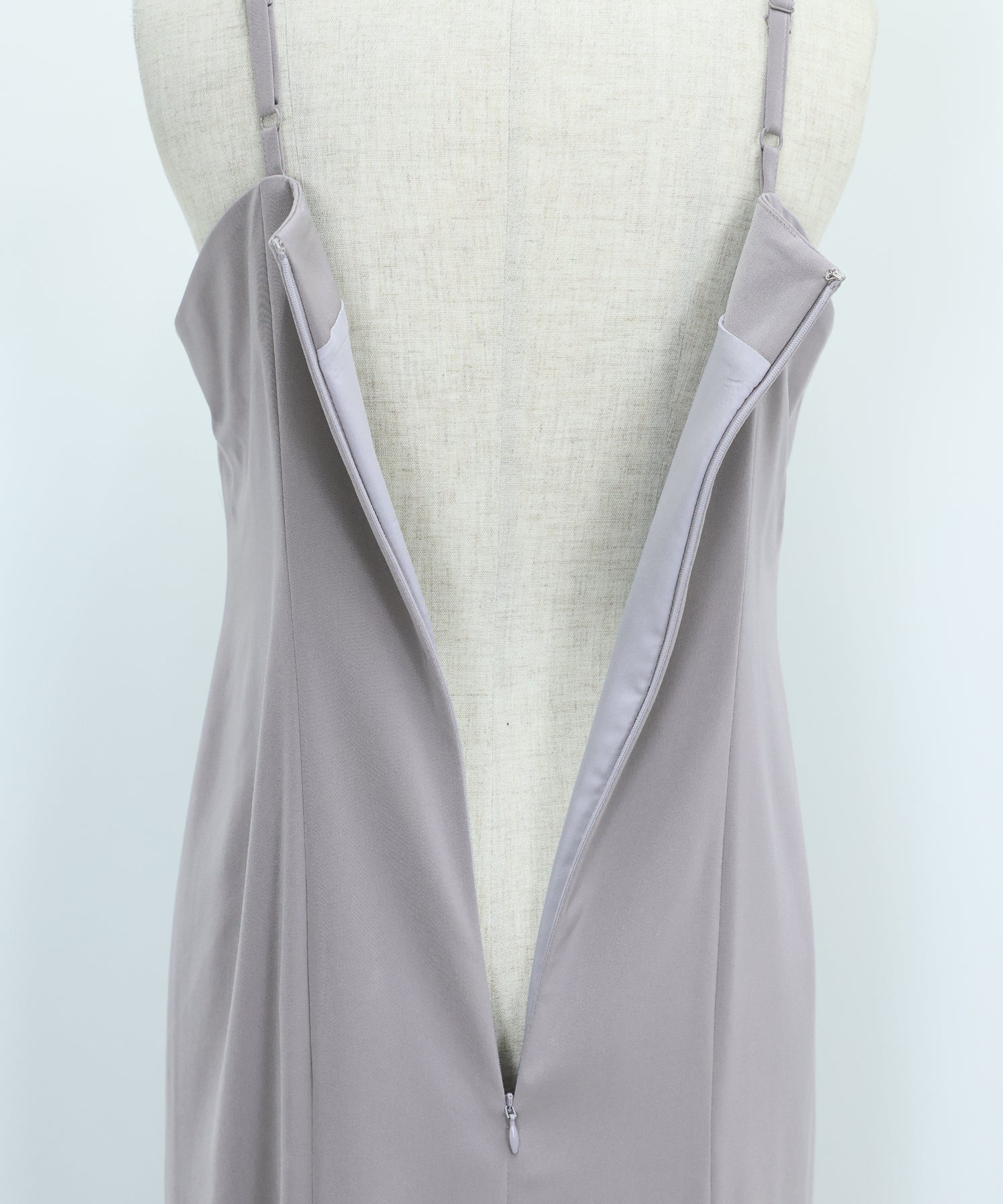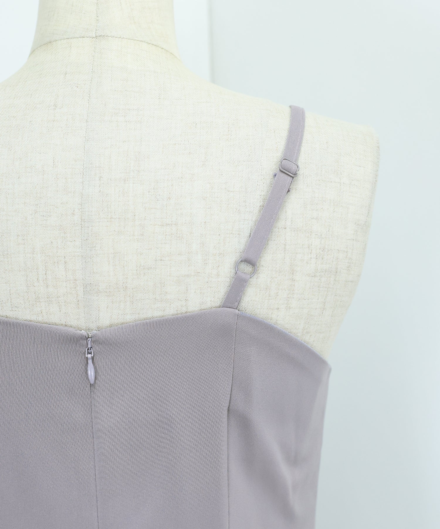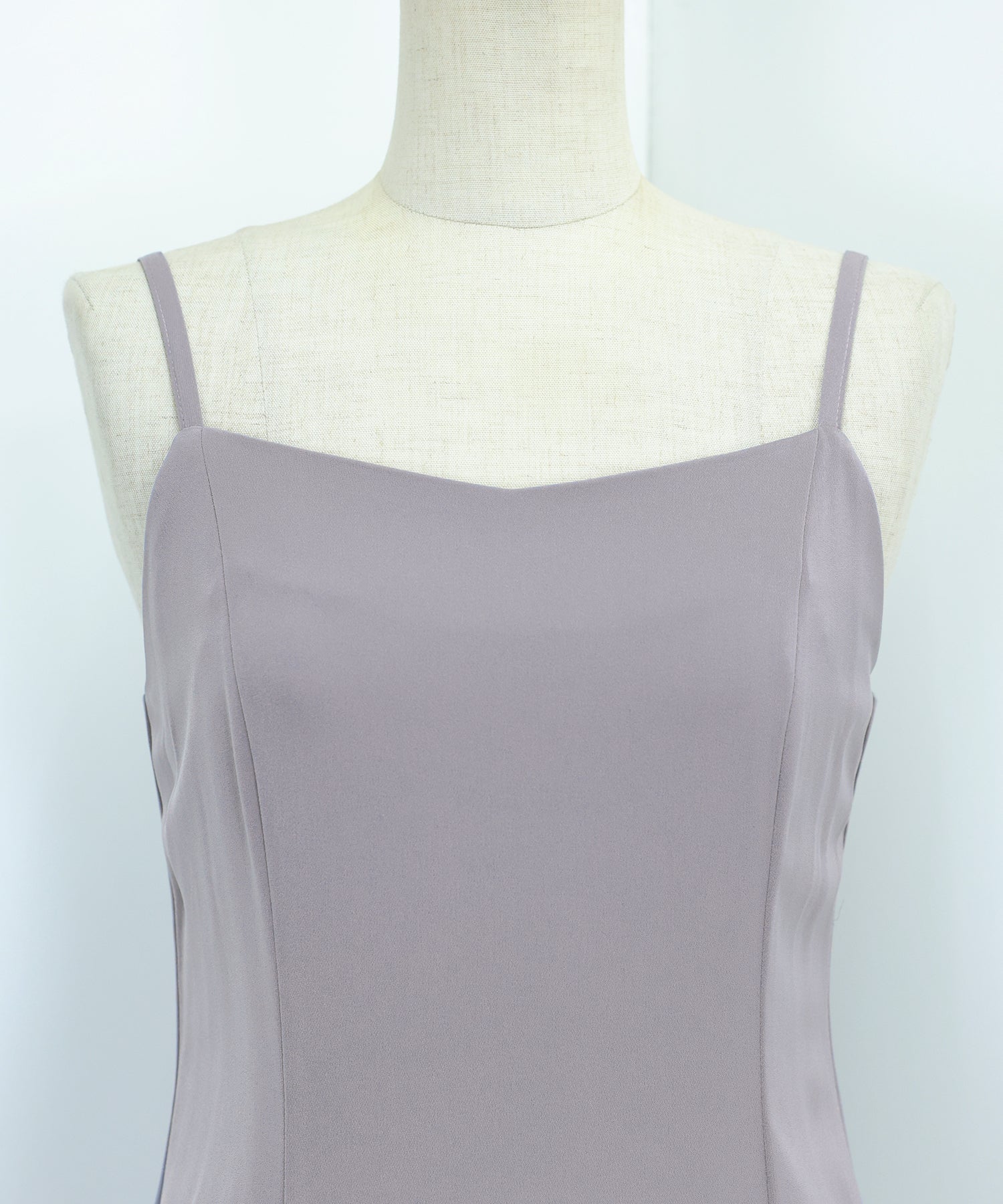 キャミドレスはボディラインを拾いすぎないソフトマーメイドシルエットです。