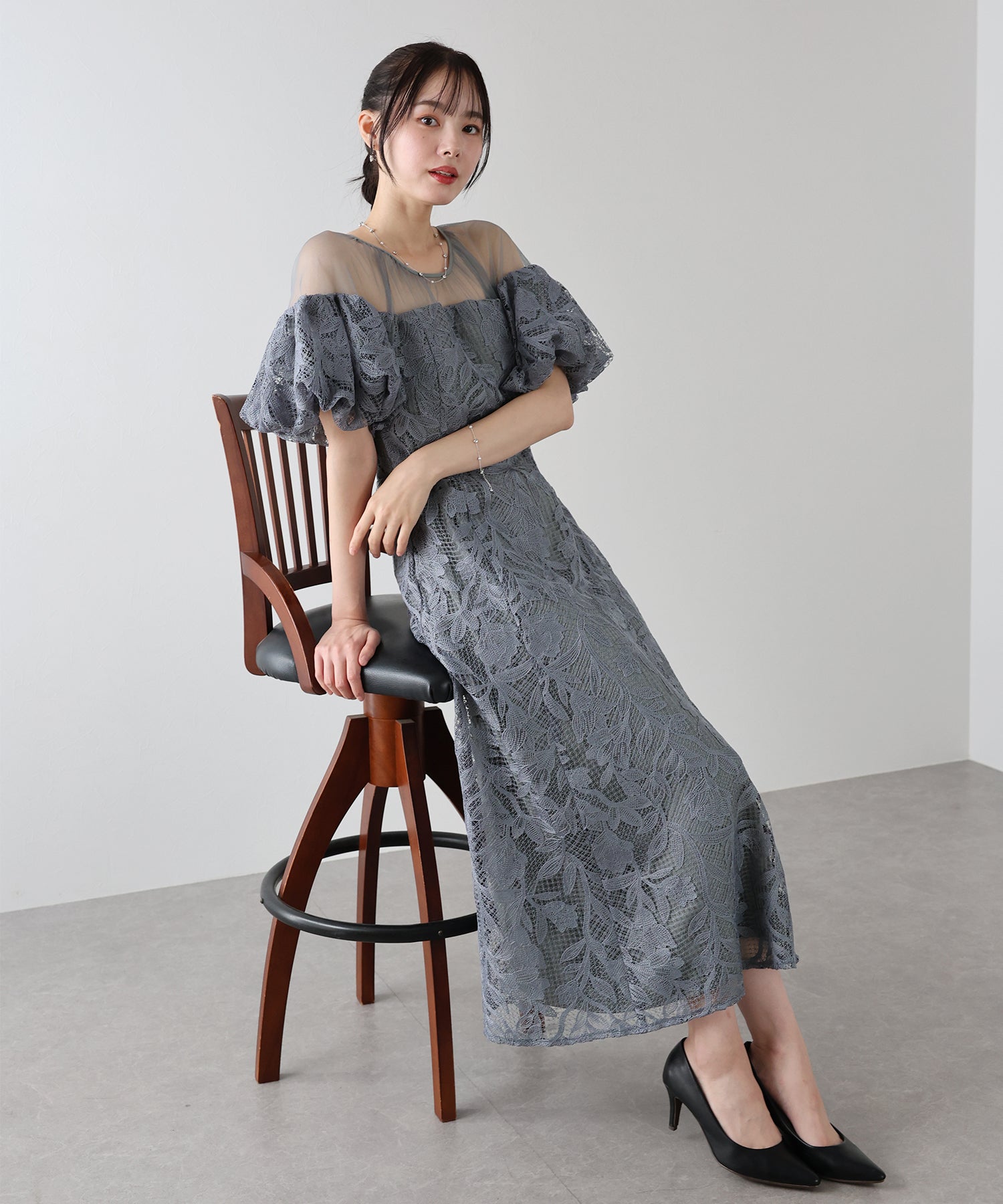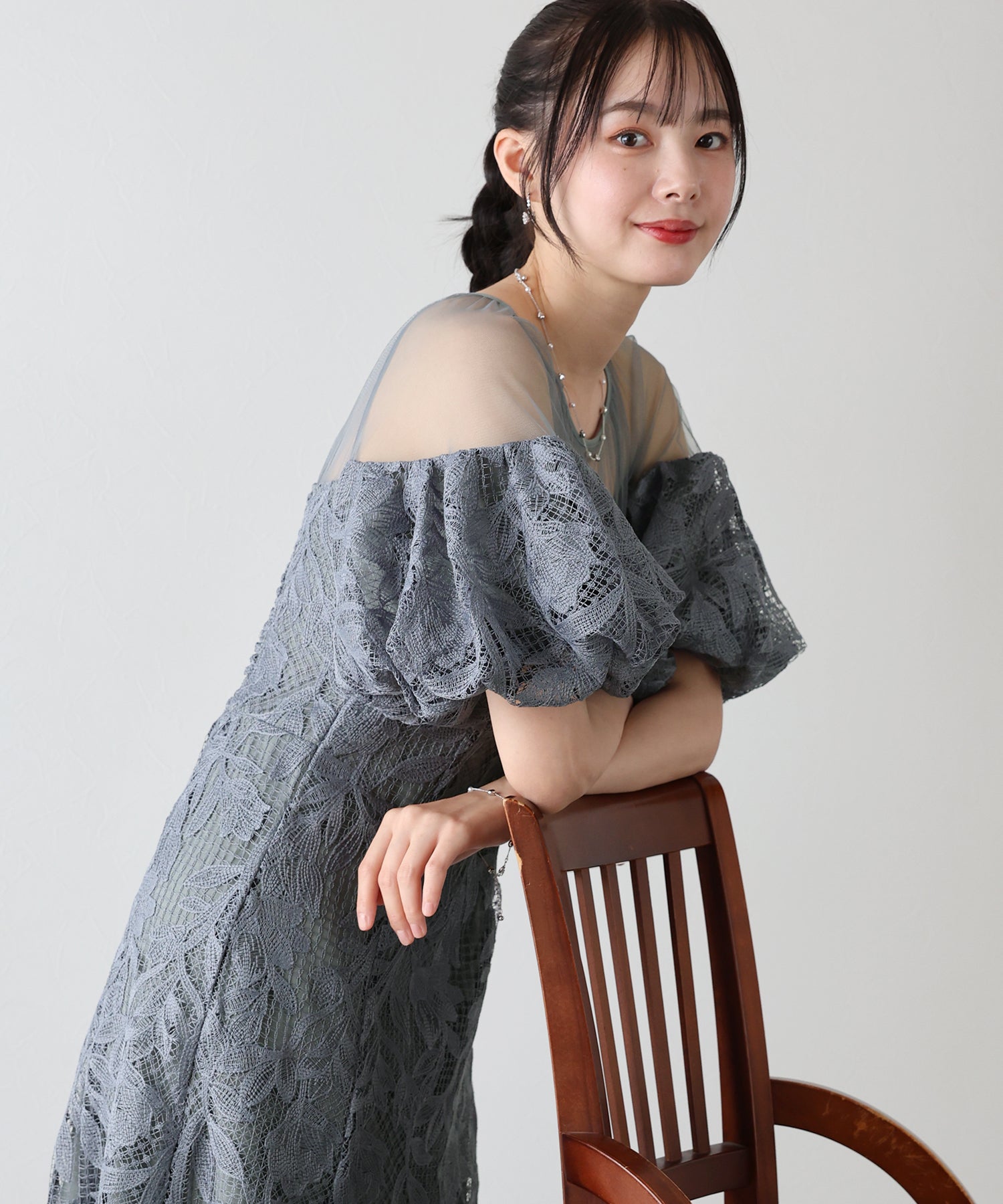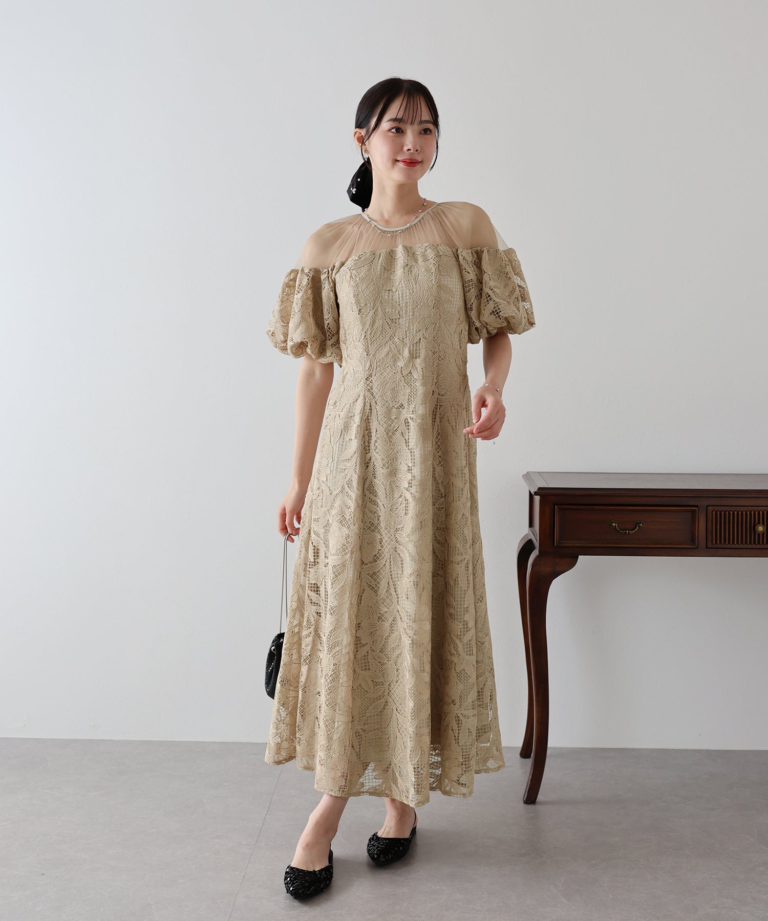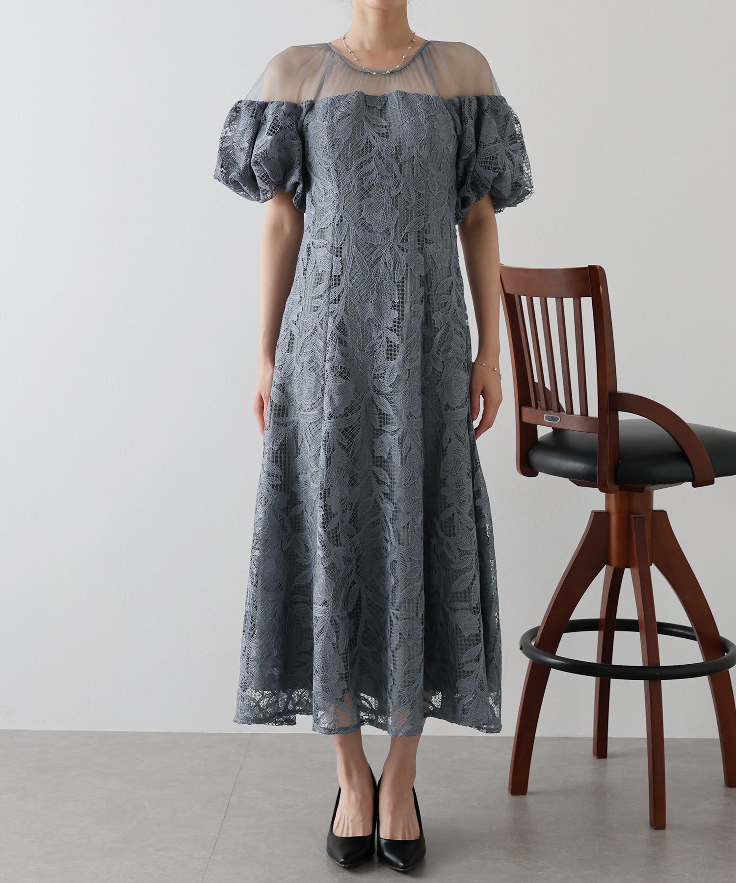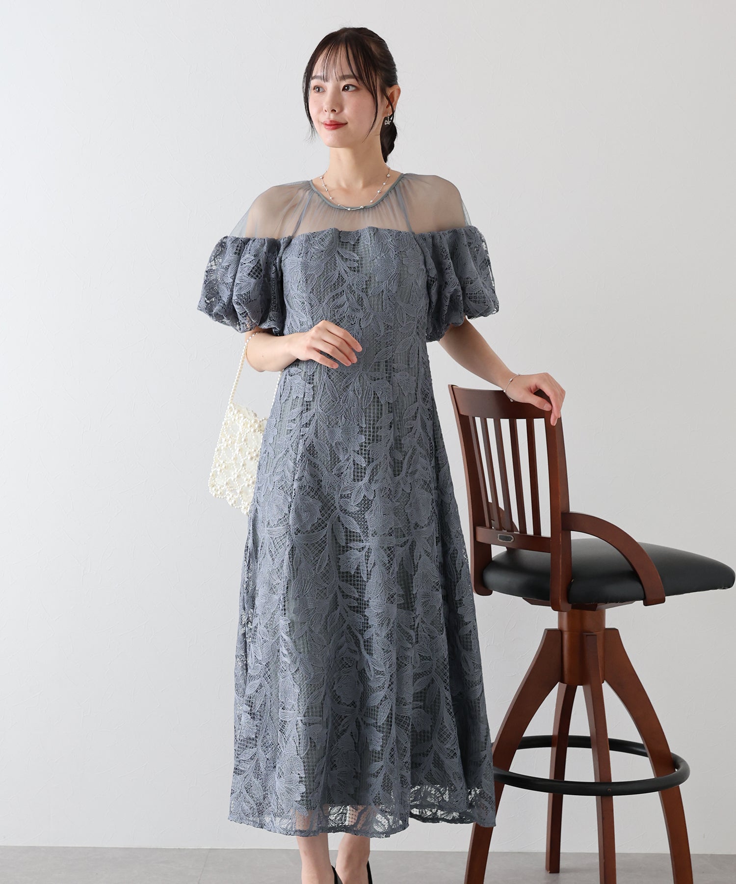 - 【TIME SALE】モチーフレースシアーAラインドレス
