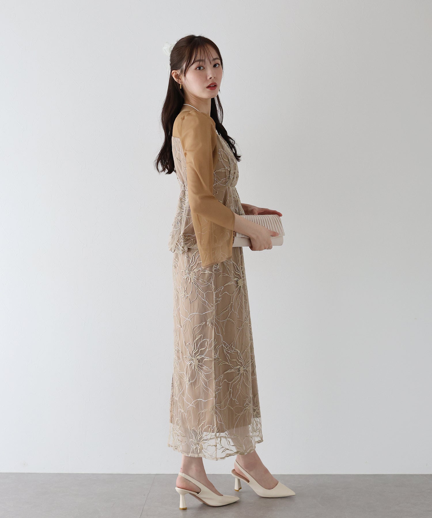 - 【TIME SALE】花柄刺繍レースセットドレス