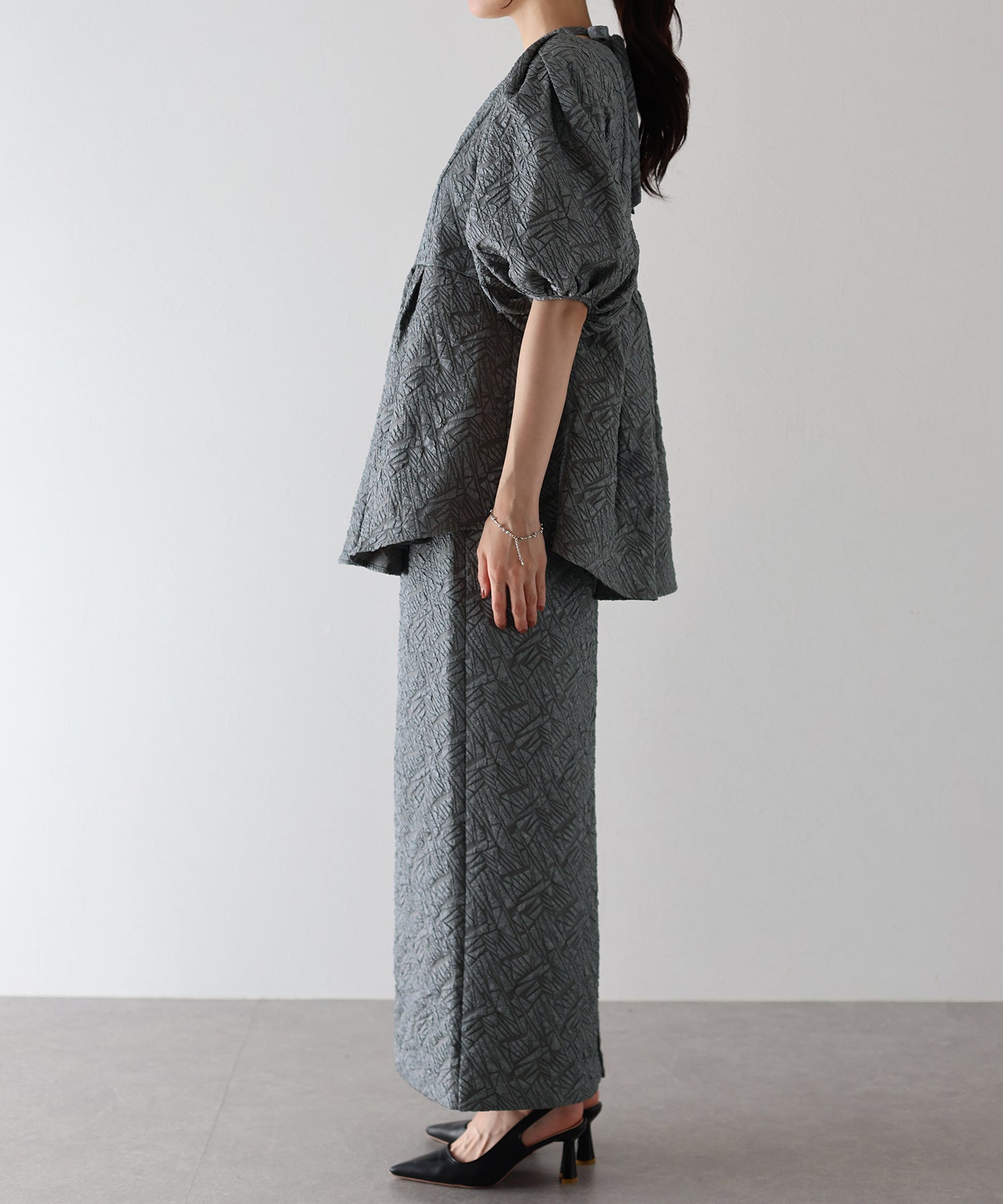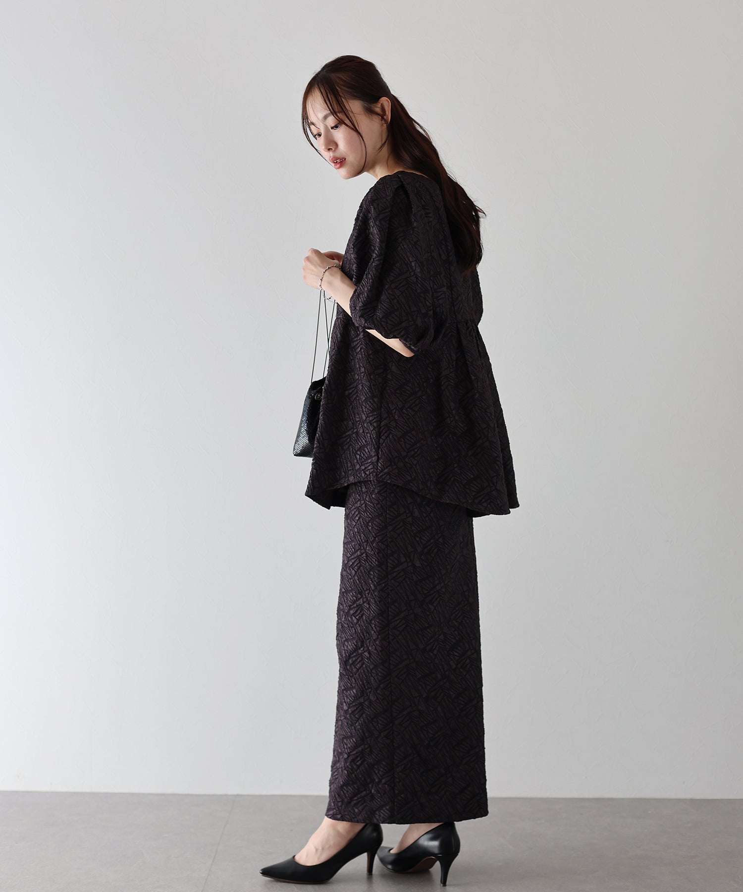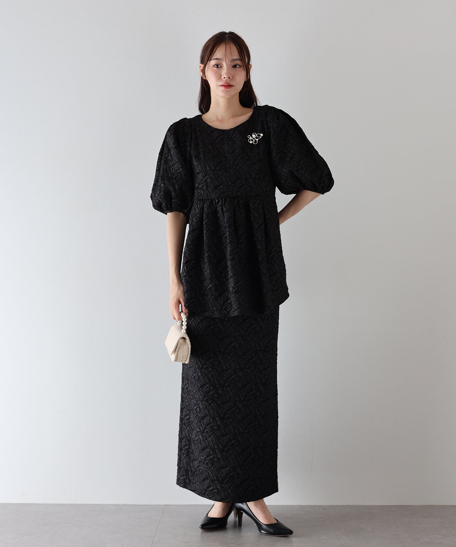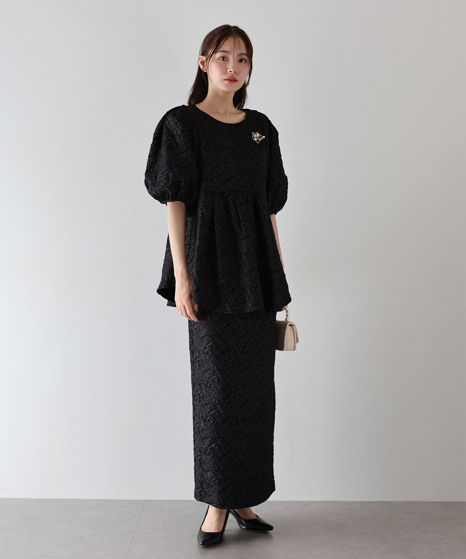 きちんと感を出して着たい結婚式や成人式、謝恩会などのパーティーシーンにはセットアップで着てパンプスやミニバッグと合わせて頂くのがおすすめです。