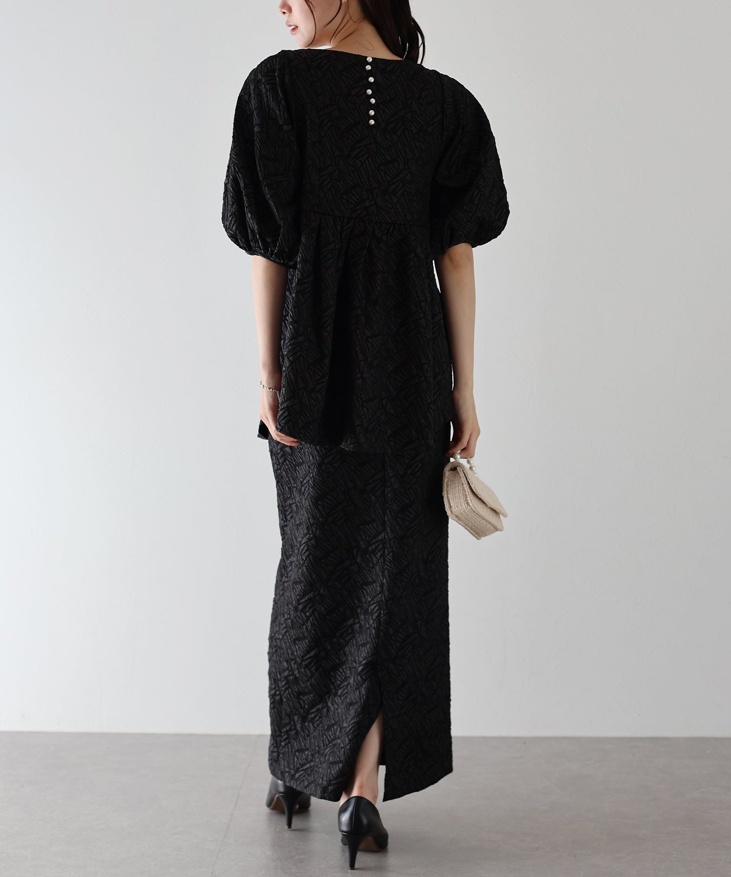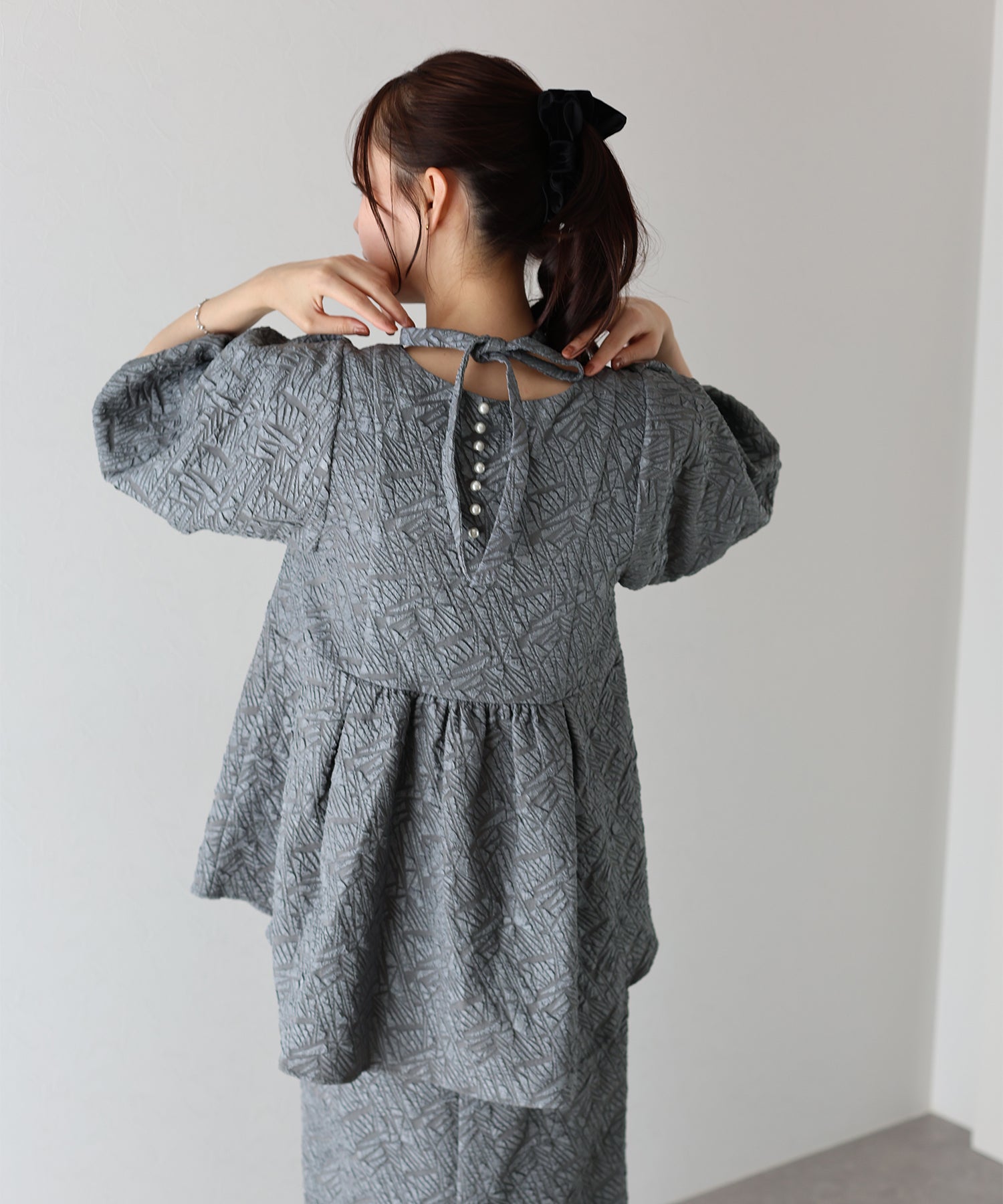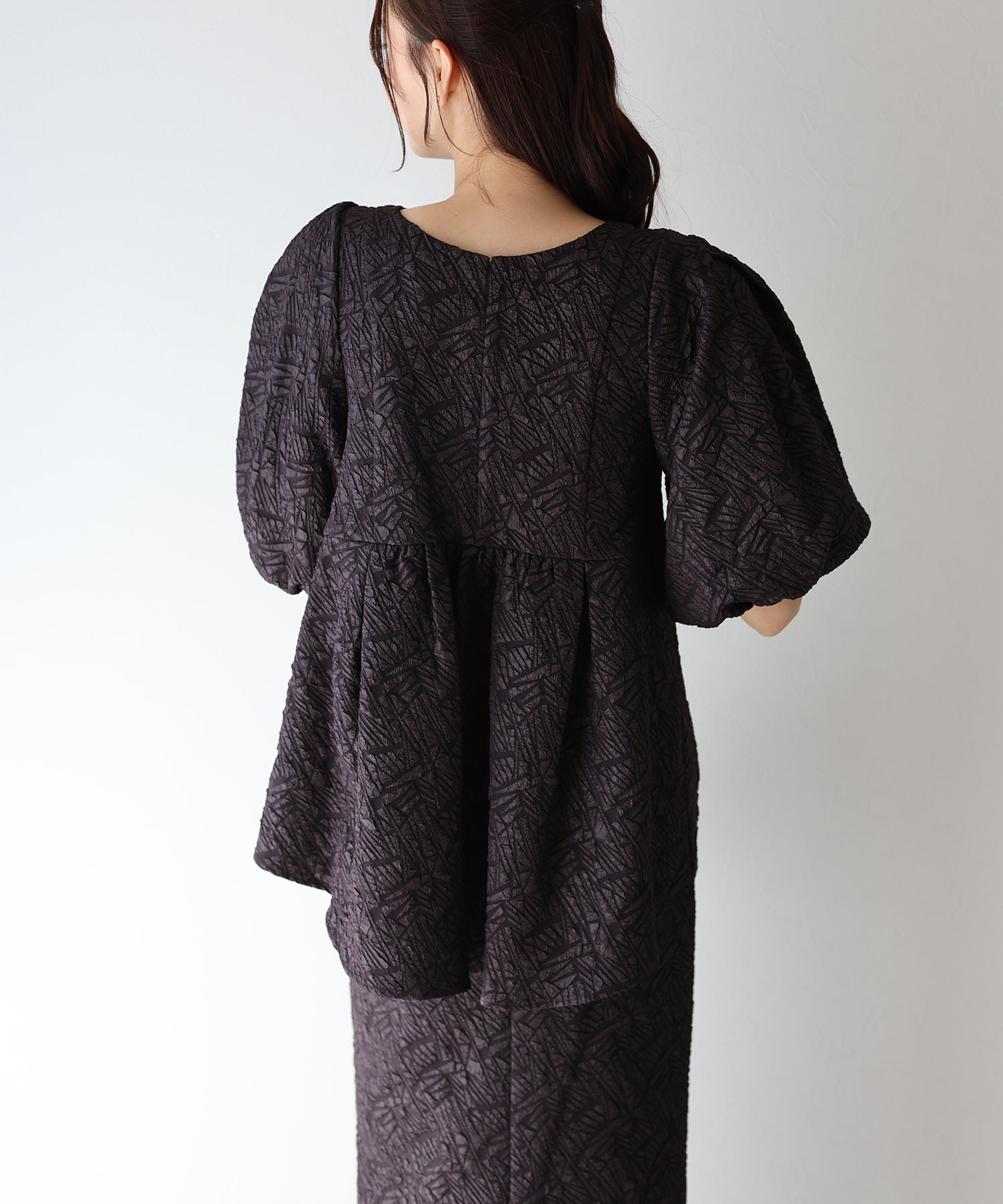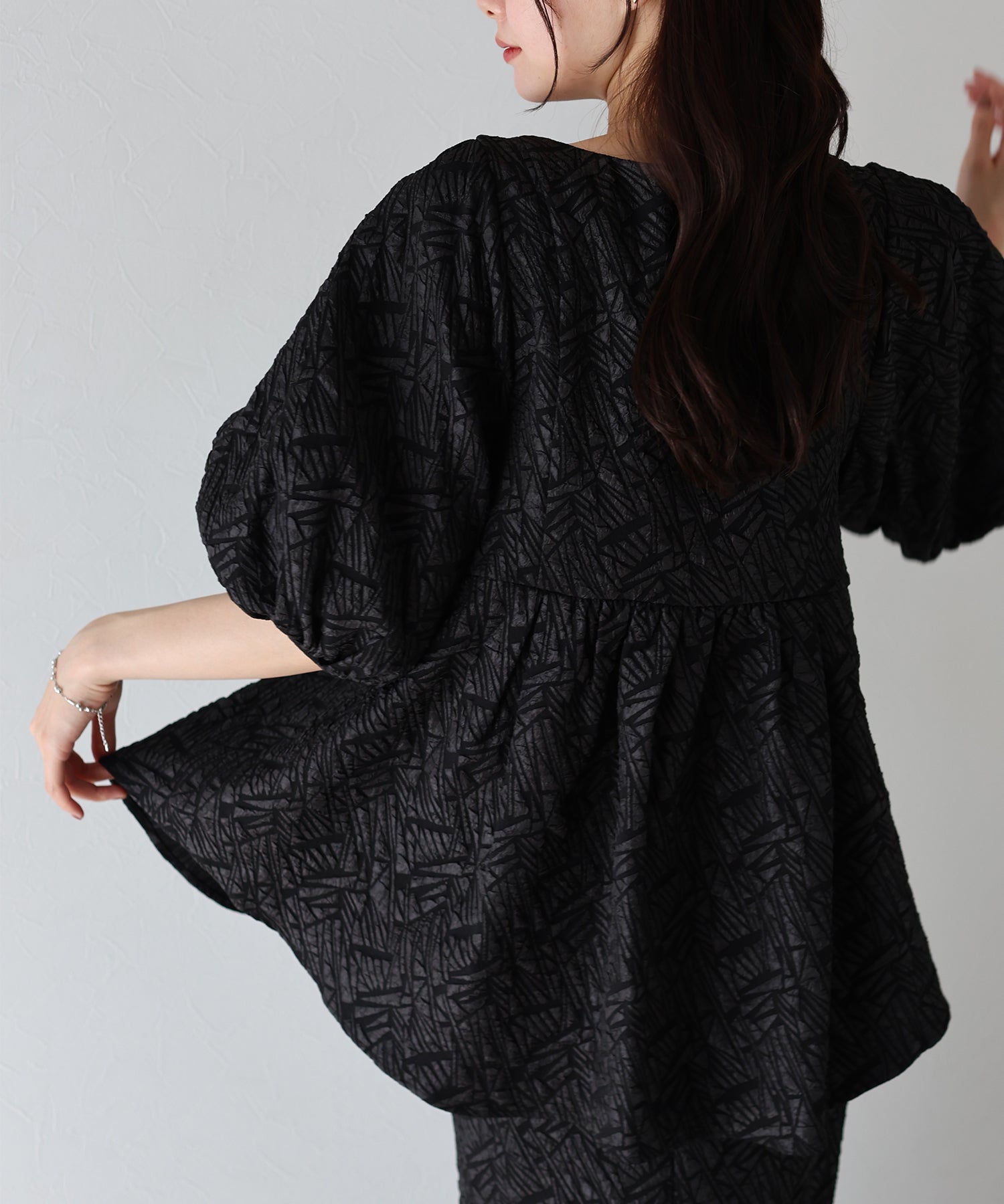 ふわっと広がるボリューム感のある袖と裾のデザインが綺麗な一枚です。
